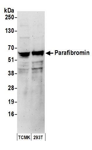| Immunogen: | synthetic peptide. The epitope recognized by A300-170A-T maps to a region between residues 250 and 300 of human Parafibromin using the numbering given in TrEMBL entry Q6P1J9 (GeneID 79577). |