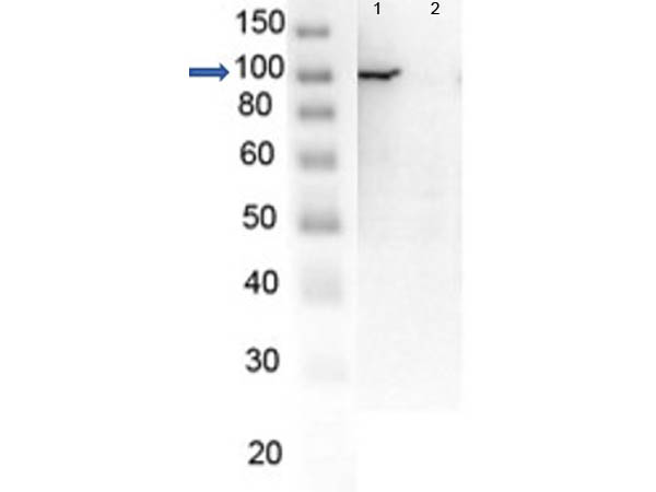 PARP1 (N-term ZF1) was purified from monospecific antiserum by immunoaffinity chromatography using protein A coupled to agarose beads. This antibody is specific for human PARP1 protein. No cross reactivity detected towards other PARP members when using siRNAs against 18 PARP family members. Cross-reactivity with PARP1 from other sources has not been determined. Protein function: Involved in the base excision repair (BER) pathway, by catalyzing the poly(ADP-ribosyl)ation of a limited number of acceptor proteins involved in chromatin architecture and in DNA metabolism. This modification follows DNA damages and appears as an obligatory step in a detection/signaling pathway leading to the reparation of DNA strand breaks. Mediates the poly(ADP- ribosyl)ation of APLF and CHFR. Positively regulates the transcription of MTUS1 and negatively regulates the transcription of MTUS2/TIP150. With EEF1A1 and TXK, forms a complex that acts as a T-helper 1 (Th1) cell-specific transcription factor and binds the promoter of IFN-gamma to directly regulate its transcription, and is thus involved importantly in Th1 cytokine production. Required for PARP9 and DTX3L recruitment to DNA damage sites. PARP1-dependent PARP9-DTX3L-mediated ubiquitination promotes the rapid and specific recruitment of 53BP1/TP53BP1, UIMC1/RAP80, and BRCA1 to DNA damage sites. [The UniProt Consortium]