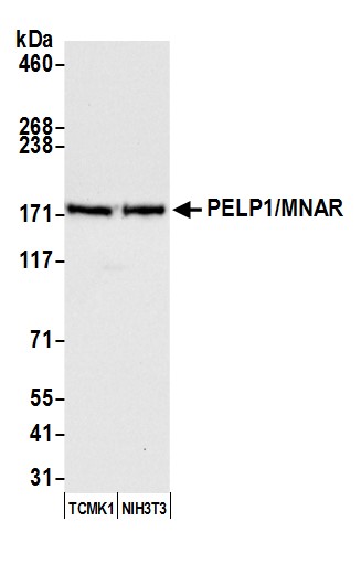 | Immunogen: | synthetic peptide. The epitope recognized by A300-180A-T maps to a region between residues 1000 and 1050 of human proline-, glutamic acid-, leucine-rich protein 1/ modulator of nongenomic activity of estrogen receptor using the numbering given in entry AAN41255.1 (GeneID 27043). |