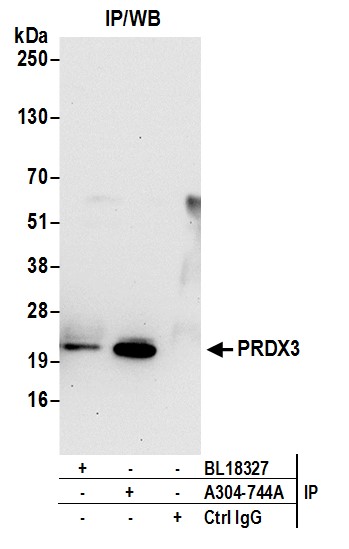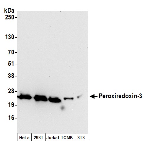 | Immunogen: | synthetic peptide. The epitope recognized by A304-744A-T maps to a region between residue 206 to 256 of human Peroxiredoxin 3 using the numbering given in entry NP_006784.1 (GeneID 10935). |