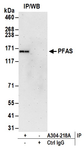 | Immunogen: | synthetic peptide. The epitope recognized by A304-218A-T maps to a region between residue 1 to 50 of human Phosphoribosylformylglycinamidine Synthase using the numbering given in entry NP_036525.1 (GeneID 5198). |