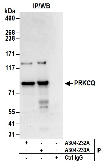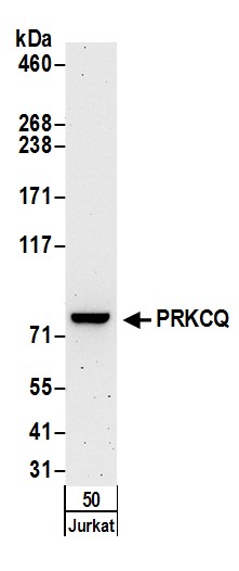 | Immunogen: | synthetic peptide. The epitope recognized by A304-232A-T maps to a region between residue 350 to 400 of human Protein Kinase C, Theta using the numbering given in entry NP_006248.1 (GeneID 5588). |