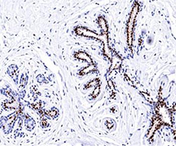 0.2 mg/ml with 0.1 mg/ml BSA (US sourced), 0.05% sodium azide. This antibody is specific to progesterone receptor and shows minimal cross-reaction with other members of the family. Progesterone receptor is expressed as two major isoforms, PR-A (81kDa) and PR-B (116kDa). Expression of progesterone receptor has been suggested to reflect a intact estrogen regulatory machinery and therefore predict better clinical response to endocrine therapy than ER alone. Protein function: The steroid hormones and their receptors are involved in the regulation of eukaryotic gene expression and affect cellular proliferation and differentiation in target tissues. Progesterone receptor isoform B (PRB) is involved activation of c-SRC/MAPK signaling on hormone stimulation. [The UniProt Consortium]