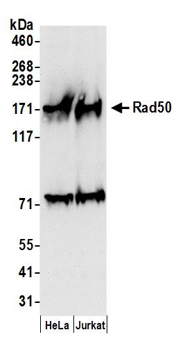 | Immunogen: | synthetic peptide. The epitope recognized by A300-185A-T maps to a region between residues 700 and 750 of human Rad50 using the numbering given in entry NP_005723.2 (GeneID 10111). |
