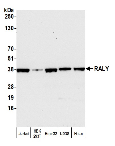 | Keywords: | Anti-RALY, Anti-HNRPCL2, Anti-Autoantigen p542, Anti-RNA-binding protein Raly, Anti-hnRNP core protein C-like 2, Anti-Heterogeneous nuclear ribonucleoprotein C-like 2, Anti-hnRNP associated with lethal yellow protein homolog |
