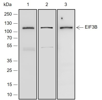 | Keywords: | Anti-EIF3B, Anti-eIF3 p110, Anti-eIF-3-eta, Anti-eIF3 p116, Anti-Prt1 homolog, Anti-Eukaryotic translation initiation factor 3 subunit B, Anti-Eukaryotic translation initiation factor 3 subunit 9, Recombinant eIF3B Monoclonal Antibody |