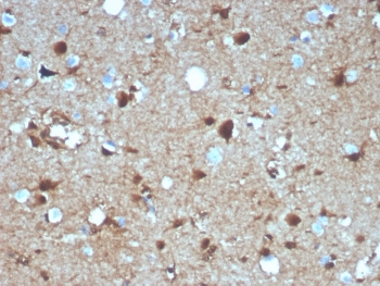 0.2 mg/ml in 1X PBS with 0.1 mg/ml BSA (US sourced), 0.05% sodium azide. S100 belongs to the family of calcium binding proteins. S100A and S100B proteins are two members of the S100 family. S100A is composed of an alpha and a beta chain whereas S100B is composed of two beta chains. This antibody is specific against an epitope located on the beta-chain (i.e. in S-100A and S-100B) but not on the alpha-chain of S-100 (i.e. in S-100A and S100A0). This antibody can be used to localize S-100A and S-100B in various tissue sections. S-100 protein has been found in normal melanocytes, Langerhans cells, histiocytes, chondrocytes, lipocytes, skeletal and cardiac muscle, Schwann cells, epithelial and myoepithelial cells of the breast, salivary and sweat glands, as well as in glial cells. Neoplasms derived from these cells also express S-100 protein, albeit non-uniformly. A large number of well-differentiated tumors of the salivary gland, adipose and cartilaginous tissue, and Schwann cell-derived tumors express S-100 protein. Almost all malignant melanomas and cases of histiocytosis X are positive for S-100 protein. Protein function: Weakly binds calcium but binds zinc very tightly-distinct binding sites with different affinities exist for both ions on each monomer. Physiological concentrations of potassium ion antagonize the binding of both divalent cations, especially affecting high-affinity calcium-binding sites. Binds to and initiates the activation of STK38 by releasing autoinhibitory intramolecular interactions within the kinase. Interaction with AGER after myocardial infarction may play a role in myocyte apoptosis by activating ERK1/2 and p53/TP53 signaling. Could assist ATAD3A cytoplasmic processing, preventing aggregation and favoring mitochondrial localization. May mediate calcium-dependent regulation on many physiological processes by interacting with other proteins, such as TPR-containing proteins, and modulating their activity. [The UniProt Consortium]