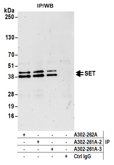 | Immunogen: | synthetic peptide. The epitope recognized by A302-261A-T maps to a region between residue 125 and 175 of human SET nuclear oncogene using the numbering given in entry NP_001116293.1 (GeneID 6418). |