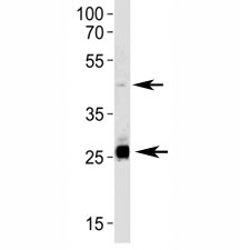 Immunogen: A portion of amino acids 250-279 from the human protein was used as the immunogen for this SIRT3 antibody.