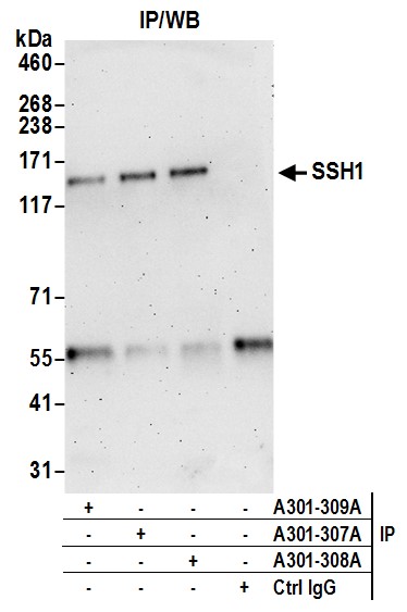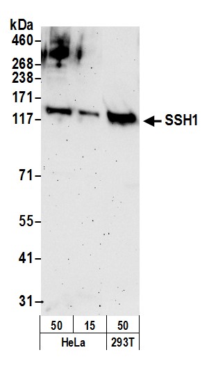 | Immunogen: | synthetic peptide. The epitope recognized by A301-309A-T maps to a region between residue 999 and 1049 of human slingshot homolg 1 using the numbering given in entry NP_061857.2 (GeneID 54434). |