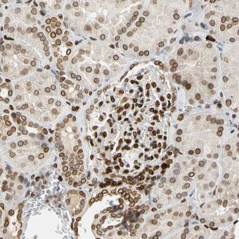 Protein function: As a component of the LINC (LInker of Nucleoskeleton and Cytoskeleton) complex involved in the connection between the nuclear lamina and the cytoskeleton (PubMed:18039933, PubMed:18396275). The nucleocytoplasmic interactions established by the LINC complex play an important role in the transmission of mechanical forces across the nuclear envelope and in nuclear movement and positioning. Required for interkinetic nuclear migration (INM) and essential for nucleokinesis and centrosome-nucleus coupling during radial neuronal migration in the cerebral cortex and during glial migration. Involved in telomere attachment to nuclear envelope in the prophase of meiosis implicating a SUN1/2:KASH5 LINC complex in which SUN1 and SUN2 seem to act at least partial redundantly. Required for gametogenesis and involved in selective gene expression of coding and non-coding RNAs needed for gametogenesis. Helps to define the distribution of nuclear pore complexes (NPCs). Required for efficient localization of SYNE4 in the nuclear envelope. May be involved in nuclear remodeling during sperm head formation in spermatogenenis. May play a role in DNA repair by suppressing non- homologous end joining repair to facilitate the repair of DNA cross- links (PubMed:24375709). [The UniProt Consortium] Buffer: 40% glycerol and PBS (pH 7.2). 0.02% sodium azide is added as preservative. Highest antigen sequence identity to mouse: 51% and to rat: 50%