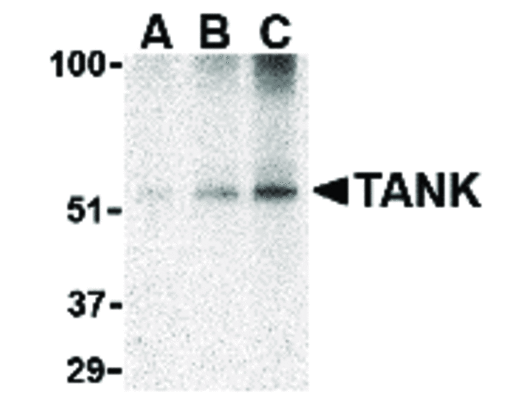 | Immunogen: | 14 amino acid synthetic peptide from near the C-terminus of human TANK. |