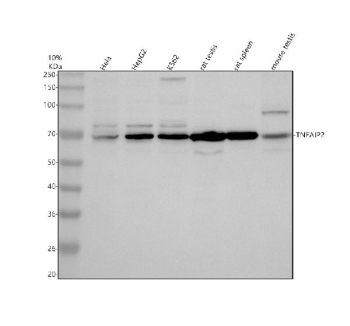 | Immunogen: | E.coli-derived human TNFAIP2 recombinant protein (Position: L187-K609) |
