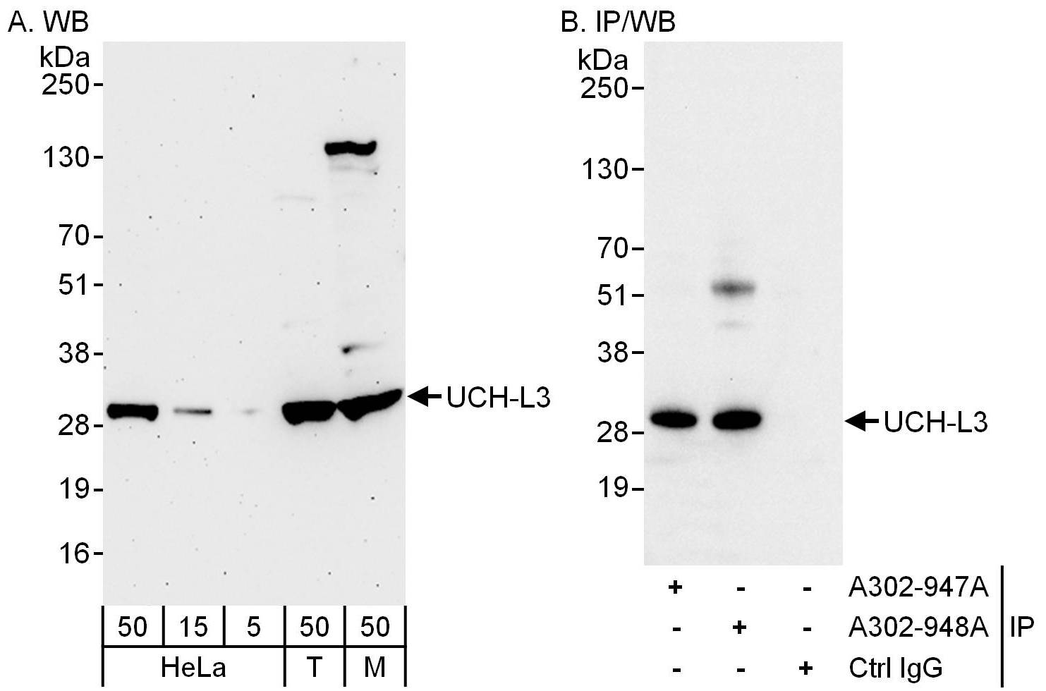 | Immunogen: | synthetic peptide. The epitope recognized by A302-948A-T maps to a region between residue 174 and 224 of human Ubiquitin Carboxyl-Terminal Esterase L3 using the numbering given in entry NP_005993.1 (GeneID 7347). |
