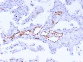 1 mg/ml in 1X PBS, BSA free, sodium azide free. von Willebrand Factor (vWF) is a multimeric glycoprotein that is found in endothelial cells, plasma and platelets. It acts as a carrier protein for Factor VIII and promotes platelet adhesion and aggregation. vWF undergoes a variety of posttranslational modifications that influence the affinity and availability for Factor VIII, including cleavage of the propeptide and formation of N-terminal disulfide bonds. This antibody helps to establish the endothelial nature of some lesions of disputed histogenesis, e.g. Kaposi's sarcoma and cardiac myxoma. It is widely used for differentiating vascular lesions from those of other tissue differentiation within a panel of other vascular markers although not all tumors of endothelial differentiation contain this antigen. Protein function: Important in the maintenance of hemostasis, it promotes adhesion of platelets to the sites of vascular injury by forming a molecular bridge between sub-endothelial collagen matrix and platelet- surface receptor complex GPIb-IX-V. Also acts as a chaperone for coagulation factor VIII, delivering it to the site of injury, stabilizing its heterodimeric structure and protecting it from premature clearance from plasma. [The UniProt Consortium]