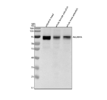 | Immunogen: | E. coli-derived zebrafish Alcama recombinant protein (amino acids K54-I509) |