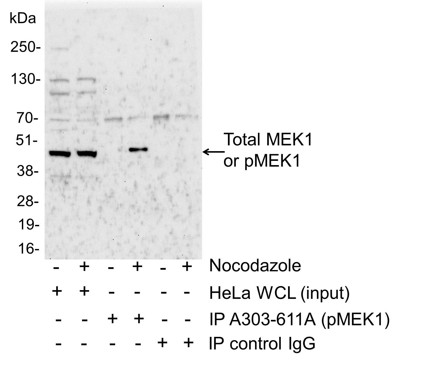 | Immunogen: | synthetic peptide. The epitope recognized by A303-611A-T maps to a region of human MAPK/ERK kinase 1 (dual specificity mitogen-activiated protein kinase kinase 1) surrounding threonine 286 using the numbering given in entry NP_002746.1 (Gene ID 5604) when the threonine residue is phosphorylated. |