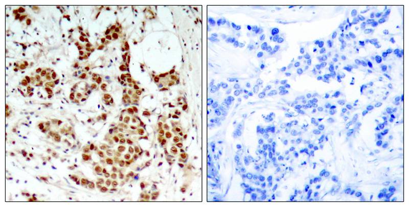 | Immunogen: | Peptide sequence around phosphorylation site of threonine 348 (S-R-T(p)-P-R) derived from Human p90RSK |