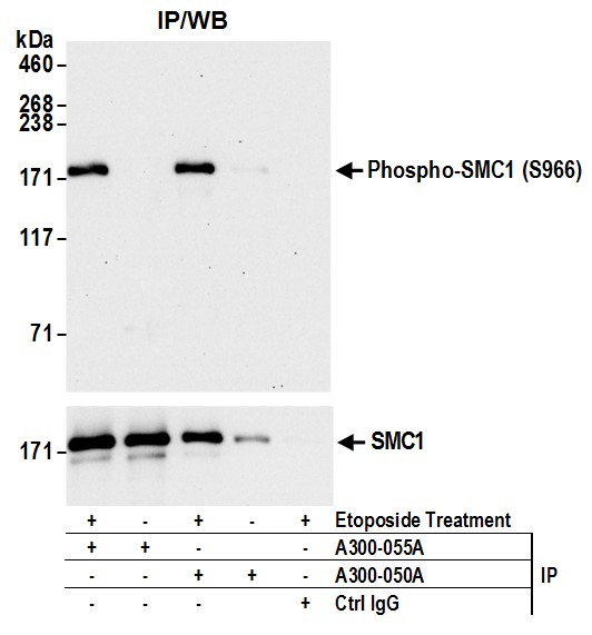 | Immunogen: | synthetic peptide. Immunogen for A300-050A-T was a phosphorylated synthetic peptide, which represented a portion of human Structural Maintenance of Chromosomes 1 (GeneID 8243) around serine 966 according to the numbering given in entry NP_006297.2. |