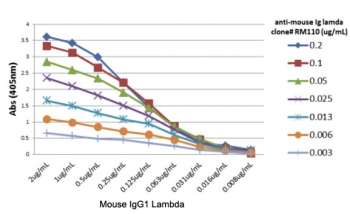 1 mg/ml in PBS with 50% glycerol, 1% BSA and 0.09% sodium azide. This recombinant Mouse Lambda Light Chain antibody reacts to the lambda light chain of murine immunoglobulins. No cross reactivity with the kappa chain or human/rat/goat IgG.