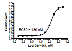 The FXR (Farnesoid X Receptor) Agonist Assay Kit (TR-FRET) is designed to measure binding of the FXR and SRC-1 (Steroid Receptor Coactivator 1) for screening FXR agonists using TR-FRET technology. With this homogeneous kit, the FXR agonist assay can be performed by adding all materials, including the detection reagents, to the wells and incubating the plate for 2-hours at room temperature followed by reading the TR-FRET signal.