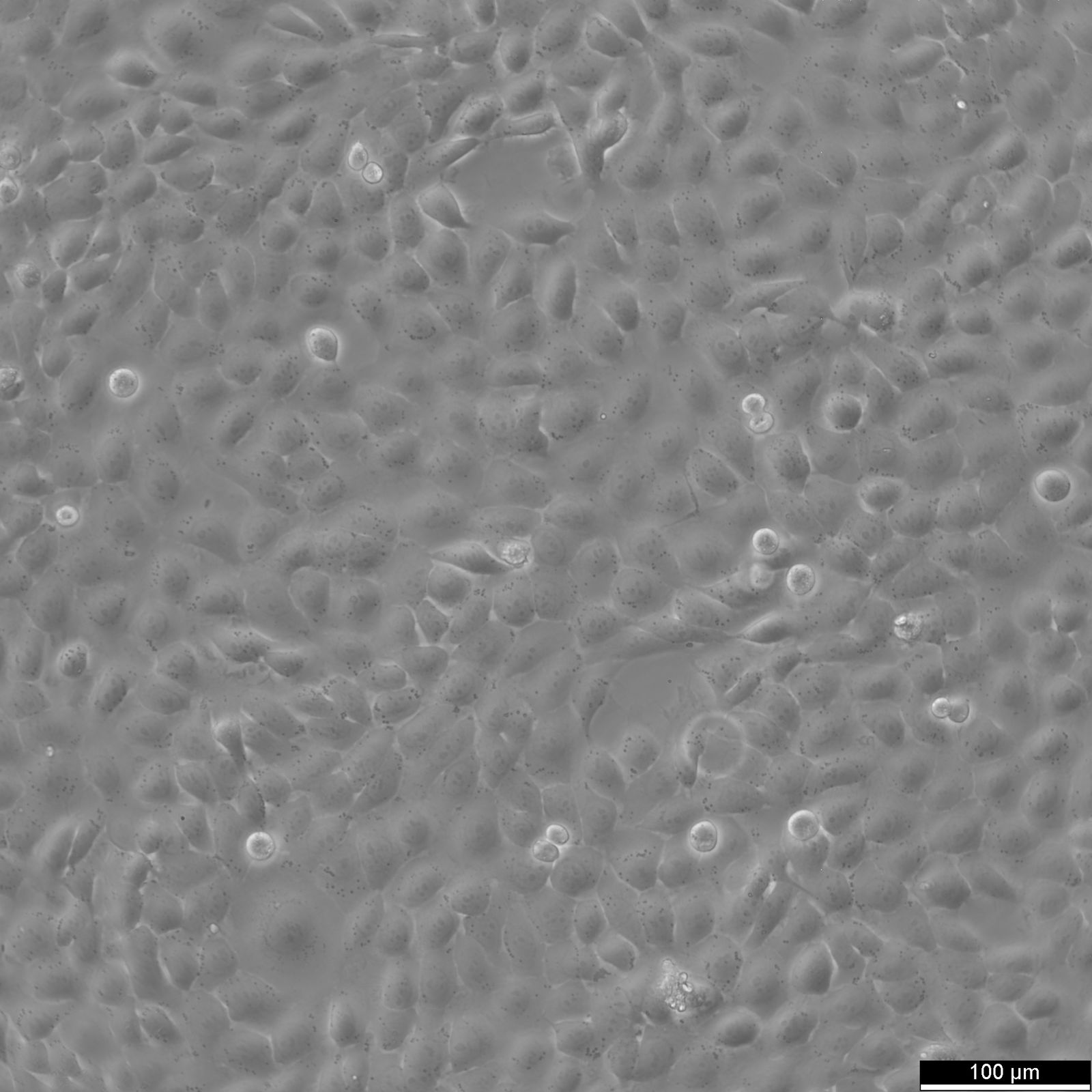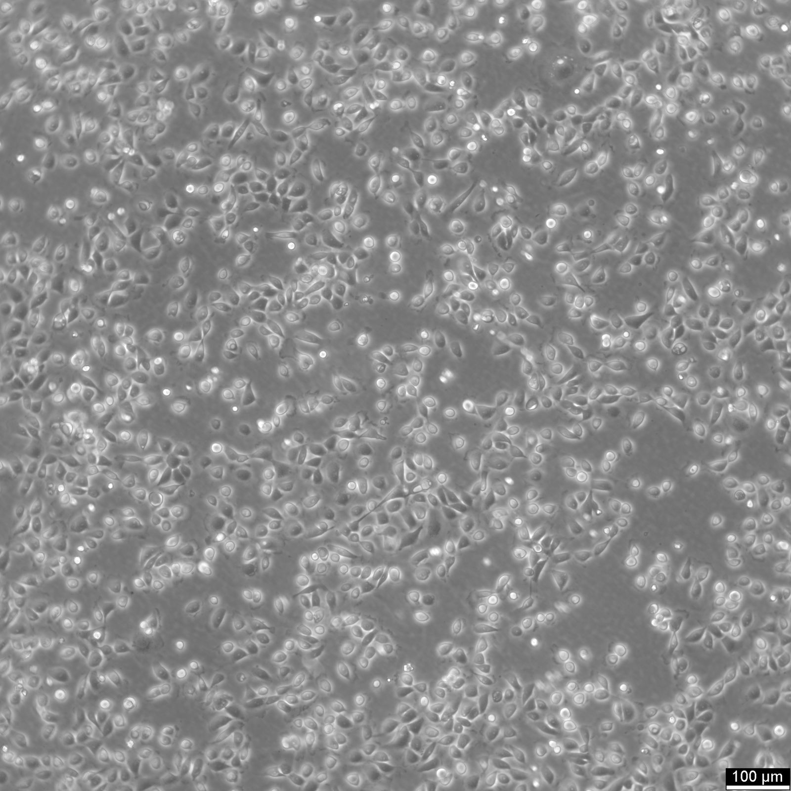 Categories: Urinary bladder cancer cell lines Description: 5637 is a bladder carcinoma cell line isolated from the urinary bladder of a 68-year-old man with grade II carcinoma. 5637 cells produce and secrete several growth factors, such as SCF, IL-1, IL-6, G-CSF, and GM-CSF. These cytokines are functionally active and can be a valuable source for the culture of growth factor-responsive or dependent hematopoietic primary cells and cell lines. The karyotype modal chromosome number of 5637 cells is 67, ranging from 59 to 71. The stemline modal chromosome number is 67 at 36% and polyploidy at 0.6%. Fourteen marker chromosomes are common to these cells, including 3q+, 11q+, i(13q), t(9q21q), i(17q), i(21q). Additional markers, like der(5)t(5,7)(q31,p11) and 1p, were only found specific to a minor subpopulation, as well as microchromosomes and double minutes (DM). Some cells include one or occasionally two Y chromosomes. 5637 cells are tumorigenic and have been shown to induce tumours in nude mice inoculated subcutaneously. The doubling time of 5637 cells is approximately 24 hours. The isoenzyme profile of 5637 cells consists of isoform 1 of AK-1, ES-D, Me-2 and PGM1, isoform 1 and 2 of GLO-I, isoform B of G6PD, as well as isoform 2 of PGM3. In terms of oncogenes, 5637 cells are positive for FGFR3, PIK3CA, HRAS, KRAS, NRAS, TERT, and CDKN2A but negative for TP53 and belong to the molecular bladder cancer subtype l5637 is a bladder carcinoma cell line isolated from the urinary bladder of a 68-year-old man with grade II carcinoma. 5637 cells produce and secrete several growth factors, such as SCF, IL-1, IL-6, G-CSF, and GM-CSF. These cytokines are functionally active and can be a valuable source for the culture of growth factor-responsive or dependent hematopoietic primary cells and cell lines. The karyotype modal chromosome number of 5637 cells is 67, ranging from 59 to 71. The stemline modal chromosome number is 67 at 36% and polyploidy at 0.6%. Fourteen marker chromosomes are common to these cells, including 3q+, 11q+, i(13q), t(9q21q), i(17q), i(21q). Additional markers, like der(5)t(5,7)(q31,p11) and 1p, were only found specific to a minor subpopulation, as well as microchromosomes and double minutes (DM). Some cells include one or occasionally two Y chromosomes. 5637 cells are tumorigenic and have been shown to induce tumours in nude mice inoculated subcutaneously. The doubling time of 5637 cells is approximately 24 hours. The isoenzyme profile of 5637 cells consists of isoform 1 of AK-1, ES-D, Me-2 and PGM1, isoform 1 and 2 of GLO-I, isoform B of G6PD, as well as isoform 2 of PGM3. In terms of oncogenes, 5637 cells are positive for FGFR3, PIK3CA, HRAS, KRAS, NRAS, TERT, and CDKN2A but negative for TP53 and belong to the molecular bladder cancer subtype luminal. In conclusion, 5637 cells are a valuable tool for cancer research, especially with respect to the study of growth factors, cell division, oncogenes, and bladder cancer. Organism: Human Tissue: Bladder Disease: Carcinoma Age: 68 years Gender: Male Ethnicity: Caucasian Morphology: Epithelial-like Growth Properties: Adherent Citation: 5637 (Cytion catalog number 300105) Biosafety Level: 1 Ncbi_ Taxid: 9606.0 Cellosaurus Accession: CVCL_0126 Isoenzymes: Me-2, 1, PGM3, 2, PGM1, 1, ES-D, 1, AK-1, 1, GLO-1, 1-2, G6PD, B Tumorigenic: Yes, In nude mice. Products: IL-1, IL-6, G-CFS, GM-CSF, SCF Ploidy Status: The modal chromosome number of the stemline cells is 67, comprising 36% of the total. Polyploidy occurs in 0.6% of these cells. Each cell typically had one or occasionally two Y chromosomes. Karyotype: Phenotype Frequency Product: 0.0056. Culture Medium: RPMI 1640, w: 2.0 mM stable Glutamine, w: 2.0 g/L NaHCO3 (Cytion article number 820700a) Supplements: Supplement the medium with 10% FBS Dissociation Reagent: Accutase Doubling Time: 24 hours Subculturing: First, remove the old medium from the adherent cells and wash them with PBS that lacks calcium and magnesium. For T25 flasks, use 3-5 ml of PBS, and for T75 flasks, use 5-10 ml. Then, cover the cells completely with Accutase, using 1-2 ml for T25 flasks and 2.5 ml for T75 flasks. Let the cells incubate at room temperature for 8-10 minutes to detach them. After incubation, gently mix the cells with 10 ml of medium to resuspend them, then centrifuge at 300xg for 3 minutes. Discard the supernatant, resuspend the cells in fresh medium, and transfer them into new flasks that already contain fresh medium. Seeding Density: 1 x 104 cells/cm2 will result in a confluent monolayer within 3 days. Fluid Renewal: 2 to 3 times per week Post Thaw Recovery: After thawing, plate the cells at 5 x 104 cells/cm2 and allow the cells to recover from the freezing process and to adhere for at least 24 hours. Freeze Medium: As a cryopreservation medium, use complete growth medium (including FBS) + 10% DMSO for adequate post-thaw viability, or CM-1 (Cytion catalog number 800100), which includes optimized osmoprotectants and metabolic stabilizers to enhance recovery and reduce cryo-induced stress. Thawing And Culturing Cells: Confirm that the vial remains deeply frozen upon delivery, as cells are shipped on dry ice to maintain optimal temperatures during transit. Upon receipt, either store the cryovial immediately at temperatures below -150°C to ensure the preservation of cellular integrity, or proceed to step 3 if immediate culturing is required. For immediate culturing, swiftly thaw the vial by immersing it in a 37°C water bath with clean water and an antimicrobial agent, agitating gently for 40-60 seconds until a small ice clump remains. Perform all subsequent steps under sterile conditions in a flow hood, disinfecting the cryovial with 70% ethanol before opening. Carefully open the disinfected vial and transfer the cell suspension into a 15 ml centrifuge tube containing 8 ml of room-temperature culture medium, mixing gently. Centrifuge the mixture at 300 x g for 3 minutes to separate the cells and carefull
