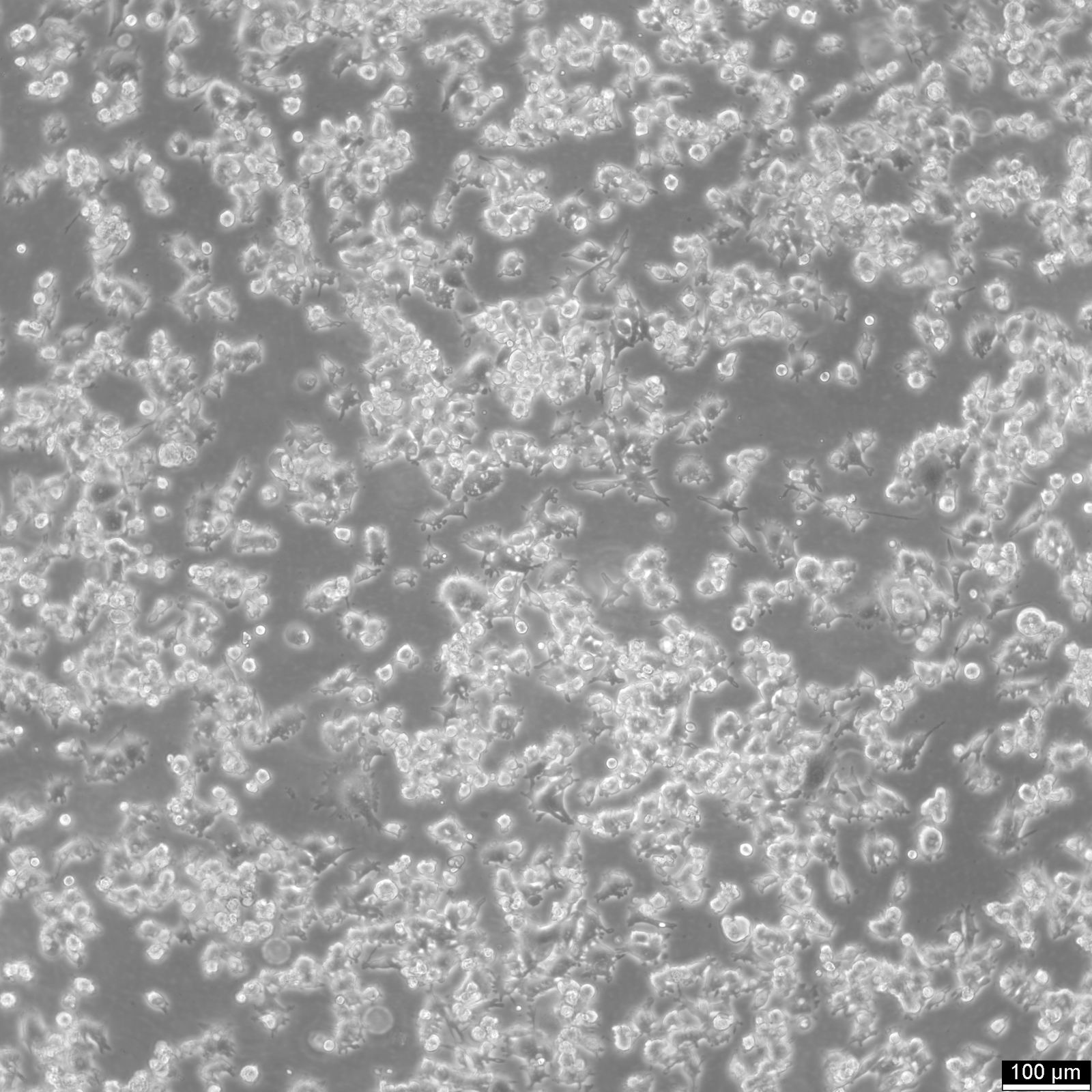 Categories: Lung cancer cell lines Description: A427 cells originate from lung tissue, specifically a carcinoma, exhibit epithelial morphology and grow adherently. A427 cells have a doubling time of approximately 28 hours in RPMI 1640 medium supplemented with 10% fetal bovine serum (FBS). In ACL-3 medium, the doubling time is slightly extended to 38 hours, while in ACL-3 supplemented with bovine serum albumin (BSA), it reaches 42 hours. These variations in doubling time provide valuable insights into cell behaviour under different experimental conditions. At passage 60, A427 cells display a hypotriploid to hypertriploid karyotype. This means the cells possess abnormal chromosomes, including dicentrics, minutes, and a large subtelocentric marker. Such karyotypic abnormalities are often associated with cancer cells and contribute to the unique characteristics of this cell line. A427 cells exhibit tumorigenic properties, allowing them to form tumours when injected into nude mice. These tumours resemble undifferentiated adenocarcinoma, further emphasizing the relevance of this cell line in studying lung cancer and its progression. With its exceptional features, A427 cells find utility in various applications, particularly in cancer research. Their epithelial morphology and lung origin make them an ideal model for studying lung cancer and related diseases. Additionally, A427 cells are well-suited for 3D cell culture techniques, providing a more physiologically relevant environment to explore the behaviour of lung cancer cells. Organism: Human Tissue: Lung Disease: Carcinoma Synonyms: A-427, A427N Age: 52 years Gender: Male Ethnicity: Caucasian Morphology: Epithelial-like Growth Properties: Adherent Citation: A427 (Cytion catalog number 300111) Biosafety Level: 1 Ncbi_ Taxid: 9606.0 Cellosaurus Accession: CVCL_1055 Protein Expression: p53 positive Tumorigenic: Yes, in nude mice. Forms an undifferentiated tumor suggestive of adenocarcinoma. Karyotype: P60) hypotriploid to hypertriploid with abnormalities including dicentrics, minutes and large subtelocentric marker Culture Medium: EMEM (MEM Eagle), w: 2 mM L-Glutamine, w: 2.2 g/L NaHCO3, w: EBSS (Cytion article number 820100a) Supplements: Supplement the medium with 10% FBS and 1% NEAA Dissociation Reagent: Accutase Subculturing: Remove the old medium from the adherent cells and wash them with PBS that lacks calcium and magnesium. For T25 flasks, use 3-5 ml of PBS, and for T75 flasks, use 5-10 ml. Then, cover the cells completely with Accutase, using 1-2 ml for T25 flasks and 2.5 ml for T75 flasks. Let the cells incubate at room temperature for 8-10 minutes to detach them. After incubation, gently mix the cells with 10 ml of medium to resuspend them, then centrifuge at 300xg for 3 minutes. Discard the supernatant, resuspend the cells in fresh medium, and transfer them into new flasks that already contain fresh medium. Seeding Density: 1 x 104 cells/cm2 will result in a confluent monolayer within 3 days. Fluid Renewal: 2 to 3 times per week Post Thaw Recovery: After thawing, plate the cells at 4 x 104 cells/cm2 and allow the cells to recover from the freezing process and to adhere for at least 24 hours. Freeze Medium: As a cryopreservation medium, use complete growth medium (including FBS) + 10% DMSO for adequate post-thaw viability, or CM-1 (Cytion catalog number 800100), which includes optimized osmoprotectants and metabolic stabilizers to enhance recovery and reduce cryo-induced stress. Thawing And Culturing Cells: Confirm that the vial remains deeply frozen upon delivery, as cells are shipped on dry ice to maintain optimal temperatures during transit. Upon receipt, either store the cryovial immediately at temperatures below -150°C to ensure the preservation of cellular integrity, or proceed to step 3 if immediate culturing is required. For immediate culturing, swiftly thaw the vial by immersing it in a 37°C water bath with clean water and an antimicrobial agent, agitating gently for 40-60 seconds until a small ice clump remains. Perform all subsequent steps under sterile conditions in a flow hood, disinfecting the cryovial with 70% ethanol before opening. Carefully open the disinfected vial and transfer the cell suspension into a 15 ml centrifuge tube containing 8 ml of room-temperature culture medium, mixing gently. Centrifuge the mixture at 300 x g for 3 minutes to separate the cells and carefully discard the supernatant containing residual freezing medium. Gently resuspend the cell pellet in 10 ml of fresh culture medium. For adherent cells, divide the suspension between two T25 culture flasks, for suspension cultures, transfer all the medium into one T25 flask to promote effective cell interaction and growth. Adhere to established subculture protocols for continued growth and maintenance of the cell line, ensuring reliable experimental outcomes. Sterility: Mycoplasma contamination is excluded using both PCR-based assays and luminescence-based mycoplasma detection methods. To ensure there is no bacterial, fungal, or yeast contamination, cell cultures are subjected to daily visual inspections. Safety Precautions: When planning to store a cryovial in liquid nitrogen for future thawing, it is mandatory to adhere to stringent safety measures. Appropriate protective gloves and clothing are essential, and the use of a face mask or safety goggles is required during the transfer of frozen samples to or from the liquid nitrogen tank. This is to mitigate the risk of injury from potential cryovial explosions upon removal, which can result in the projection of sharp fragments. Warranty: We stand by the promise of delivering products with high cell viability and robust culture performance. To achieve the best results, please make sure you follow the storage and culture instructions detailed in the product information sheet closely. Your adherence to these guidelines is key to success. Subject To Material Transfer Agreements: If you intend to use Cyt