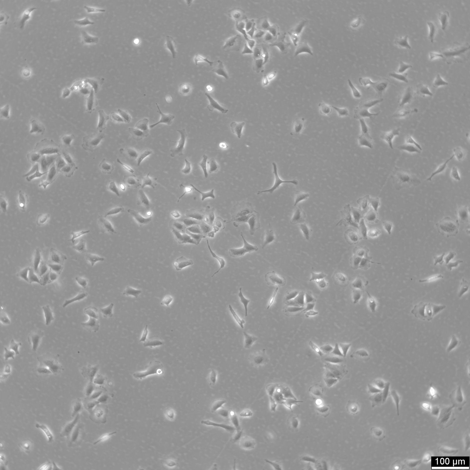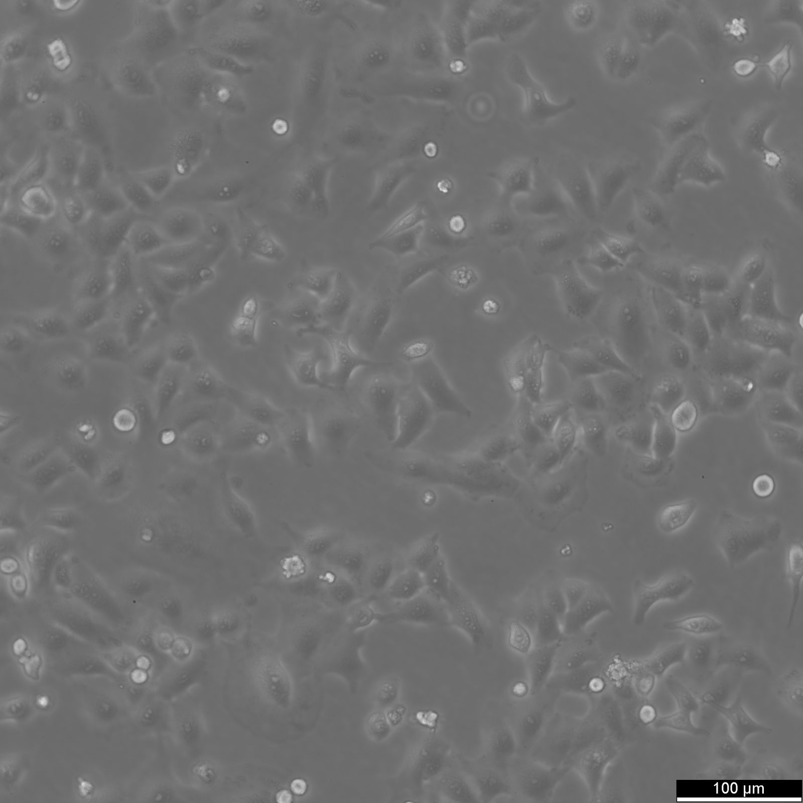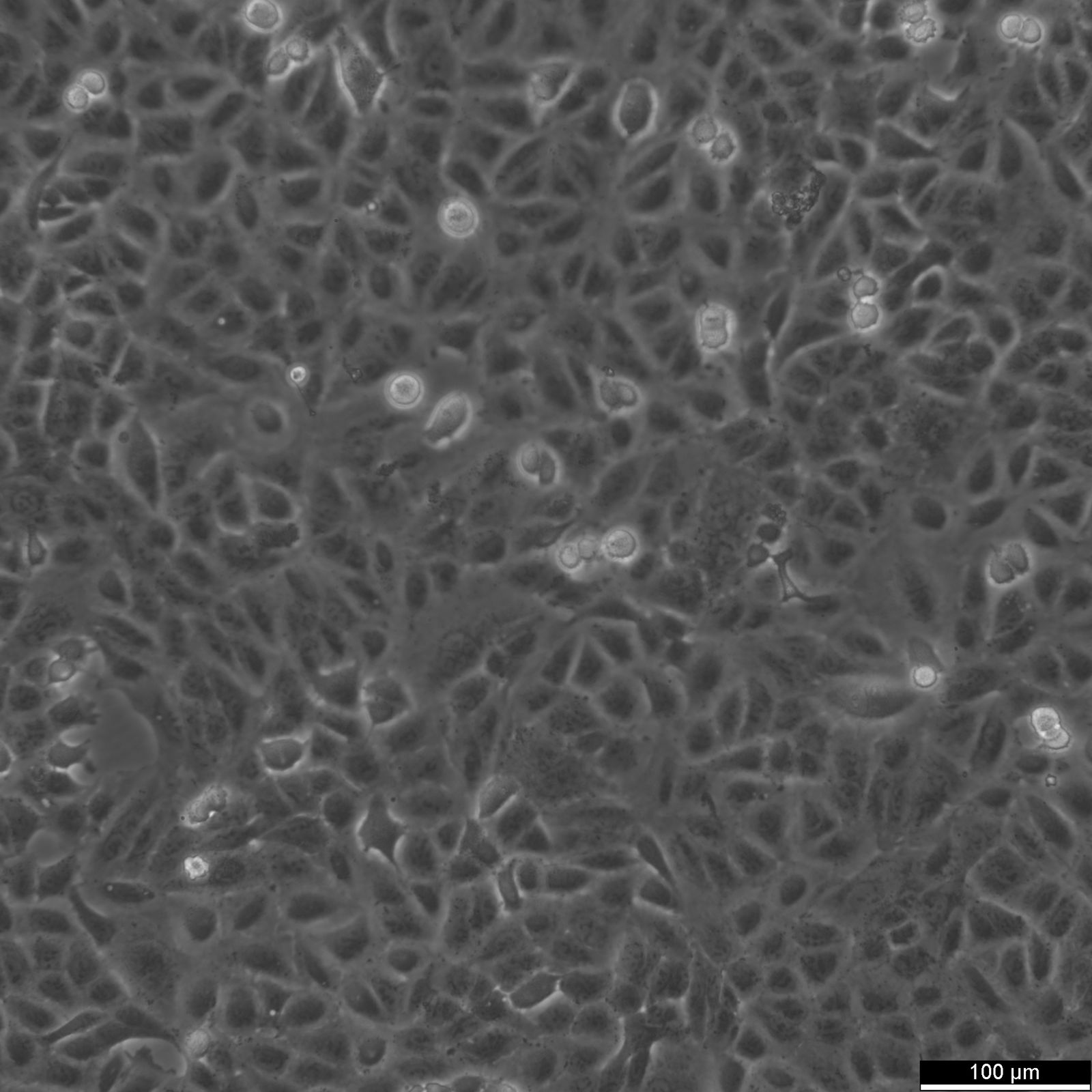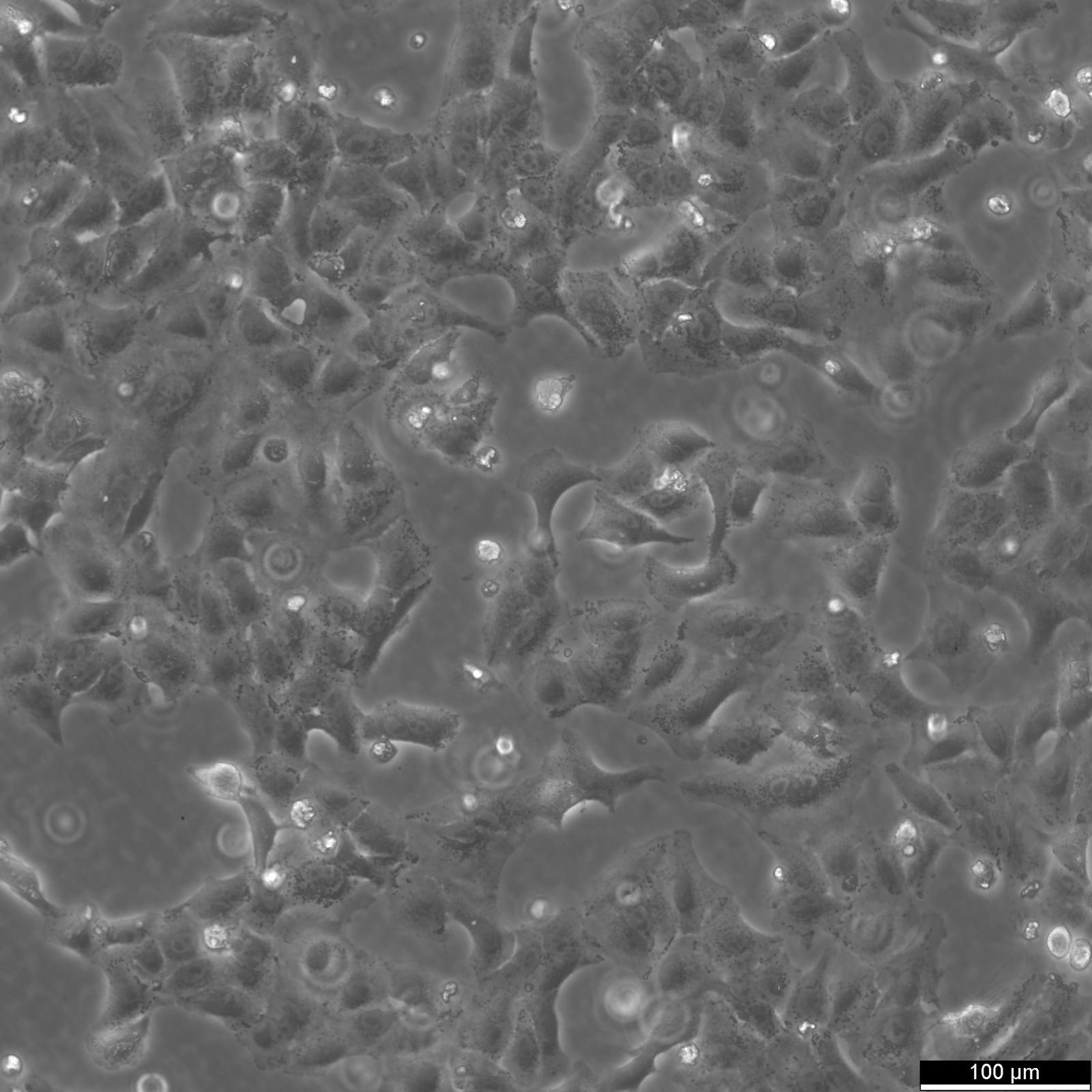 Categories: Lung cancer cell lines Description: A549 cells, derived from lung adenocarcinoma tissue, are a primary model used in cancer research, particularly in biomedical laboratories focusing on lung-related cancers. A549 cells are commonly used as an in vitro model for studying lung cancer biology, drug screening, and the effects of toxic compounds. In toxicology research, A549 cells offer a controlled experimental model that enables scientists to explore the mechanisms underlying toxic effects and cellular responses. By understanding these mechanisms, researchers can better assess the safety of substances and potentially mitigate their harmful effects. A549 carcinoma cells have been extensively used as an in vitro model to study lung cancer pathogenesis and as an alternative tissue culture model for various pulmonary-related research studies in biomedical laboratories. These cells maintain the characteristics of type II alveolar epithelial cells and are used to examine the epithelial responses to various infections and inflammatory stimuli, including lung inflammation. Furthermore, the human cell line A549 serves as a valuable tool in the development of specific antibodies targeting lung cancer-related proteins or markers. By exposing these cells to substances of interest, researchers can investigate how they affect cell viability, proliferation, apoptosis, and other cellular processes. This information aids in the identification of potential therapeutic targets and the development of novel treatments for lung cancer. In summary, A549 carcinoma cells are pivotal in cancer research, especially concerning lung-related cancers, serving as an in vitro model for cancer and toxicology research, developing effective treatments, and drug screening. Organism: Human Tissue: Lung Disease: Carcinoma Synonyms: A 549, A-549, NCI-A549, hA54 Age: 58 years Gender: Male Ethnicity: Caucasian Morphology: Epithelial-like Growth Properties: Adherent Citation: A549 (Cytion catalog number 300114) Biosafety Level: 1 Ncbi_ Taxid: 9606.0 Cellosaurus Accession: CVCL_0023 Protein Expression: p53 positive Isoenzymes: G6PD, type B Reverse Transcriptase: negative Karyotype: A549 cells have the modal chromosome number n2, with some cells with 64 chromosomes. Culture Medium: DMEM:Ham's F12 (1:1), w: 3.1 g/L Glucose, w: 2.5 mM L-Glutamine, w: 15 mM HEPES, w: 0.5 mM Sodium pyruvate, w: 1.2 g/L NaHCO3 (Cytion article number 820400a) Supplements: Supplement the medium with 10% FBS Dissociation Reagent: Accutase Doubling Time: 28 hours Subculturing: Remove the old medium from the adherent cells and wash them with PBS that lacks calcium and magnesium. For T25 flasks, use 3-5 ml of PBS, and for T75 flasks, use 5-10 ml. Then, cover the cells completely with Accutase, using 1-2 ml for T25 flasks and 2.5 ml for T75 flasks. Let the cells incubate at room temperature for 8-10 minutes to detach them. After incubation, gently mix the cells with 10 ml of medium to resuspend them, then centrifuge at 300xg for 3 minutes. Discard the supernatant, resuspend the cells in fresh medium, and transfer them into new flasks that already contain fresh medium. Seeding Density: 1 x 104 cells/cm2 Fluid Renewal: 2 to 3 times per week Post Thaw Recovery: After thawing, plate the cells at 5 x 104 cells/cm2 and allow the cells to recover from the freezing process and to adhere for at least 24 hours. Freeze Medium: As a cryopreservation medium, use complete growth medium (including FBS) + 10% DMSO for adequate post-thaw viability, or CM-1 (Cytion catalog number 800100), which includes optimized osmoprotectants and metabolic stabilizers to enhance recovery and reduce cryo-induced stress. Thawing And Culturing Cells: Confirm that the vial remains deeply frozen upon delivery, as cells are shipped on dry ice to maintain optimal temperatures during transit. Upon receipt, either store the cryovial immediately at temperatures below -150°C to ensure the preservation of cellular integrity, or proceed to step 3 if immediate culturing is required. For immediate culturing, swiftly thaw the vial by immersing it in a 37°C water bath with clean water and an antimicrobial agent, agitating gently for 40-60 seconds until a small ice clump remains. Perform all subsequent steps under sterile conditions in a flow hood, disinfecting the cryovial with 70% ethanol before opening. Carefully open the disinfected vial and transfer the cell suspension into a 15 ml centrifuge tube containing 8 ml of room-temperature culture medium, mixing gently. Centrifuge the mixture at 300 x g for 3 minutes to separate the cells and carefully discard the supernatant containing residual freezing medium. Gently resuspend the cell pellet in 10 ml of fresh culture medium. For adherent cells, divide the suspension between two T25 culture flasks, for suspension cultures, transfer all the medium into one T25 flask to promote effective cell interaction and growth. Adhere to established subculture protocols for continued growth and maintenance of the cell line, ensuring reliable experimental outcomes. Sterility: Mycoplasma contamination is excluded using both PCR-based assays and luminescence-based mycoplasma detection methods. To ensure there is no bacterial, fungal, or yeast contamination, cell cultures are subjected to daily visual inspections. Safety Precautions: When planning to store a cryovial in liquid nitrogen for future thawing, it is mandatory to adhere to stringent safety measures. Appropriate protective gloves and clothing are essential, and the use of a face mask or safety goggles is required during the transfer of frozen samples to or from the liquid nitrogen tank. This is to mitigate the risk of injury from potential cryovial explosions upon removal, which can result in the projection of sharp fragments. Warranty: We stand by the promise of delivering products with high cell viability and robust culture performance. To achieve the best results, please make sure you follow the storage