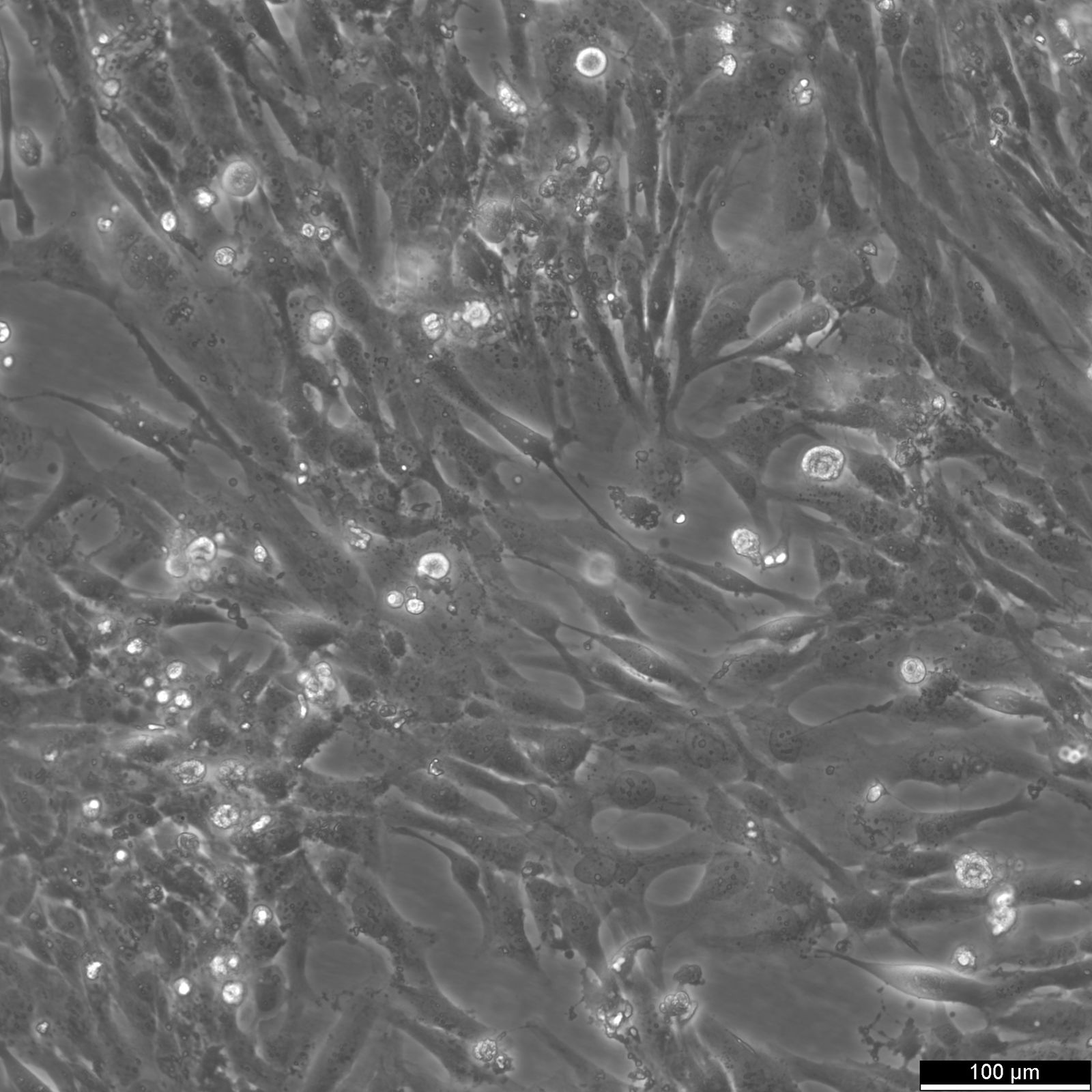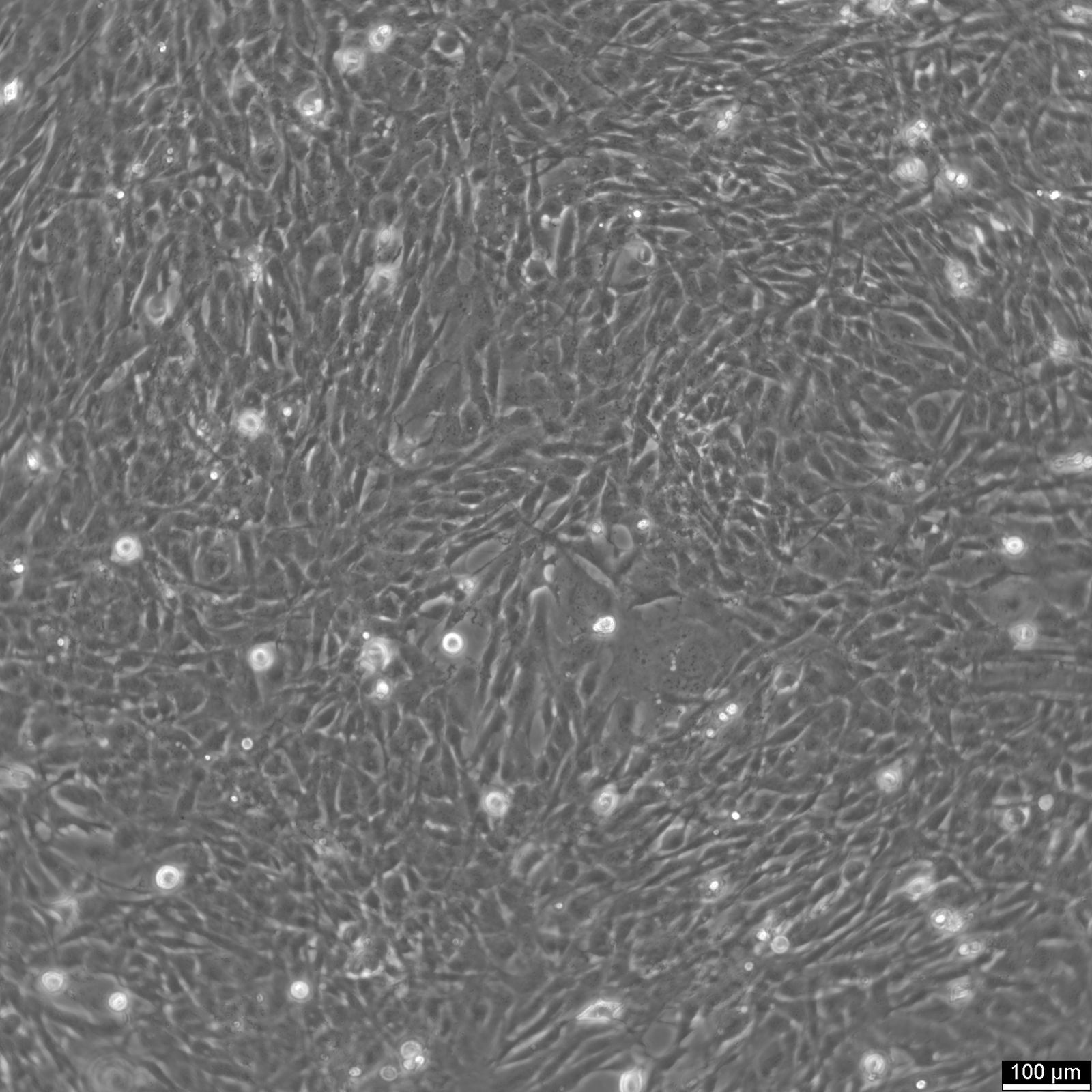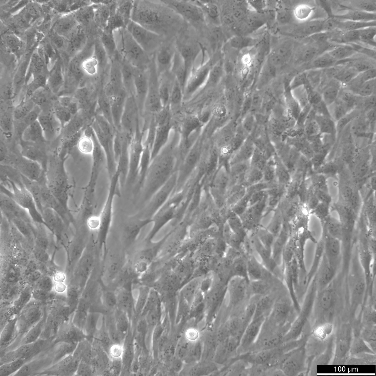 Categories: Hybrid cell lines Description: The AC16 cell line, derived from human ventricular cells fused with SV40-transformed, showcases characteristics typical of cardiomyocytes, including the expression of transcription factors such as GATA4, MYCD, NFATc4, and contractile proteins like alpha- and beta-myosin heavy chain. AC16 cells also express gap junction proteins connexin-43 and connexin-40, with functional gap junctions confirmed by dye-coupling studies, underscoring their utility in cardiomyocyte research. When the SV40 oncogene is silenced, AC16 transitions towards a more differentiated state, marked by the expression of BMP2, indicative of cardiac differentiation and developmental regulation. In general, scientists employ various techniques, including stem cell differentiation, animal models, molecular analysis, and biomarker discovery, to advance knowledge and potential therapies for heart-related conditions. The involvement of mitogen and senescence pathways, along with thymidine kinase induction, further elucidates the complex nature of human cardiomyocytes and their response to pathological conditions. The AC16 human cardiomyocyte cell line's ability to mimic the behavior of mature cardiomyocytes makes it a valuable model for cardiac research. It closely resembles the genetic makeup of primary cardiomyocytes, allowing for studies on cardiac development, pathology, and the implications of histone loss in vitro, however, the cardiomyocyte behavior and genetic complexity might not fully match that of primary or stem cell-derived cardiomyocytes. In the context of toxicology and cardiovascular disease research, AC16 cells serve as a vital tool for understanding cardiomyocyte development, inflammation, injury, regeneration, and toxicological effects. The unique properties of the AC16 human cardiomyocyte cell line, including its response to developmental cues and the ability to simulate the physiological conditions of human cardiomyocytes, make it an indispensable asset in the quest to unravel the mysteries of heart diseases and devise novel therapeutic interventions. Organism: Human Tissue: Heart, ventricle Synonyms: Human hybrid cardiomyocyte Ethnicity: Caucasian Morphology: Epithelial Cell Type: Cardiomyocyte Growth Properties: Adherent Citation: AC16 Cardiomyocyte Cell Line (Cytion catalog number 305215) Biosafety Level: 1 Ncbi_ Taxid: 9606.0 Cellosaurus Accession: CVCL_4U18 Viruses: Transformed by the SV40 large T-antigen Culture Medium: Culture medium:DMEM:Ham's F12 (1:1), w: 3.1 g/L Glucose, w: 2.5 mM L-Glutamine, w: 15 mM HEPES, w: 0.5 mM Sodium pyruvate, w: 1.2 g/L NaHCO3 (Cytion article number 820400a). Supplement the culture medium with 12.5% FBS and add 0.9 mM L-Glutamine to achieve a final concentration of 2.5 mM L-Glutamine. Differentiation medium: DMEM:Ham's F12 (1:1), w: 3.1 g/L Glucose, w: 2.5 mM L-Glutamine, w: 15 mM HEPES, w: 0.5 mM Sodium pyruvate, w: 1.2 g/L NaHCO3 (Cytion article number 820400a). To prepare the complete differentiation medium, add 1x ITS+ (Gibco, catalog number 41400045) and 2% Horse Serum (Gibco, catalog number 16050130). Dissociation Reagent: Accutase Subculturing: Remove the old medium from the adherent cells and wash them with PBS that lacks calcium and magnesium. For T25 flasks, use 3-5 ml of PBS, and for T75 flasks, use 5-10 ml. Then, cover the cells completely with Accutase, using 1-2 ml for T25 flasks and 2.5 ml for T75 flasks. Let the cells incubate at room temperature for 8-10 minutes to detach them. After incubation, gently mix the cells with 10 ml of medium to resuspend them, then centrifuge at 300xg for 3 minutes. Discard the supernatant, resuspend the cells in fresh medium, and transfer them into new flasks that already contain fresh medium. Freeze Medium: As a cryopreservation medium, use complete growth medium (including FBS) + 10% DMSO for adequate post-thaw viability, or CM-1 (Cytion catalog number 800100), which includes optimized osmoprotectants and metabolic stabilizers to enhance recovery and reduce cryo-induced stress. Thawing And Culturing Cells: Confirm that the vial remains deeply frozen upon delivery, as cells are shipped on dry ice to maintain optimal temperatures during transit. Upon receipt, either store the cryovial immediately at temperatures below -150°C to ensure the preservation of cellular integrity, or proceed to step 3 if immediate culturing is required. For immediate culturing, swiftly thaw the vial by immersing it in a 37°C water bath with clean water and an antimicrobial agent, agitating gently for 40-60 seconds until a small ice clump remains. Perform all subsequent steps under sterile conditions in a flow hood, disinfecting the cryovial with 70% ethanol before opening. Carefully open the disinfected vial and transfer the cell suspension into a 15 ml centrifuge tube containing 8 ml of room-temperature culture medium, mixing gently. Centrifuge the mixture at 300 x g for 3 minutes to separate the cells and carefully discard the supernatant containing residual freezing medium. Gently resuspend the cell pellet in 10 ml of fresh culture medium. For adherent cells, divide the suspension between two T25 culture flasks, for suspension cultures, transfer all the medium into one T25 flask to promote effective cell interaction and growth. Adhere to established subculture protocols for continued growth and maintenance of the cell line, ensuring reliable experimental outcomes. Sterility: Mycoplasma contamination is excluded using both PCR-based assays and luminescence-based mycoplasma detection methods. To ensure there is no bacterial, fungal, or yeast contamination, cell cultures are subjected to daily visual inspections. Safety Precautions: When planning to store a cryovial in liquid nitrogen for future thawing, it is mandatory to adhere to stringent safety measures. Appropriate protective gloves and clothing are essential, and the use of a face mask or safety goggles is required during the transfer of frozen