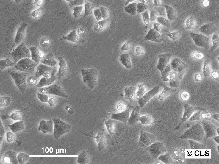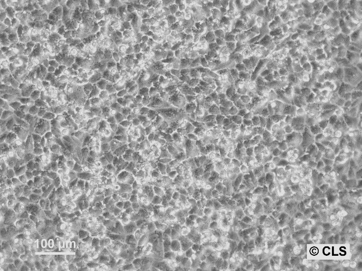 Categories: Reproductive system cancer cell lines Description: The An3 Ca cell line is derived from a human endometrial adenocarcinoma, a type of cancer originating from the lining of the uterus. This cell line is estrogen receptor negative (ER-) and exhibits aggressive tumorigenic potential when assessed in vivo. An3 Ca cells are used extensively in research focused on understanding the molecular and cellular mechanisms underlying endometrial cancer progression, including studies on cancer cell proliferation, metastasis, and response to therapeutic agents. Characteristically, An3 Ca cells display an epithelial morphology and have been utilized to study the impact of various genetic and environmental factors on cancer cell behavior. Research using this cell line has contributed to identifying potential therapeutic targets and understanding the resistance mechanisms against conventional treatments. They serve as a valuable model for evaluating new drugs or treatment strategies that could be effective against aggressive forms of endometrial cancer. Overall, the An3 Ca cell line is instrumental in advancing the scientific knowledge of endometrial adenocarcinoma, offering insights that might lead to more effective interventions for this challenging and often lethal disease. Organism: Human Tissue: Uterus, Endometrium Disease: Adenocarcinoma Synonyms: AN3_CA, AN3-CA, AN3 Ca, AN3CA, AN-3, AN3, Acanthosis Nigricans 3rd attempt-CArcinoma Age: 55 years Gender: Female Ethnicity: Caucasian Morphology: Epithelial-like Cell Type: Epithelial Growth Properties: Adherent Citation: AN3 Ca (Cytion catalog number 300119) Biosafety Level: 1 Ncbi_ Taxid: 9606.0 Cellosaurus Accession: CVCL_0028 Isoenzymes: PGM3, 1-2, PGM1, 1, ES-D, 1, AK-1, 1-2, GLO-1, 2, G6PD, B, Tumorigenic: Yes, in nude mice. Produces undifferentiated malignant tumor, also at low frequency (22%) in the cheek pouch of cortisone treated hamsters Ploidy Status: Aneuploid, Phenotype Frequency Product: 0.0054 Culture Medium: EMEM (MEM Eagle), w: 2 mM L-Glutamine, w: 2.2 g/L NaHCO3, w: EBSS (Cytion article number 820100a) Supplements: Supplement the medium with 10% FBS and 1% NEAA Dissociation Reagent: Accutase Doubling Time: 45 to 50 hours Subculturing: Remove the old medium from the adherent cells and wash them with PBS that lacks calcium and magnesium. For T25 flasks, use 3-5 ml of PBS, and for T75 flasks, use 5-10 ml. Then, cover the cells completely with Accutase, using 1-2 ml for T25 flasks and 2.5 ml for T75 flasks. Let the cells incubate at room temperature for 8-10 minutes to detach them. After incubation, gently mix the cells with 10 ml of medium to resuspend them, then centrifuge at 300xg for 3 minutes. Discard the supernatant, resuspend the cells in fresh medium, and transfer them into new flasks that already contain fresh medium. Seeding Density: An initial seeding density of 3 to 4 x 104 cells/cm2 is recommended. Later on, 2 x 104 cells/ cm2 will yield a confluent layer in 4 to 5 days. Fluid Renewal: 2 to 3 times per week Post Thaw Recovery: Within 24 to 48 hours Freeze Medium: As a cryopreservation medium, use complete growth medium (including FBS) + 10% DMSO for adequate post-thaw viability, or CM-1 (Cytion catalog number 800100), which includes optimized osmoprotectants and metabolic stabilizers to enhance recovery and reduce cryo-induced stress. Thawing And Culturing Cells: Confirm that the vial remains deeply frozen upon delivery, as cells are shipped on dry ice to maintain optimal temperatures during transit. Upon receipt, either store the cryovial immediately at temperatures below -150°C to ensure the preservation of cellular integrity, or proceed to step 3 if immediate culturing is required. For immediate culturing, swiftly thaw the vial by immersing it in a 37°C water bath with clean water and an antimicrobial agent, agitating gently for 40-60 seconds until a small ice clump remains. Perform all subsequent steps under sterile conditions in a flow hood, disinfecting the cryovial with 70% ethanol before opening. Carefully open the disinfected vial and transfer the cell suspension into a 15 ml centrifuge tube containing 8 ml of room-temperature culture medium, mixing gently. Centrifuge the mixture at 300 x g for 3 minutes to separate the cells and carefully discard the supernatant containing residual freezing medium. Gently resuspend the cell pellet in 10 ml of fresh culture medium. For adherent cells, divide the suspension between two T25 culture flasks, for suspension cultures, transfer all the medium into one T25 flask to promote effective cell interaction and growth. Adhere to established subculture protocols for continued growth and maintenance of the cell line, ensuring reliable experimental outcomes. Sterility: Mycoplasma contamination is excluded using both PCR-based assays and luminescence-based mycoplasma detection methods. To ensure there is no bacterial, fungal, or yeast contamination, cell cultures are subjected to daily visual inspections. Safety Precautions: When planning to store a cryovial in liquid nitrogen for future thawing, it is mandatory to adhere to stringent safety measures. Appropriate protective gloves and clothing are essential, and the use of a face mask or safety goggles is required during the transfer of frozen samples to or from the liquid nitrogen tank. This is to mitigate the risk of injury from potential cryovial explosions upon removal, which can result in the projection of sharp fragments. Warranty: We stand by the promise of delivering products with high cell viability and robust culture performance. To achieve the best results, please make sure you follow the storage and culture instructions detailed in the product information sheet closely. Your adherence to these guidelines is key to success. Subject To Material Transfer Agreements: If you intend to use Cytion cell lines solely for internal research at a single research site, please complete and sign our Material Transfer Agreement (