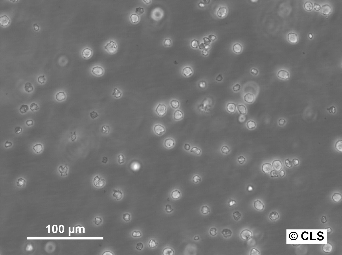 Categories: Leukemia cell lines Description: The BV-173 cell line originates from the peripheral blood of a patient diagnosed with Philadelphia chromosome-positive (Ph+) chronic myeloid leukemia (CML), established in 1980. This cell line is particularly noted for its Ph+ status, which is indicative of a specific chromosomal abnormality involving the translocation between chromosome 9 and chromosome 22. This translocation, often referred to as the Philadelphia chromosome, results in the BCR-ABL fusion gene, a critical molecular hallmark that drives the pathogenesis of CML by promoting leukemic cell proliferation and survival. BV-173 cells are used extensively in hematological research as a model to study the cellular and molecular mechanisms of CML, especially in the context of drug resistance and the cellular response to tyrosine kinase inhibitors (TKIs), which target the BCR-ABL fusion protein. The cell line has been instrumental in preclinical studies for evaluating new therapeutic strategies and understanding the biology of CML. BV-173 exhibits characteristics typical of myeloid lineage cells and is often used to study signal transduction pathways that are deregulated in CML due to the BCR-ABL oncogene. Organism: Human Tissue: Blood Disease: Chronic myeloid leukemia Age: 45 years Gender: Male Ethnicity: Caucasian Cell Type: Undifferentiated blast cells Growth Properties: Suspension Citation: BV-173 (Cytion catalog number 300133) Biosafety Level: 1 Ncbi_ Taxid: 9606.0 Cellosaurus Accession: CVCL_0181 Reverse Transcriptase: Negative (ELISA) Ploidy Status: t(9, 22) Modal Number: 2n=46 Mutational Profile: b2a2 BCR-ABL Culture Medium: RPMI 1640, w: 2.0 mM stable Glutamine, w: 2.0 g/L NaHCO3 (Cytion article number 820700a) Supplements: Supplement the medium with 10% heat-inactivated FBS Doubling Time: 35 hours Subculturing: Maintain cultures by periodically adding or replacing the medium. Initiate cultures with a density of 5 x 105 cells/ml and keep the cell concentration within the range of 3 x 105 to 1 x 106 cells/ml for optimal growth. Seeding Density: 1 x 105 cells/ml Fluid Renewal: 2 to 3 times per week Post Thaw Recovery: Allow the cells to recover from the freezing process for at least 48 hours. Freeze Medium: As a cryopreservation medium, use complete growth medium (including FBS) + 10% DMSO for adequate post-thaw viability, or CM-1 (Cytion catalog number 800100), which includes optimized osmoprotectants and metabolic stabilizers to enhance recovery and reduce cryo-induced stress. Thawing And Culturing Cells: Confirm that the vial remains deeply frozen upon delivery, as cells are shipped on dry ice to maintain optimal temperatures during transit. Upon receipt, either store the cryovial immediately at temperatures below -150°C to ensure the preservation of cellular integrity, or proceed to step 3 if immediate culturing is required. For immediate culturing, swiftly thaw the vial by immersing it in a 37°C water bath with clean water and an antimicrobial agent, agitating gently for 40-60 seconds until a small ice clump remains. Perform all subsequent steps under sterile conditions in a flow hood, disinfecting the cryovial with 70% ethanol before opening. Carefully open the disinfected vial and transfer the cell suspension into a 15 ml centrifuge tube containing 8 ml of room-temperature culture medium, mixing gently. Centrifuge the mixture at 300 x g for 3 minutes to separate the cells and carefully discard the supernatant containing residual freezing medium. Gently resuspend the cell pellet in 10 ml of fresh culture medium. For adherent cells, divide the suspension between two T25 culture flasks, for suspension cultures, transfer all the medium into one T25 flask to promote effective cell interaction and growth. Adhere to established subculture protocols for continued growth and maintenance of the cell line, ensuring reliable experimental outcomes. Sterility: Mycoplasma contamination is excluded using both PCR-based assays and luminescence-based mycoplasma detection methods. To ensure there is no bacterial, fungal, or yeast contamination, cell cultures are subjected to daily visual inspections. Safety Precautions: When planning to store a cryovial in liquid nitrogen for future thawing, it is mandatory to adhere to stringent safety measures. Appropriate protective gloves and clothing are essential, and the use of a face mask or safety goggles is required during the transfer of frozen samples to or from the liquid nitrogen tank. This is to mitigate the risk of injury from potential cryovial explosions upon removal, which can result in the projection of sharp fragments. Warranty: We stand by the promise of delivering products with high cell viability and robust culture performance. To achieve the best results, please make sure you follow the storage and culture instructions detailed in the product information sheet closely. Your adherence to these guidelines is key to success. Subject To Material Transfer Agreements: If you intend to use Cytion cell lines solely for internal research at a single research site, please complete and sign our Material Transfer Agreement (MTA) and submit it along with your order.For any commercial applications - including but not limited to fee-for-service work, quality control testing, product release, diagnostic use, or regulatory studies - please complete the Intended Use Form so we can prepare a suitable agreement tailored to your project.Please note: The MTA applies only to certain cell lines. If this notice and the MTA document appear on a product page, the agreement is applicable. For cell lines not covered by the MTA, no reference to the agreement will be shown. The MTA is not valid for customers in the Americas, China, or Taiwan. Please contact our U.S. entity to receive the appropriate agreement. Required Product 1: 820700a Required Product 3: 860015.0 Required Product 4: 830100.0