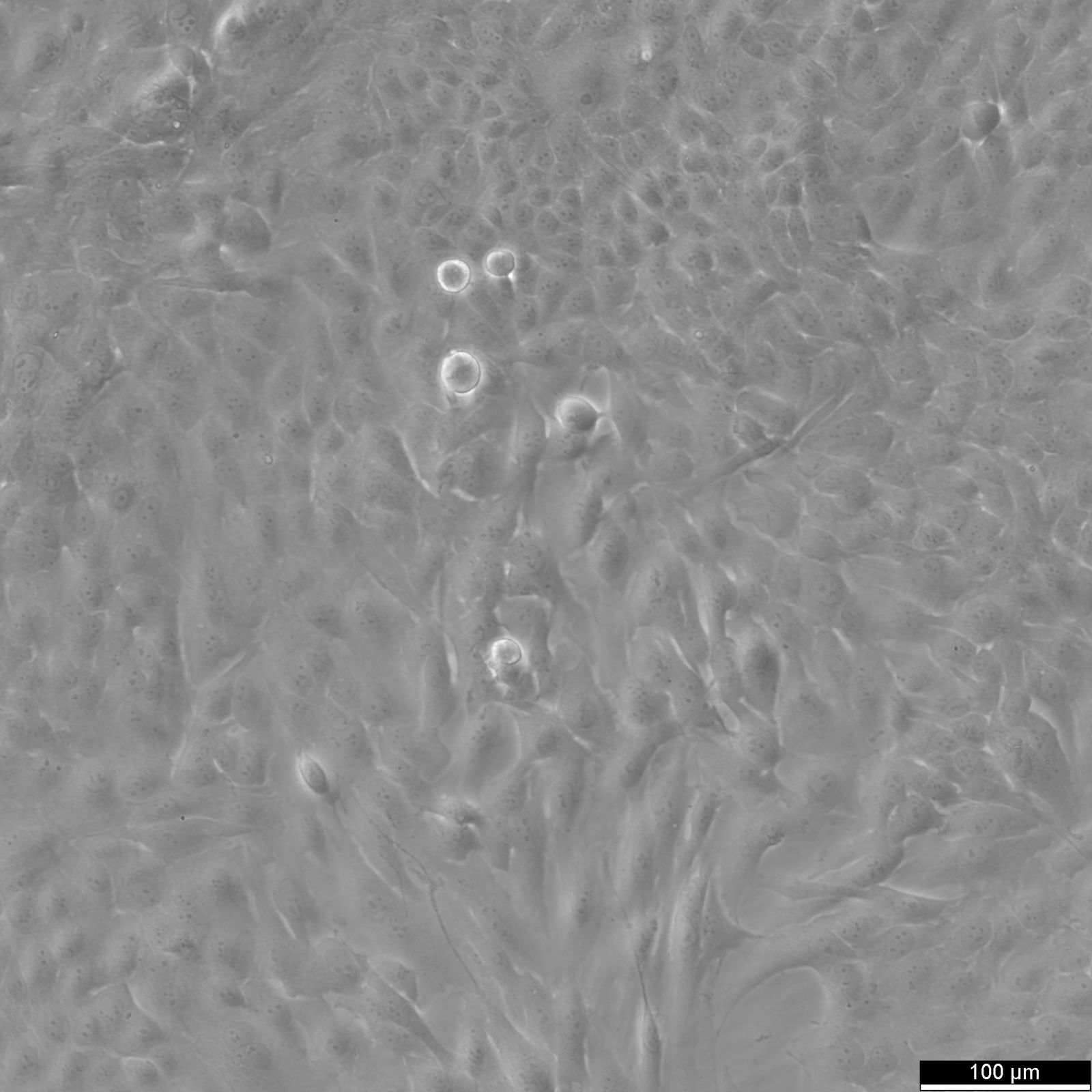 Categories: Lung cancer cell lines Description: The Calu-1 cell line originates from human lung carcinoma, specifically non-small cell lung cancer (NSCLC). It was established from the pleural effusion of a 47-year-old Caucasian male with epidermoid carcinoma of the lung. This cell line exhibits epithelial-like morphology and has been used extensively in research focused on lung cancer biology, drug screening, and cytotoxicity studies. Calu-1 cells express several markers characteristic of lung epithelial cells and have been a valuable model for studying the molecular pathways involved in lung carcinogenesis and therapy resistance. Calu-1 cells are known for their high proliferation rate and robustness in culture, making them suitable for in vitro experimental setups. They retain several chromosomal abnormalities typical of cancer cells, which includes multiple copies of chromosomes 7 and 20, demonstrating their utility in genetic and cytogenetic studies. The cell line also exhibits mutations in key oncogenes and tumor suppressor genes like KRAS and TP53, respectively, which are of particular interest in lung cancer research. These genetic characteristics make Calu-1 a useful tool for investigating the impact of genetic alterations on cancer progression and for testing the efficacy of targeted therapies in a controlled environment. Organism: Human Tissue: Lung Disease: Carcinoma Metastatic Site: Pleural effusion Synonyms: CaLu-1, CALU-1, Calu.1, CALU 1, Calu 1, CALU1, Calu1 Age: 47 years Gender: Male Morphology: Epithelial-like Cell Type: Epidermoid Growth Properties: Adherent Citation: Calu-1 (Cytion catalog number 300141) Biosafety Level: 1 Ncbi_ Taxid: 9606.0 Cellosaurus Accession: CVCL_0608 Protein Expression: p53 negative Antigen Expression: Blood Type A, Rh+, HLA A10, A11, B15, Bw35 Isoenzymes: Me-2, 1-2, PGM3, 1, PGM1, 1-2, ES-D, 1, AK-1, 1, GLO-1, 1-2, G6PD, B, Phenotype Frequency Product: 0.0359 Oncogenes: K-ras oncogene positive. Karyotype: The stem line chromosome number is hypotriploid and the 2S component occurred at 14.2%. Modal chromosome number is 62. Seven markers occurred frequently, M1 (two copies per cell), M6 and M7 were found in most cells, M2 and M3, and M4 and M5 appeared to be mutually exclusive, i.e., only one of M2 or M3, and one of M4 or M5 were present in each cell. Y chromosome was not detected by QM band examination, although the cell line was initiated from a male. Culture Medium: EMEM (MEM Eagle), w: 2 mM L-Glutamine, w: 2.2 g/L NaHCO3, w: EBSS (Cytion article number 820100a) Supplements: Supplement the medium with 10% FBS and 1% NEAA Dissociation Reagent: Accutase Subculturing: Remove the old medium from the adherent cells and wash them with PBS that lacks calcium and magnesium. For T25 flasks, use 3-5 ml of PBS, and for T75 flasks, use 5-10 ml. Then, cover the cells completely with Accutase, using 1-2 ml for T25 flasks and 2.5 ml for T75 flasks. Let the cells incubate at room temperature for 8-10 minutes to detach them. After incubation, gently mix the cells with 10 ml of medium to resuspend them, then centrifuge at 300xg for 3 minutes. Discard the supernatant, resuspend the cells in fresh medium, and transfer them into new flasks that already contain fresh medium. Seeding Density: 1 x 104 cells/cm2 will result in a 90% confluent monolayer in about 4 days Fluid Renewal: 2 to 3 times per week Post Thaw Recovery: After thawing, plate the cells at 2 x 104 cells/cm2 and allow the cells to recover from the freezing process and to adhere for at least 24 hours. Freeze Medium: As a cryopreservation medium, use complete growth medium (including FBS) + 10% DMSO for adequate post-thaw viability, or CM-1 (Cytion catalog number 800100), which includes optimized osmoprotectants and metabolic stabilizers to enhance recovery and reduce cryo-induced stress. Thawing And Culturing Cells: Confirm that the vial remains deeply frozen upon delivery, as cells are shipped on dry ice to maintain optimal temperatures during transit. Upon receipt, either store the cryovial immediately at temperatures below -150°C to ensure the preservation of cellular integrity, or proceed to step 3 if immediate culturing is required. For immediate culturing, swiftly thaw the vial by immersing it in a 37°C water bath with clean water and an antimicrobial agent, agitating gently for 40-60 seconds until a small ice clump remains. Perform all subsequent steps under sterile conditions in a flow hood, disinfecting the cryovial with 70% ethanol before opening. Carefully open the disinfected vial and transfer the cell suspension into a 15 ml centrifuge tube containing 8 ml of room-temperature culture medium, mixing gently. Centrifuge the mixture at 300 x g for 3 minutes to separate the cells and carefully discard the supernatant containing residual freezing medium. Gently resuspend the cell pellet in 10 ml of fresh culture medium. For adherent cells, divide the suspension between two T25 culture flasks, for suspension cultures, transfer all the medium into one T25 flask to promote effective cell interaction and growth. Adhere to established subculture protocols for continued growth and maintenance of the cell line, ensuring reliable experimental outcomes. Sterility: Mycoplasma contamination is excluded using both PCR-based assays and luminescence-based mycoplasma detection methods. To ensure there is no bacterial, fungal, or yeast contamination, cell cultures are subjected to daily visual inspections. Safety Precautions: When planning to store a cryovial in liquid nitrogen for future thawing, it is mandatory to adhere to stringent safety measures. Appropriate protective gloves and clothing are essential, and the use of a face mask or safety goggles is required during the transfer of frozen samples to or from the liquid nitrogen tank. This is to mitigate the risk of injury from potential cryovial explosions upon removal, which can result in the projection of sharp fragments. Warranty: We stand by the pro