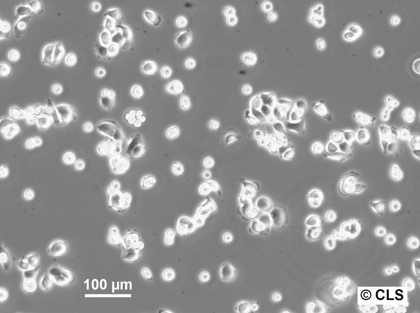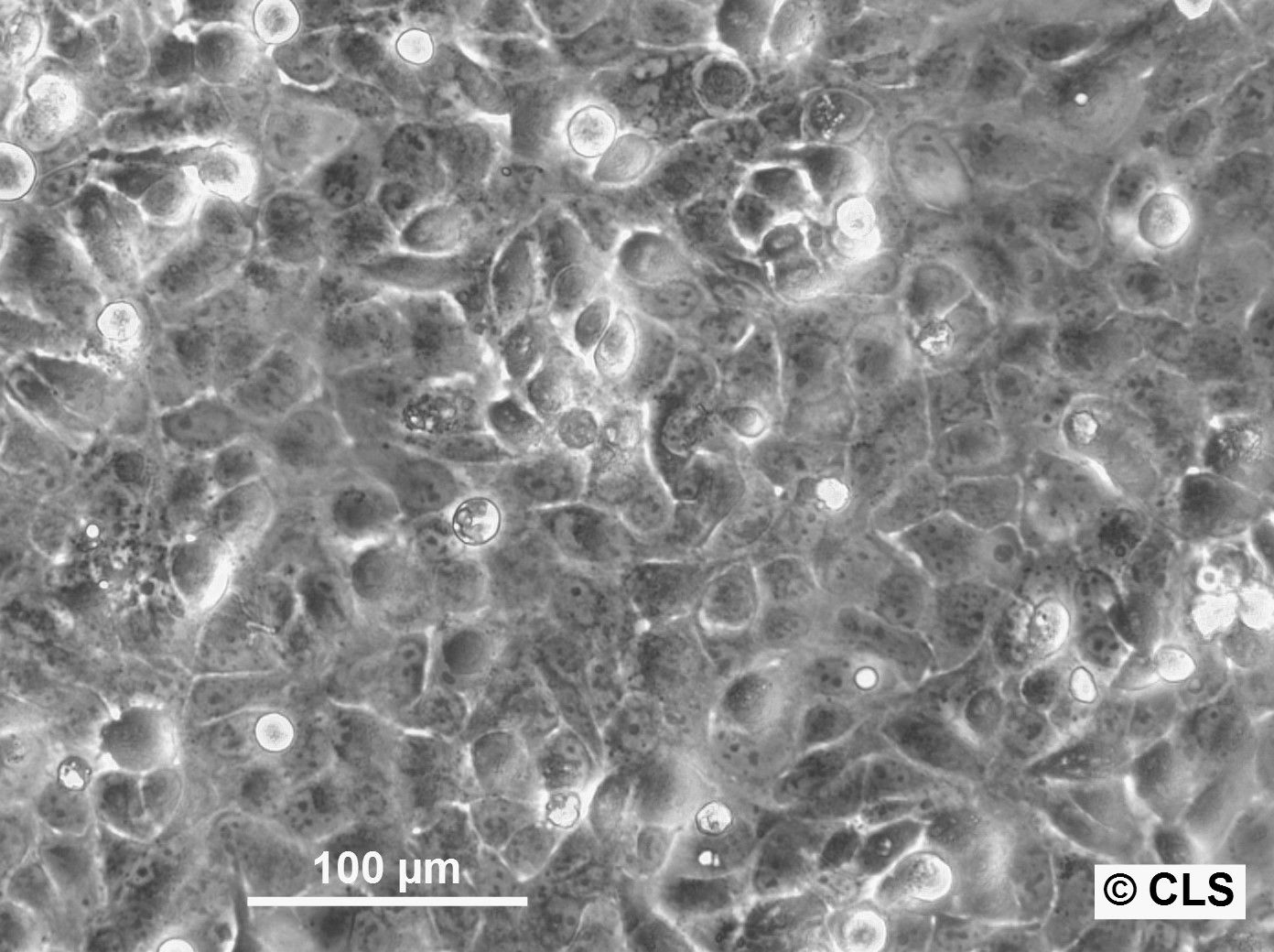Categories: Reproductive system cancer cell lines Description: CaSki is a cell line exhibiting epithelial morphology, isolated from the cervix of a 40-year-old White female patient with epidermoid carcinoma. The establishment of this cell line provides a critical model for the study of cervical cancer, particularly in the context of HPV-mediated oncogenesis. CaSki cells are characterized by their capacity to replicate HPV16 DNA, which is integrated into the host's genome, offering insights into the viral life cycle and its role in malignant transformation. These cells are an essential resource in cancer research, particularly for studies focusing on the pathogenesis of HPV-associated cervical cancer. The presence of high-risk HPV16 in CaSki cells facilitates the exploration of viral oncogene functions, notably the E6 and E7 proteins and their interactions with cellular tumor suppressor pathways, including those involving p53 and pRB. This aspect makes CaSki cells invaluable for evaluating potential therapeutic targets and developing interventions aimed at HPV-induced malignancies. Organism: Human Tissue: Cervix Disease: Carcinoma Metastatic Site: Cervix Synonyms: Ca-Ski, Ca Ski, Caski, CASKI Age: 40 years Gender: Female Ethnicity: Caucasian Morphology: Epithelial-like Cell Type: Epidermoid Growth Properties: Adherent Citation: CaSki (Cytion catalog number 300145) Biosafety Level: 2 Ncbi_ Taxid: 9606.0 Cellosaurus Accession: CVCL_1100 Isoenzymes: G6PD, B Products: beta subunit of hCG, tumor associated antigen Culture Medium: RPMI 1640, w: 2.0 mM stable Glutamine, w: 2.0 g/L NaHCO3 (Cytion article number 820700a) Supplements: Supplement the medium with 10% FBS Dissociation Reagent: Accutase Subculturing: Remove the old medium from the adherent cells and wash them with PBS that lacks calcium and magnesium. For T25 flasks, use 3-5 ml of PBS, and for T75 flasks, use 5-10 ml. Then, cover the cells completely with Accutase, using 1-2 ml for T25 flasks and 2.5 ml for T75 flasks. Let the cells incubate at room temperature for 8-10 minutes to detach them. After incubation, gently mix the cells with 10 ml of medium to resuspend them, then centrifuge at 300xg for 3 minutes. Discard the supernatant, resuspend the cells in fresh medium, and transfer them into new flasks that already contain fresh medium. Seeding Density: 1 x 104 cells/cm2 will result in a confluent monolayer within 3to4 days. Fluid Renewal: 2 to 3 times per week Post Thaw Recovery: After thawing, plate the cells at 5 x 104 cells/cm2 and allow the cells to recover from the freezing process and to adhere for at least 48 hours. Freeze Medium: As a cryopreservation medium, use complete growth medium (including FBS) + 10% DMSO for adequate post-thaw viability, or CM-1 (Cytion catalog number 800100), which includes optimized osmoprotectants and metabolic stabilizers to enhance recovery and reduce cryo-induced stress. Thawing And Culturing Cells: Confirm that the vial remains deeply frozen upon delivery, as cells are shipped on dry ice to maintain optimal temperatures during transit. Upon receipt, either store the cryovial immediately at temperatures below -150°C to ensure the preservation of cellular integrity, or proceed to step 3 if immediate culturing is required. For immediate culturing, swiftly thaw the vial by immersing it in a 37°C water bath with clean water and an antimicrobial agent, agitating gently for 40-60 seconds until a small ice clump remains. Perform all subsequent steps under sterile conditions in a flow hood, disinfecting the cryovial with 70% ethanol before opening. Carefully open the disinfected vial and transfer the cell suspension into a 15 ml centrifuge tube containing 8 ml of room-temperature culture medium, mixing gently. Centrifuge the mixture at 300 x g for 3 minutes to separate the cells and carefully discard the supernatant containing residual freezing medium. Gently resuspend the cell pellet in 10 ml of fresh culture medium. For adherent cells, divide the suspension between two T25 culture flasks, for suspension cultures, transfer all the medium into one T25 flask to promote effective cell interaction and growth. Adhere to established subculture protocols for continued growth and maintenance of the cell line, ensuring reliable experimental outcomes. Sterility: Mycoplasma contamination is excluded using both PCR-based assays and luminescence-based mycoplasma detection methods. To ensure there is no bacterial, fungal, or yeast contamination, cell cultures are subjected to daily visual inspections. Safety Precautions: When planning to store a cryovial in liquid nitrogen for future thawing, it is mandatory to adhere to stringent safety measures. Appropriate protective gloves and clothing are essential, and the use of a face mask or safety goggles is required during the transfer of frozen samples to or from the liquid nitrogen tank. This is to mitigate the risk of injury from potential cryovial explosions upon removal, which can result in the projection of sharp fragments. Warranty: We stand by the promise of delivering products with high cell viability and robust culture performance. To achieve the best results, please make sure you follow the storage and culture instructions detailed in the product information sheet closely. Your adherence to these guidelines is key to success. Subject To Material Transfer Agreements: If you intend to use Cytion cell lines solely for internal research at a single research site, please complete and sign our Material Transfer Agreement (MTA) and submit it along with your order.For any commercial applications - including but not limited to fee-for-service work, quality control testing, product release, diagnostic use, or regulatory studies - please complete the Intended Use Form so we can prepare a suitable agreement tailored to your project.Please note: The MTA applies only to certain cell lines. If this notice and the MTA document appear on a product page, the agreement is appl
