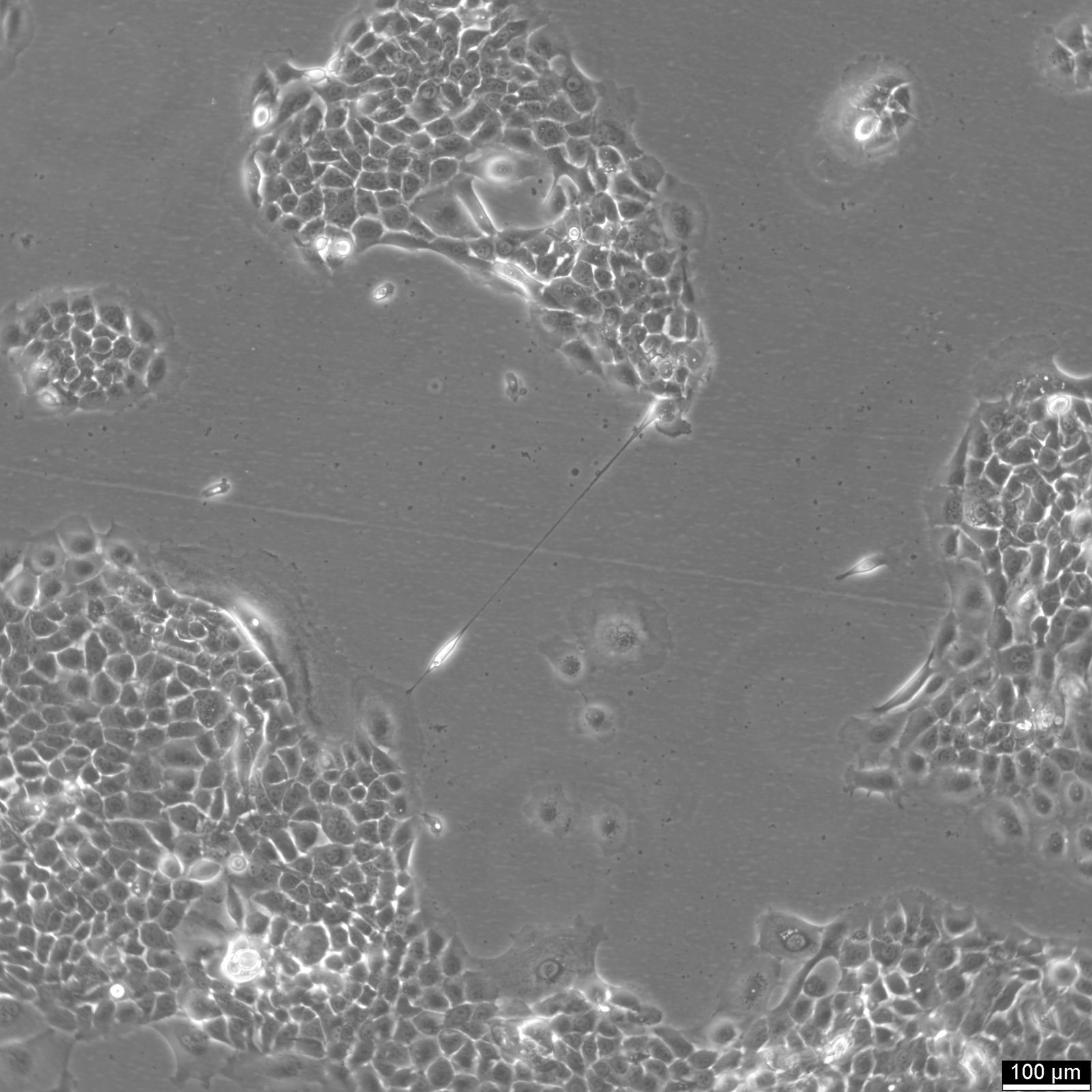 Categories: Head-Neck cancer cell lines Description: CLS-354 cells are a distinct human cell line derived from primary squamous carcinoma of the oral cavity, specifically isolated from a 51-year-old Caucasian male. This cell line, established in 1998, has been a pivotal model in the study of squamous cell carcinoma in the oral region. The cell line's origin from a clinically derived tumor provides it with a genetic and phenotypic composition that closely mimics the in vivo condition, making it particularly useful for studies focused on cancer pathology and therapeutic interventions. Organism: Human Tissue: Oral cavity Disease: Squamous cell carcinoma Synonyms: xF354, xF 354 Age: 51 years Gender: Male Ethnicity: Caucasian Morphology: Epithelial-like Growth Properties: Monolayer, adherent Citation: CLS-354 (Cytion catalog number 300152) Biosafety Level: 1 Ncbi_ Taxid: 9606.0 Cellosaurus Accession: CVCL_5971 Tumorigenic: Yes, in nude mice Reverse Transcriptase: negative Products: keratin Culture Medium: DMEM, w: 4.5 g/L Glucose, w: 4 mM L-Glutamine, w: 3.7 g/L NaHCO3, w: 1.0 mM Sodium pyruvate (Cytion article number 820300a) Supplements: Supplement the medium with 10% FBS Dissociation Reagent: Accutase Subculturing: Remove the old medium from the adherent cells and wash them with PBS that lacks calcium and magnesium. For T25 flasks, use 3-5 ml of PBS, and for T75 flasks, use 5-10 ml. Then, cover the cells completely with Accutase, using 1-2 ml for T25 flasks and 2.5 ml for T75 flasks. Let the cells incubate at room temperature for 8-10 minutes to detach them. After incubation, gently mix the cells with 10 ml of medium to resuspend them, then centrifuge at 300xg for 3 minutes. Discard the supernatant, resuspend the cells in fresh medium, and transfer them into new flasks that already contain fresh medium. Seeding Density: 1 x 104 cells/cm2 will yield in a confluent layer in about 6to7 days Fluid Renewal: Every 2 days Post Thaw Recovery: After thawing, plate the cells at 5 x 104 cells/cm2 and allow the cells to recover from the freezing process and to adhere for at least 24 hours. Freeze Medium: As a cryopreservation medium, use complete growth medium (including FBS) + 10% DMSO for adequate post-thaw viability, or CM-1 (Cytion catalog number 800100), which includes optimized osmoprotectants and metabolic stabilizers to enhance recovery and reduce cryo-induced stress. Thawing And Culturing Cells: Confirm that the vial remains deeply frozen upon delivery, as cells are shipped on dry ice to maintain optimal temperatures during transit. Upon receipt, either store the cryovial immediately at temperatures below -150°C to ensure the preservation of cellular integrity, or proceed to step 3 if immediate culturing is required. For immediate culturing, swiftly thaw the vial by immersing it in a 37°C water bath with clean water and an antimicrobial agent, agitating gently for 40-60 seconds until a small ice clump remains. Perform all subsequent steps under sterile conditions in a flow hood, disinfecting the cryovial with 70% ethanol before opening. Carefully open the disinfected vial and transfer the cell suspension into a 15 ml centrifuge tube containing 8 ml of room-temperature culture medium, mixing gently. Centrifuge the mixture at 300 x g for 3 minutes to separate the cells and carefully discard the supernatant containing residual freezing medium. Gently resuspend the cell pellet in 10 ml of fresh culture medium. For adherent cells, divide the suspension between two T25 culture flasks, for suspension cultures, transfer all the medium into one T25 flask to promote effective cell interaction and growth. Adhere to established subculture protocols for continued growth and maintenance of the cell line, ensuring reliable experimental outcomes. Sterility: Mycoplasma contamination is excluded using both PCR-based assays and luminescence-based mycoplasma detection methods. To ensure there is no bacterial, fungal, or yeast contamination, cell cultures are subjected to daily visual inspections. Safety Precautions: When planning to store a cryovial in liquid nitrogen for future thawing, it is mandatory to adhere to stringent safety measures. Appropriate protective gloves and clothing are essential, and the use of a face mask or safety goggles is required during the transfer of frozen samples to or from the liquid nitrogen tank. This is to mitigate the risk of injury from potential cryovial explosions upon removal, which can result in the projection of sharp fragments. Warranty: We stand by the promise of delivering products with high cell viability and robust culture performance. To achieve the best results, please make sure you follow the storage and culture instructions detailed in the product information sheet closely. Your adherence to these guidelines is key to success. Subject To Material Transfer Agreements: If you intend to use Cytion cell lines solely for internal research at a single research site, please complete and sign our Material Transfer Agreement (MTA) and submit it along with your order.For any commercial applications - including but not limited to fee-for-service work, quality control testing, product release, diagnostic use, or regulatory studies - please complete the Intended Use Form so we can prepare a suitable agreement tailored to your project.Please note: The MTA applies only to certain cell lines. If this notice and the MTA document appear on a product page, the agreement is applicable. For cell lines not covered by the MTA, no reference to the agreement will be shown. The MTA is not valid for customers in the Americas, China, or Taiwan. Please contact our U.S. entity to receive the appropriate agreement. Required Product 1: 820300a Required Product 3: 860015.0 Required Product 4: 830100.0