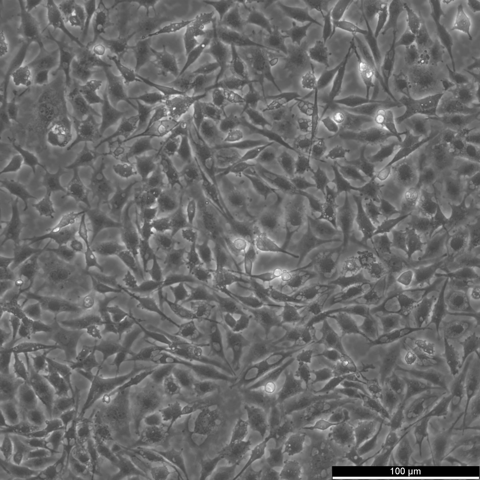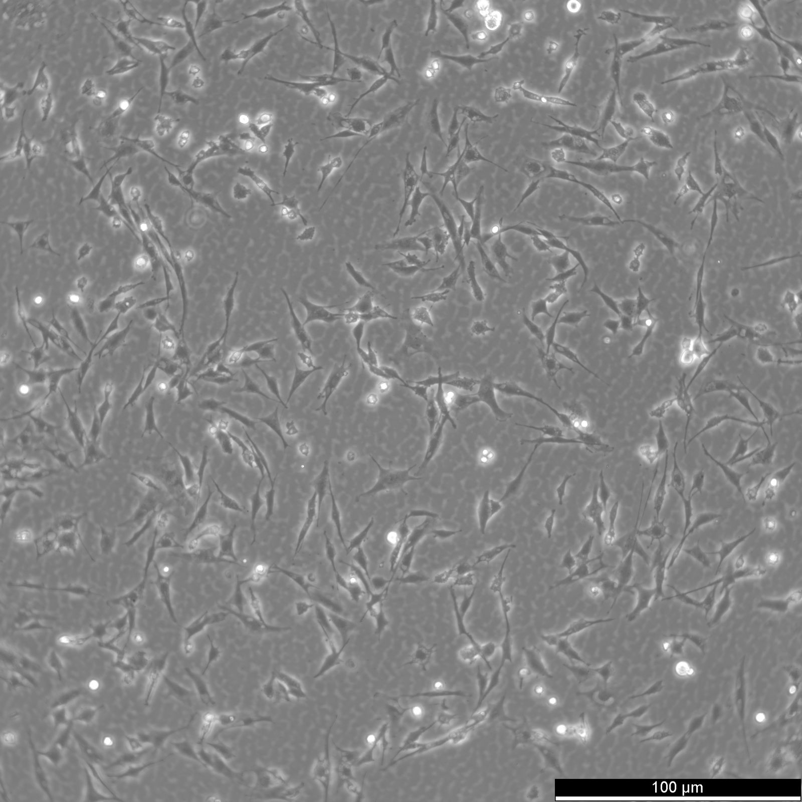 Categories: Avian cell lines Description: DF-1 cells are a continuous cell line derived from chicken embryonic fibroblasts, specifically from East Lansing Line (ELL-0) chickens. The cell line is noted for its lack of endogenous avian leukosis virus, which is a common contaminant in many other chicken cell lines. This characteristic makes DF-1 cells particularly valuable for virology research, especially in studies involving the propagation and genetic manipulation of viruses that infect birds, such as avian influenza and Marek's disease virus. In addition to their use in virology, DF-1 cells are utilized in various areas of cellular and molecular biology research. They have a robust growth rate and a fibroblast-like morphology, making them suitable for in vitro experiments that require a stable avian cell environment. These cells have been instrumental in gene expression studies, especially concerning the effects of viral and other genetic elements in avian species. The genetic stability and susceptibility to transfection also make DF-1 an excellent model for studying gene function and regulation in a controlled environment. Organism: Chicken Tissue: Embryo Synonyms: DF1, UMNSAH-DF-1, UMNSAH-DF 1, UMNSAH-DF1, UMNSAH/DF1, UMNSAH/DF#1, Douglas Foster-1, UMNSAH/DF-1 Age: 10 days gestation Morphology: Fibroblast Growth Properties: Adherent Citation: DF-1 (Cytion catalog number 305016) Biosafety Level: 1 Ncbi_ Taxid: 9031.0 Cellosaurus Accession: CVCL_0570 Tumorigenic: No Culture Medium: DMEM, w: 4.5 g/L Glucose, w: 4 mM L-Glutamine, w: 3.7 g/L NaHCO3, w: 1.0 mM Sodium pyruvate (Cytion article number 820300a) Supplements: Supplement the medium with 10% FBS Dissociation Reagent: Accutase Subculturing: Remove the old medium from the adherent cells and wash them with PBS that lacks calcium and magnesium. For T25 flasks, use 3-5 ml of PBS, and for T75 flasks, use 5-10 ml. Then, cover the cells completely with Accutase, using 1-2 ml for T25 flasks and 2.5 ml for T75 flasks. Let the cells incubate at room temperature for 8-10 minutes to detach them. After incubation, gently mix the cells with 10 ml of medium to resuspend them, then centrifuge at 300xg for 3 minutes. Discard the supernatant, resuspend the cells in fresh medium, and transfer them into new flasks that already contain fresh medium. Fluid Renewal: 2 to 3 times per week Freeze Medium: As a cryopreservation medium, use complete growth medium (including FBS) + 10% DMSO for adequate post-thaw viability, or CM-1 (Cytion catalog number 800100), which includes optimized osmoprotectants and metabolic stabilizers to enhance recovery and reduce cryo-induced stress. Thawing And Culturing Cells: Confirm that the vial remains deeply frozen upon delivery, as cells are shipped on dry ice to maintain optimal temperatures during transit. Upon receipt, either store the cryovial immediately at temperatures below -150°C to ensure the preservation of cellular integrity, or proceed to step 3 if immediate culturing is required. For immediate culturing, swiftly thaw the vial by immersing it in a 37°C water bath with clean water and an antimicrobial agent, agitating gently for 40-60 seconds until a small ice clump remains. Perform all subsequent steps under sterile conditions in a flow hood, disinfecting the cryovial with 70% ethanol before opening. Carefully open the disinfected vial and transfer the cell suspension into a 15 ml centrifuge tube containing 8 ml of room-temperature culture medium, mixing gently. Centrifuge the mixture at 300 x g for 3 minutes to separate the cells and carefully discard the supernatant containing residual freezing medium. Gently resuspend the cell pellet in 10 ml of fresh culture medium. For adherent cells, divide the suspension between two T25 culture flasks, for suspension cultures, transfer all the medium into one T25 flask to promote effective cell interaction and growth. Adhere to established subculture protocols for continued growth and maintenance of the cell line, ensuring reliable experimental outcomes. Sterility: Mycoplasma contamination is excluded using both PCR-based assays and luminescence-based mycoplasma detection methods. To ensure there is no bacterial, fungal, or yeast contamination, cell cultures are subjected to daily visual inspections. Safety Precautions: When planning to store a cryovial in liquid nitrogen for future thawing, it is mandatory to adhere to stringent safety measures. Appropriate protective gloves and clothing are essential, and the use of a face mask or safety goggles is required during the transfer of frozen samples to or from the liquid nitrogen tank. This is to mitigate the risk of injury from potential cryovial explosions upon removal, which can result in the projection of sharp fragments. Warranty: We stand by the promise of delivering products with high cell viability and robust culture performance. To achieve the best results, please make sure you follow the storage and culture instructions detailed in the product information sheet closely. Your adherence to these guidelines is key to success. Subject To Material Transfer Agreements: If you intend to use Cytion cell lines solely for internal research at a single research site, please complete and sign our Material Transfer Agreement (MTA) and submit it along with your order.For any commercial applications - including but not limited to fee-for-service work, quality control testing, product release, diagnostic use, or regulatory studies - please complete the Intended Use Form so we can prepare a suitable agreement tailored to your project.Please note: The MTA applies only to certain cell lines. If this notice and the MTA document appear on a product page, the agreement is applicable. For cell lines not covered by the MTA, no reference to the agreement will be shown. The MTA is not valid for customers in the Americas, China, or Taiwan. Please contact our U.S. entity to receive the appropriate agreement. Required Product 1: 820300a Requ