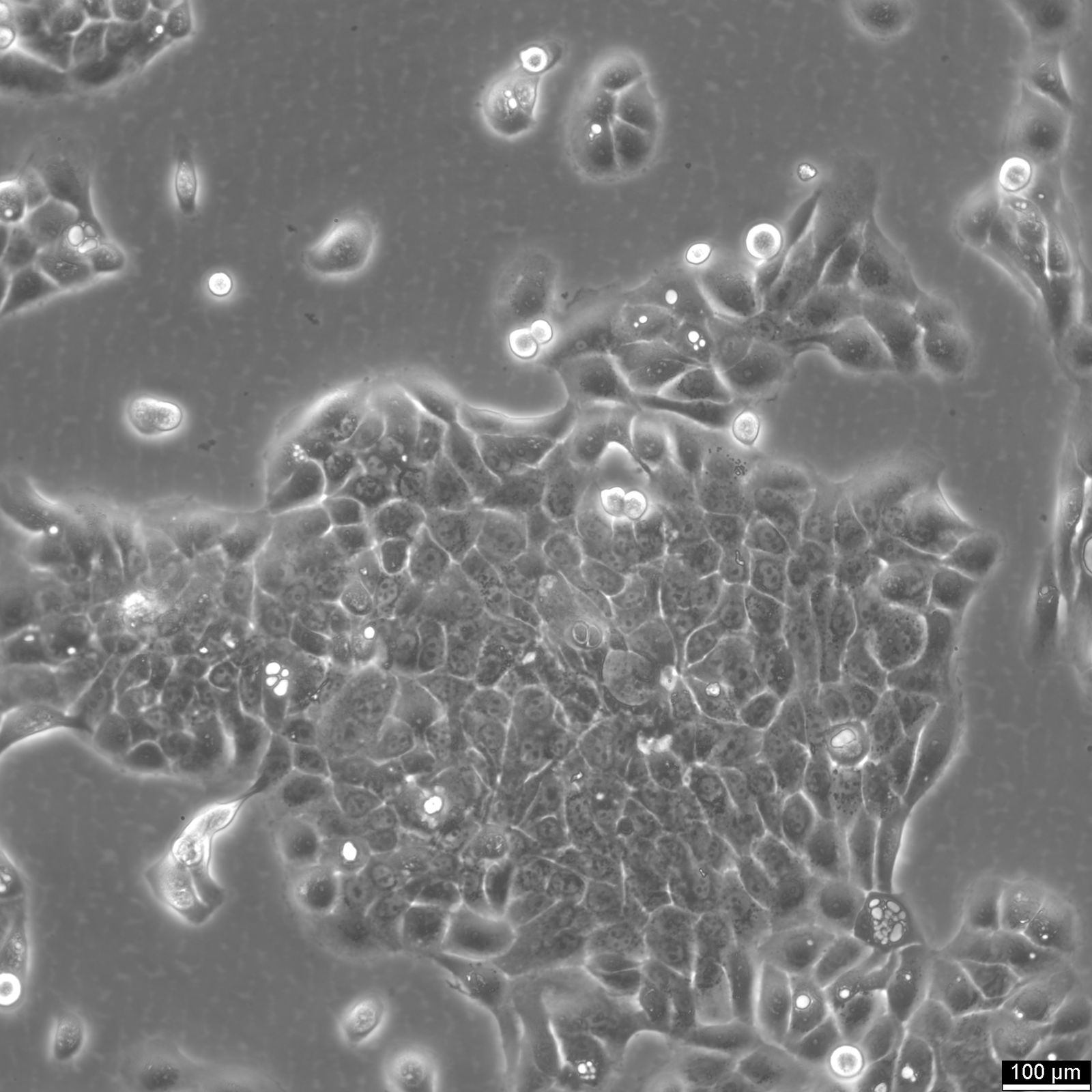 Categories: HaCaT cell lines Description: HaCaT cells are a pivotal model in dermatological research, offering insights into the complex mechanisms of skin biology and pathology. The spontaneously immortalized HaCaT cell line is derived from adult human epidermal cells and retains the capacity to proliferate and undergo differentiation, similar to basal keratinocytes in vivo. HaCaT cells serve as a robust platform for investigating the epidermal differentiation process and studying the epidermal differentiation markers essential for maintaining skin integrity. The susceptibility of HaCaT cells to apoptosis and their sensitivity to apoptosis-inducing agents are extensively studied, particularly in the context of cytotoxic agents like RIPL. Researchers assess these agents' cytotoxicities and the extent of cytotoxicity using HaCaT cells, utilizing techniques such as fluorescence microscopy to visualize cellular changes. Researchers have leveraged HaCaT cells to examine the effects of various agents, including antimicrobial substrates and their influence on cell viability. These cells are an excellent substrate for testing antimicrobial biomaterials and antimicrobial atelocollagen substrates, crucial for skin repair and medical applications. The HaCaT epidermal line also plays a crucial role in studying cellular senescence, cytokines, and gene expression profiles related to aging and chronic diseases. The transcriptional profiles of HaCaT cells, including the role of kappaB and microRNAs, provide insight into the regulatory mechanisms at the molecular level. The HaCaT keratinocyte line, with their characteristics as epidermal keratinocytes, offers a tractable system for dissecting the intricate interplay between epidermal cells and the immune system, specifically the role of keratinocytes in disease states. They enable the exploration of epigenetic modifications and their influence on the differentiation of keratinocytes, including the formation of the cornified envelope, a key feature in the skin's barrier function. In summary, HaCaT cells are an indispensable model in dermatological research, facilitating a deeper understanding of skin biology and pathology through their resemblance to basal keratinocytes and their ability to undergo cell growth and differentiation. Their application spans from studying epidermal differentiation and antimicrobial effects to exploring cellular responses such as apoptosis, making them a cornerstone in cell biology and biomedical research. Organism: Human Tissue: Skin Age: 62 years Gender: Male Ethnicity: Caucasian Cell Type: Keratinocytes with a diameter of 20-25 micrometer. Growth Properties: Adherent Citation: HaCaT (Cytion catalog number 300493) Biosafety Level: 1 Ncbi_ Taxid: 9606.0 Cellosaurus Accession: CVCL_0038 Tumorigenic: No Karyotype: Aneuploid (hypotetraploid) Culture Medium: DMEM, w: 4.5 g/L Glucose, w: 4 mM L-Glutamine, w: 3.7 g/L NaHCO3, w: 1.0 mM Sodium pyruvate (Cytion article number 820300a) Supplements: Supplement the medium with 10% FBS Dissociation Reagent: The 1:1 mixture of EDTA (stock. 0.05%) and trypsin (stock: 0.1%) must be prepared each time ahead of detaching the cells using PBS without Ca2+ and Mg2+ to provide a physiologic osmolarity. Ready-to-use mixtures of trypsin/EDTA are not recommended, as this may result in cell clumps. As an alternative, TrypLE Express (Life Technologies) instead of trypsin/EDTA can be used. The protocol of the manufacturer should be followed. Doubling Time: The doubling time of HaCaT cells is 28 hours. Subculturing: Discard Old Medium: Carefully remove the old culture medium from the flasks. Wash Cells: Add 3-5 ml of phosphate-buffered saline (PBS) without calcium and magnesium to T25 flasks, or 5-10 ml to T75 flasks, to rinse the adherent cells. Add EDTA Solution: Cover the cell layer entirely with a freshly prepared 0.05% EDTA solution. Use 1-2 ml for T25 flasks and 2.5 ml for T75 flasks. Incubate: Incubate the flasks at 37°C for 10 minutes. Add Trypsin/EDTA or TrypLE Express Solution: After incubation, add a freshly prepared trypsin/EDTA solution (0.05% trypsin, 0.025% EDTA) or TrypLE Express to the flasks, ensuring the cell layer is fully covered. Use 1 ml for T25 flasks and 2.5 ml for T75 flasks. (Note: Steps 3 and 4 can be omitted if using TrypLE Express.) Monitor Detachment: Observe the cells under a microscope. The cells should detach within 1-5 minutes. Neutralize Trypsin: Add cell culture medium containing fetal bovine serum (FBS) to neutralize the trypsin activity as soon as the cells have detached. Transfer Cells: Dispense the cell suspension into new flasks pre-filled with fresh culture medium. Seeding Density: 1 x 104 cells/cm2 Fluid Renewal: 2 times per week Freeze Medium: As a cryopreservation medium, use complete growth medium (including FBS) + 10% DMSO for adequate post-thaw viability, or CM-1 (Cytion catalog number 800100), which includes optimized osmoprotectants and metabolic stabilizers to enhance recovery and reduce cryo-induced stress. Thawing And Culturing Cells: Confirm that the vial remains deeply frozen upon delivery, as cells are shipped on dry ice to maintain optimal temperatures during transit. Upon receipt, either store the cryovial immediately at temperatures below -150°C to ensure the preservation of cellular integrity, or proceed to step 3 if immediate culturing is required. For immediate culturing, swiftly thaw the vial by immersing it in a 37°C water bath with clean water and an antimicrobial agent, agitating gently for 40-60 seconds until a small ice clump remains. Perform all subsequent steps under sterile conditions in a flow hood, disinfecting the cryovial with 70% ethanol before opening. Carefully open the disinfected vial and transfer the cell suspension into a 15 ml centrifuge tube containing 8 ml of room-temperature culture medium, mixing gently. Centrifuge the mixture at 300 x g for 3 minutes to separate the cells and carefully discard the supernatant con