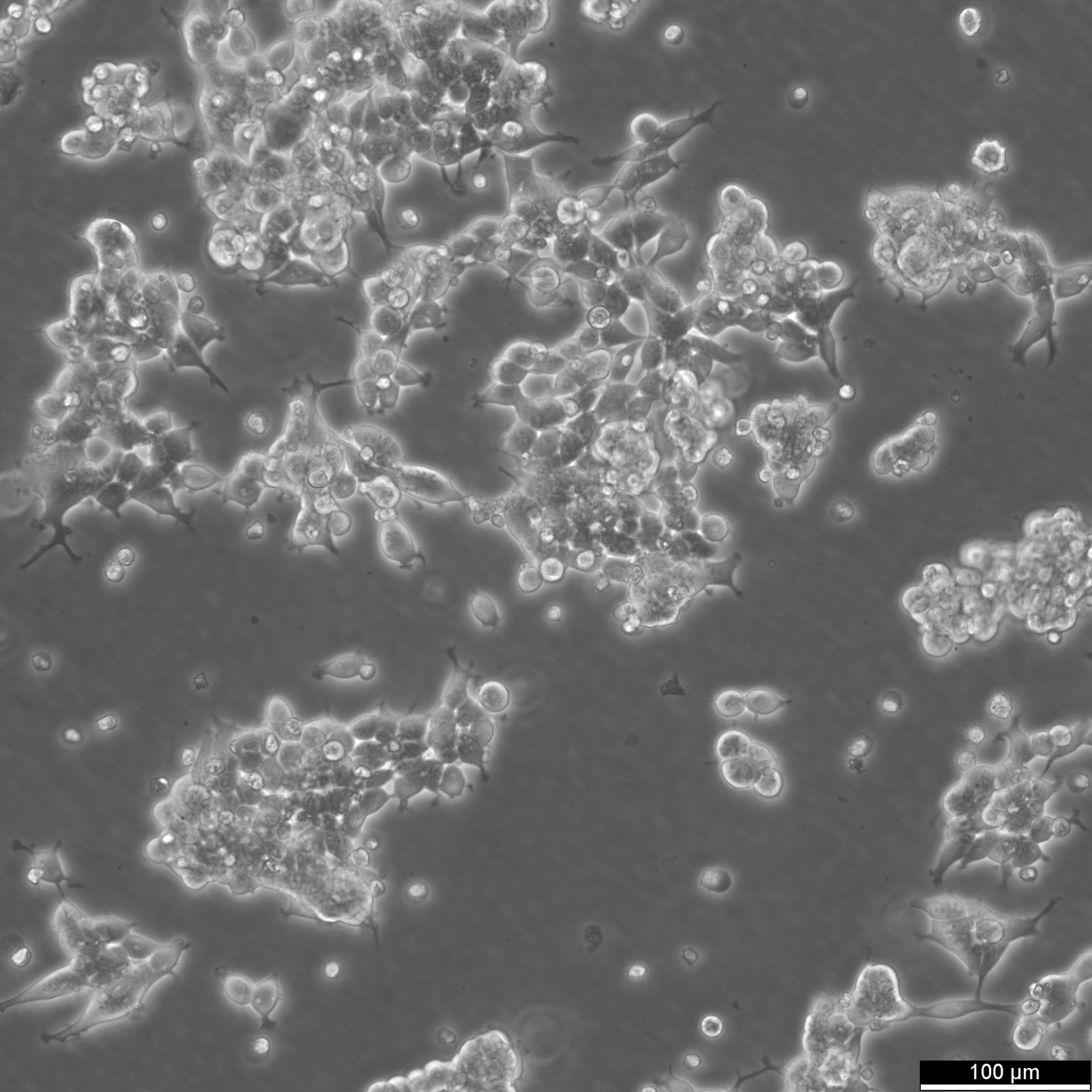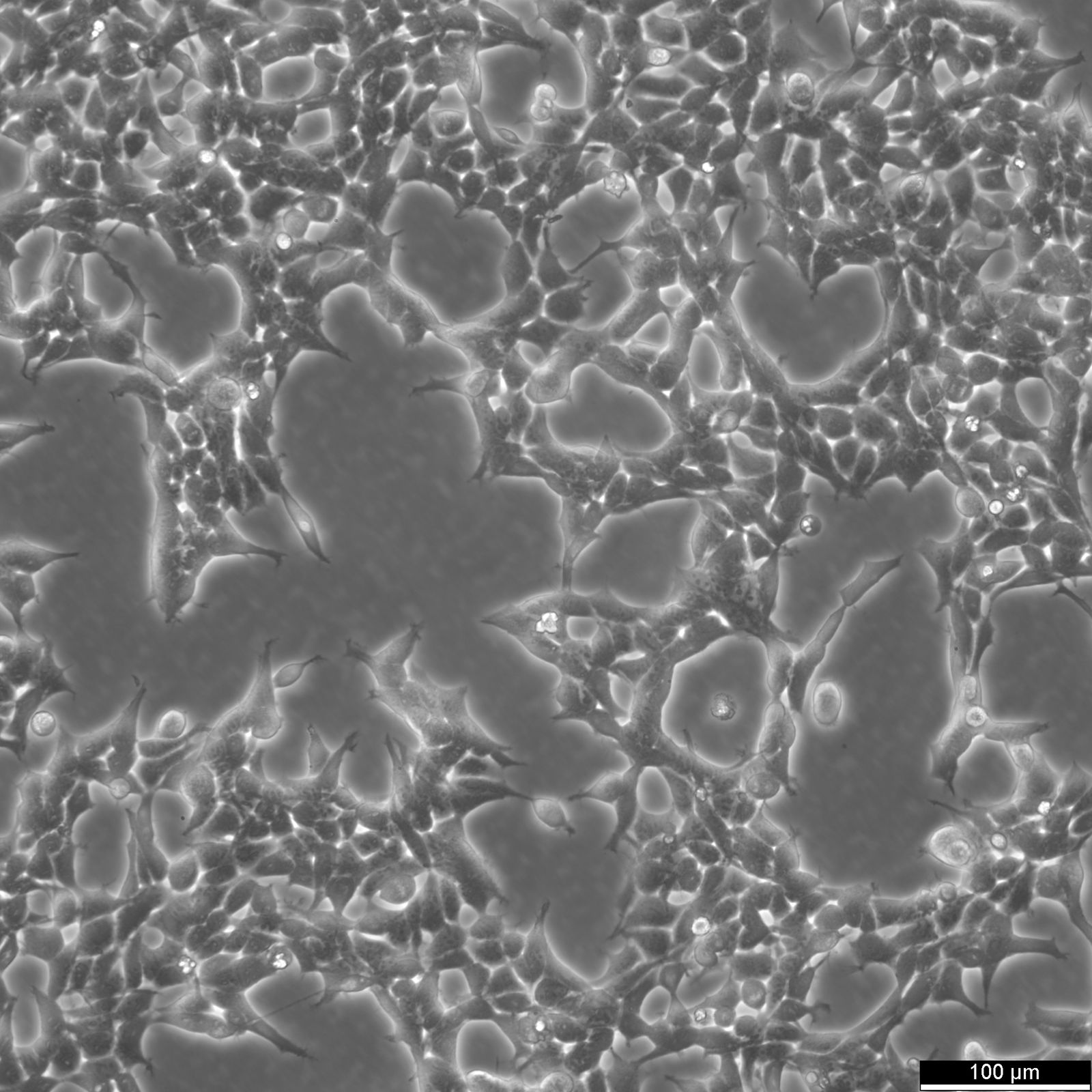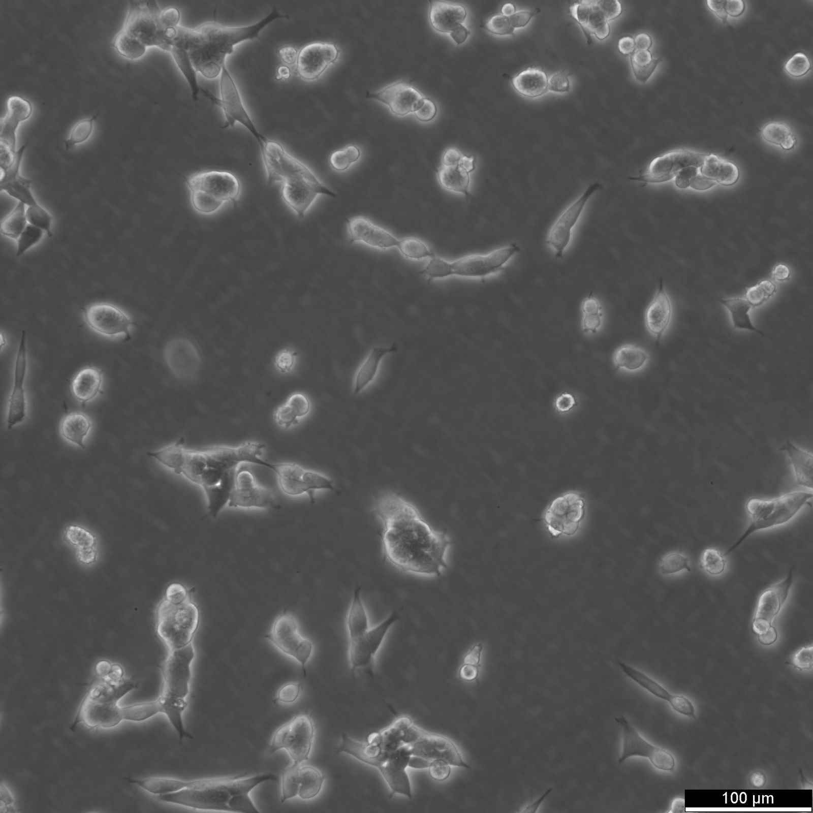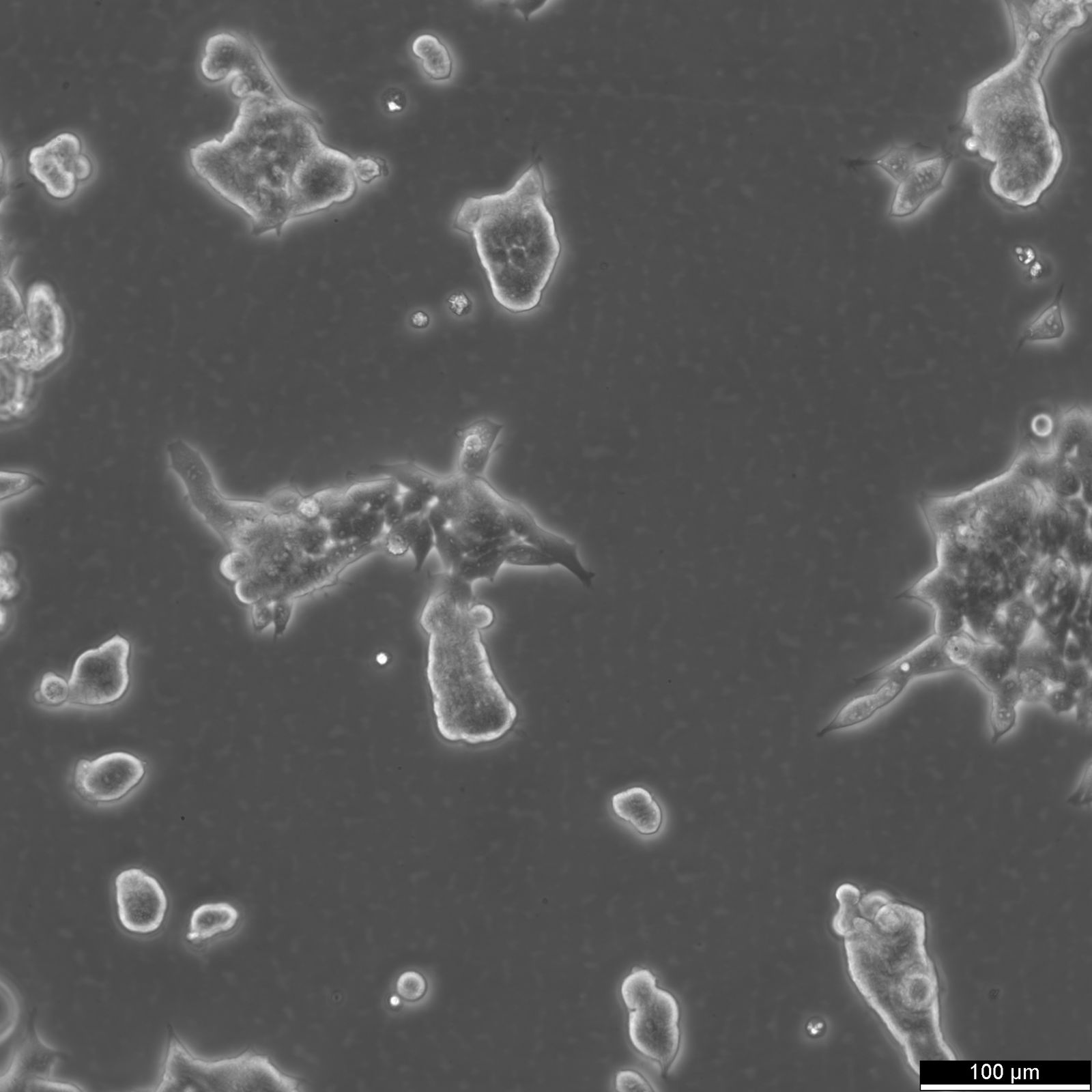 Categories: Transformed cell lines Description: The HEK293 cell line, an immortalized epithelial cell line derived from human embryonic kidney cells in the 1970s by Alex van der Eb at the University of Utrecht, has become a pivotal experimental model in molecular biology and biotechnological applications due to its remarkable versatility and ease of genetic manipulation. The transformation of the HEK293 cell line involved the integration of a specific segment from Adenovirus 5 DNA, embedding the adenoviral E1A and E1B genes within the cellular genome. The adenoviral DNA modification enabled the cell lines' ability to uptake foreign DNA efficiently, a feature known as high transfection efficiency. The integration of viral DNA into the HEK293 cell genome resulted in cellular immortalization and significantly enhanced the utility of these cells in biotechnological applications by facilitating the stable incorporation and expression of exogenous DNA, a process termed stable transfection. This capability allows for the persistent presence and function of foreign genes within the cells, making HEK293 an invaluable tool for genetic studies and biotechnology. As a result, HEK293 cells have become a fundamental resource in biotechnology for the production of recombinant proteins, including vital therapeutic proteins, and serving as robust host cells for the generation of viral vectors, particularly adenoviral and lentiviral vectors. HEK 293 cells are pivotal in the pharmaceutical industry for high-throughput screening assays, the manufacture of gene therapies targeting specific genes related to single gene disorders, and adenoviral infection studies. In industrial biotechnology, the utility of the human cell line HEK293 extends to recombinant enzyme production, viral vector production, such as adenoviral vectors, protein production and the development of biosensors. Toxicology research benefits from the application of the HEK cell line in assessing the impacts of chemicals on cell biology, including the effects on typical kidney cells and the potential for gene therapies. The ability of the immortal cell line HEK293 to efficiently produce native proteins highlights their essential role in medical research, including cancer research and exploring the foundations of gene therapy. HEK293 cells offer a unique platform for studying cell biology and proteins of interest, surpassing other cell lines in versatility and utility in both research and industrial applications. In comparison, HEK293T cells, a variant of HEK293, are modified to enhance transfection efficiency, HEK293F cells are adapted for suspension culture to facilitate large-scale protein production, and other mammalian cell lines such as Vero cells, derived from monkey kidney tissue, are primarily utilized in vaccine development and viral studies. Organism: Human Tissue: Kidney Synonyms: Hek293, HEK-293, HEK/293, HEK 293, HEK,293, 293, 293 HEK, 293 Ad5, Human Embryonic Kidney 293 Age: Fetus Gender: Female Morphology: Epithelial-like Growth Properties: Monolayer, adherent Citation: HEK293 (Cytion catalog number 300192) Biosafety Level: 1 Ncbi_ Taxid: 9606.0 Cellosaurus Accession: CVCL_0045 Receptors Expressed: Vitronectin Protein Expression: CEA negative, p53 positive Tumorigenic: In nude mice Virus Susceptibility: transformed with adenovirus 5 DNA adenovirus 5 DNA Ploidy Status: 30% of HEK293 cells have hypotriploid karyotypes with 64 modal chromosomes. Higher ploidies were found in 4.2% of cells. Culture Medium: EMEM (MEM Eagle), w: 2 mM L-Glutamine, w: 2.2 g/L NaHCO3, w: EBSS (Cytion article number 820100a) Supplements: Supplement the medium with 10% FBS and 1% NEAA Dissociation Reagent: Accutase Doubling Time: 30 hours Subculturing: Remove the old medium from the adherent cells and wash them with PBS that lacks calcium and magnesium. For T25 flasks, use 3-5 ml of PBS, and for T75 flasks, use 5-10 ml. Then, cover the cells completely with Accutase, using 1-2 ml for T25 flasks and 2.5 ml for T75 flasks. Let the cells incubate at room temperature for 8-10 minutes to detach them. After incubation, gently mix the cells with 10 ml of medium to resuspend them, then centrifuge at 300xg for 3 minutes. Discard the supernatant, resuspend the cells in fresh medium, and transfer them into new flasks that already contain fresh medium. Seeding Density: 1 x 104 cells/cm2 will yield in a confluent layer in about 4 days. Fluid Renewal: 2 times per week Post Thaw Recovery: After thawing, plate the cells at 5 x 104 cells/cm2 and allow the cells to recover from the freezing process and to adhere for at least 24 hours. Freeze Medium: As a cryopreservation medium, use complete growth medium (including FBS) + 10% DMSO for adequate post-thaw viability, or CM-1 (Cytion catalog number 800100), which includes optimized osmoprotectants and metabolic stabilizers to enhance recovery and reduce cryo-induced stress. Thawing And Culturing Cells: Confirm that the vial remains deeply frozen upon delivery, as cells are shipped on dry ice to maintain optimal temperatures during transit. Upon receipt, either store the cryovial immediately at temperatures below -150°C to ensure the preservation of cellular integrity, or proceed to step 3 if immediate culturing is required. For immediate culturing, swiftly thaw the vial by immersing it in a 37°C water bath with clean water and an antimicrobial agent, agitating gently for 40-60 seconds until a small ice clump remains. Perform all subsequent steps under sterile conditions in a flow hood, disinfecting the cryovial with 70% ethanol before opening. Carefully open the disinfected vial and transfer the cell suspension into a 15 ml centrifuge tube containing 8 ml of room-temperature culture medium, mixing gently. Centrifuge the mixture at 300 x g for 3 minutes to separate the cells and carefully discard the supernatant containing residual freezing medium. Gently resuspend the cell pellet in 10 ml of fresh culture medium. For adherent