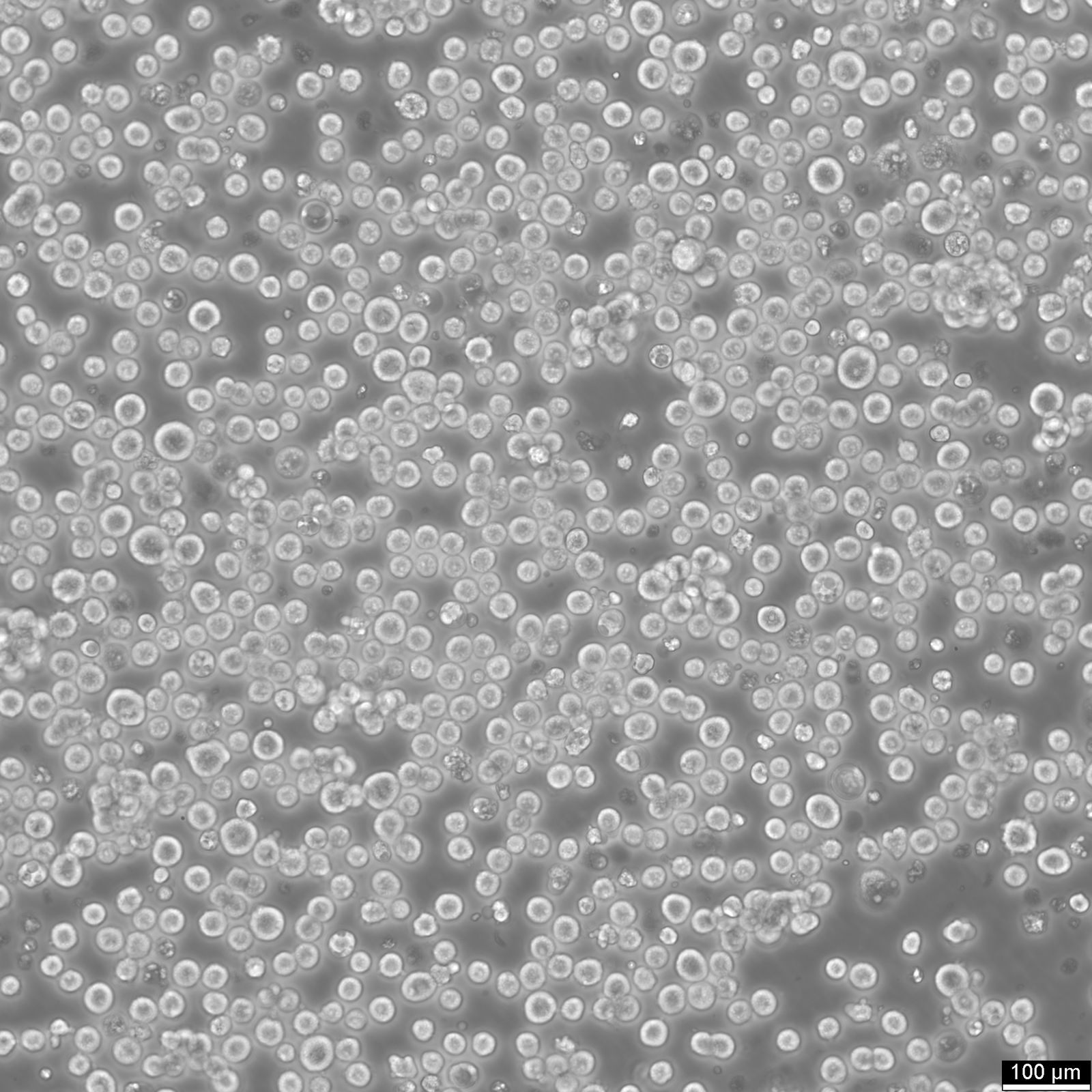 Categories: Kidney cancer cell lines , Transformed cell lines Description: The HEK293 suspension-adapted cell line is a variant of the human embryonic kidney 293 (HEK293) cells that has been modified to grow in suspension culture rather than adherent culture. This adaptation is significant for industrial applications where large-scale protein production is required. The cells maintain many of the characteristics of the original HEK293 line, including a robust transient transfection efficiency and the ability to post-translationally modify expressed proteins in a manner similar to that of native human cells. These cells are particularly valued in the biotechnology and pharmaceutical industries for the production of recombinant proteins and viruses for gene therapy and vaccine development. The adaptation to suspension culture allows for easier scalability and simplifies the harvesting process, making it more suitable for commercial-scale bioprocessing. The HEK293 suspension-adapted cell line supports various viral production systems, including adenovirus, lentivirus, and adeno-associated virus (AAV), which are pivotal in therapeutic applications and research. Overall, the HEK293 suspension-adapted cell line is a crucial tool in the fields of molecular biology and bioprocessing, providing a versatile platform for the production of various biologically active molecules. Its ease of genetic manipulation and ability to produce proteins that are correctly folded and post-translationally modified according to human cell patterns make it an indispensable resource in many advanced therapeutic and research settings. Organism: Human Tissue: Kidney Age: Fetus Gender: Female Morphology: round Growth Properties: Suspension Citation: HEK293 suspension-adapted (Cytion catalog number 300686) Biosafety Level: 1 Ncbi_ Taxid: 9606.0 Cellosaurus Accession: CVCL_0045 Receptors Expressed: Vitronectin Protein Expression: CEA negative, p53 positive Tumorigenic: In nude mice Virus Susceptibility: transformed with adenovirus 5 DNA adenovirus 5 DNA Culture Medium: Panserin 293S (PanBiotech, Germany) Supplements: No supplements required Dissociation Reagent: Not required Subculturing: Maintain the suspension cells at cell densities between 5 x 105 and 2-3 x 106 cells/ml in Eppendorf cell culture flasks on a shaker inside an incubator at 37°C/5% CO2. Subculture once the cell density has reached 2-3 x 106 cells/ml. Carefully dislodge the cells to avoid cluster. Seeding Density: 5 x 105 cells/ml Post Thaw Recovery: Initiate cultures at a density of 5 x 105 cells/ml and keep the cell concentration up to 2-3 x 106 cells/ml for optimal growth. Incubate at 37°C/5% CO2 on a cell shaker at 100-150 rpm. Freeze Medium: As a cryopreservation medium, use complete growth medium + 10% DMSO for adequate post-thaw viability. Thawing And Culturing Cells: Confirm that the vial remains deeply frozen upon delivery, as cells are shipped on dry ice to maintain optimal temperatures during transit. Upon receipt, either store the cryovial immediately at temperatures below -150°C to ensure the preservation of cellular integrity, or proceed to step 3 if immediate culturing is required. For immediate culturing, swiftly thaw the vial by immersing it in a 37°C water bath with clean water and an antimicrobial agent, agitating gently for 40-60 seconds until a small ice clump remains. Perform all subsequent steps under sterile conditions in a flow hood, disinfecting the cryovial with 70% ethanol before opening. Carefully open the disinfected vial and transfer the cell suspension into a 15 ml centrifuge tube containing 8 ml of room-temperature culture medium, mixing gently. Centrifuge the mixture at 200 x g for 5 minutes, carefully discard the supernatant containing freezing medium. Follow the procedure described under Post-Thaw Recovery Sterility: Mycoplasma contamination is excluded using both PCR-based assays and luminescence-based mycoplasma detection methods. To ensure there is no bacterial, fungal, or yeast contamination, cell cultures are subjected to daily visual inspections. Safety Precautions: When planning to store a cryovial in liquid nitrogen for future thawing, it is mandatory to adhere to stringent safety measures. Appropriate protective gloves and clothing are essential, and the use of a face mask or safety goggles is required during the transfer of frozen samples to or from the liquid nitrogen tank. This is to mitigate the risk of injury from potential cryovial explosions upon removal, which can result in the projection of sharp fragments. Warranty: We stand by the promise of delivering products with high cell viability and robust culture performance. To achieve the best results, please make sure you follow the storage and culture instructions detailed in the product information sheet closely. Your adherence to these guidelines is key to success. Freezing Procedure: Once the cell density of 1-2 x 106 cells/ml is achieved, collect the cells by ccentrifuging at 200xg for 5 min and discard the supernatant. Dilute in an appropriate volume of fresh, prewarmed culture medium and count the cells to get information on the viability and number of cells. Collect the cells by ccentrifuging at 200xg for 5 min and discard the supernatant. Resuspend the cells in the appropriate volume of freeze medium and count once more. The cell viability should be >>80%, a cell density of 5-10 million cells/ml is recommended. Pipette the cells into pre-labeled cryovials. Use either CoolCell freezing container or a controlled rate freezer to ensure a cooling rate of 1°C/min. Subject To Material Transfer Agreements: If you intend to use Cytion cell lines solely for internal research at a single research site, please complete and sign our Material Transfer Agreement (MTA) and submit it along with your order.For any commercial applications - including but not limited to fee-for-service work, quality control testing, product release, diagnostic use, or regulator