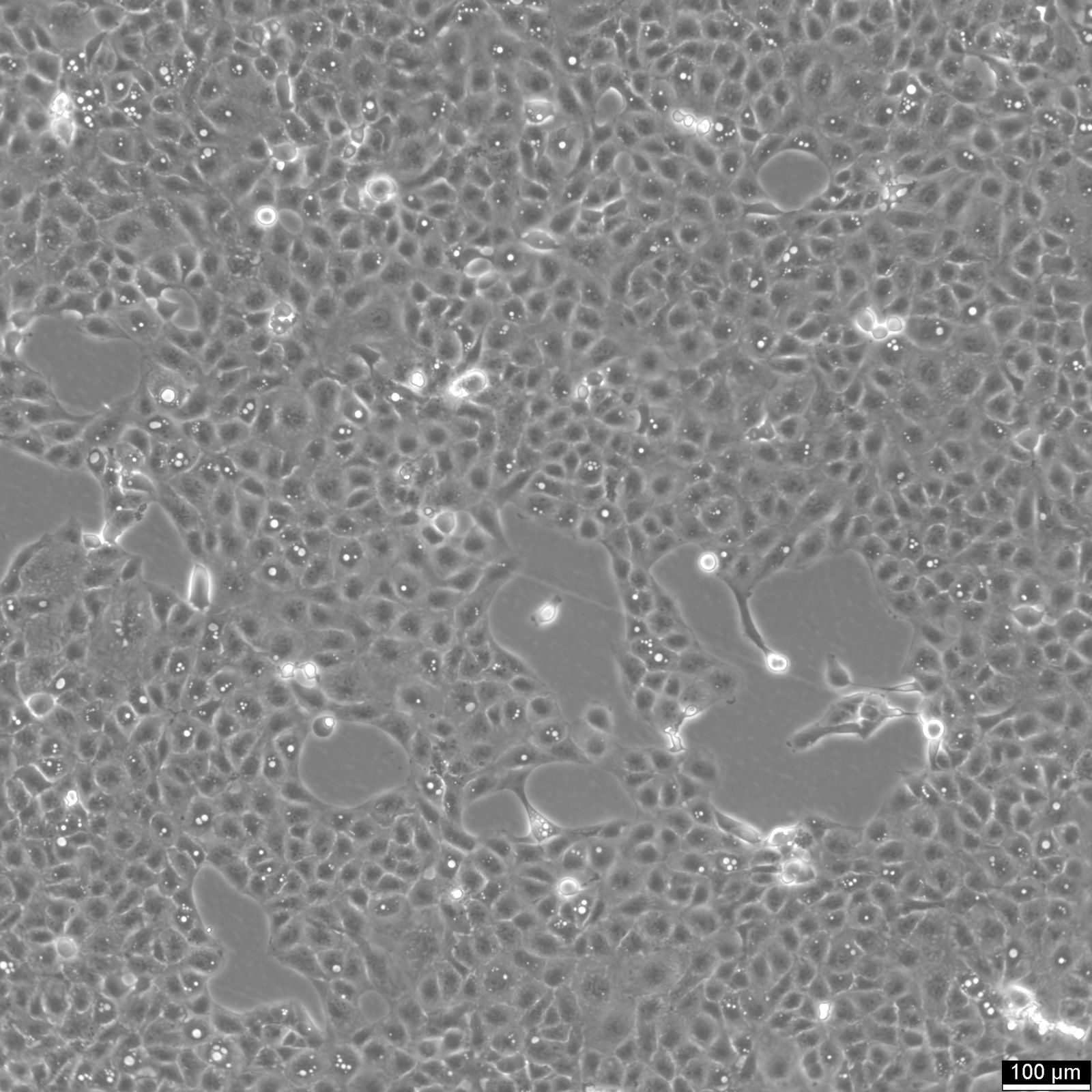 Categories: Human cells , Transformed cell lines Description: The HK-2 cell line is a well-characterized human proximal tubular epithelial cell line derived from normal adult kidney tissue. These cells exhibit typical epithelial morphology and retain many of the biochemical and functional properties of proximal tubular cells, making them a valuable model for studying renal physiology and pathophysiology. HK-2 cells are known for their ability to perform active transport and exhibit brush border enzyme activities, which are essential for their role in renal reabsorption processes. HK-2 cells express a range of transporters and receptors, including those for glucose, amino acids, and various ions, reflecting their role in renal filtration and reabsorption. They are also responsive to hormonal regulation, such as by parathyroid hormone and aldosterone, which influence their transport activities. Due to these characteristics, HK-2 cells are extensively used in nephrotoxicity studies, drug screening, and research on renal diseases such as acute kidney injury and chronic kidney disease. Moreover, HK-2 cells have been utilized in studies investigating renal cell carcinoma and other kidney-related cancers. They provide a reliable in vitro system for examining cellular responses to toxic agents, oxidative stress, and hypoxia. Researchers also employ HK-2 cells to explore the molecular mechanisms underlying fibrosis and inflammation in the kidney. Overall, the HK-2 cell line is a critical tool in renal research, offering insights into both normal kidney function and disease pathogenesis. Organism: Human Tissue: Kidney, cortex, proximal tubule Synonyms: Hk-2, HK2, Human Kidney-2 Age: Adult Gender: Male Ethnicity: European Morphology: Epithelial Growth Properties: Adherent Citation: HK-2 (Cytion catalog number 305021) Biosafety Level: HK-2 cells are generally classified as Biosafety Level 1 in Germany (ZKBS). However, due to their immortalization with HPV-16 oncogenes, some institutions may handle them at Biosafety Level 2 as a precaution. Consult local biosafety guidelines for specific handling procedures. Ncbi_ Taxid: 9606.0 Cellosaurus Accession: CVCL_0302 Receptors Expressed: Epidermal growth factor(EGF), expressed Protein Expression: Alkaline Phosphatase, Gamma Glutamyltranspeptidase, Leucine Aminopeptidase, Acid Phosphatase, Cytokeratin, Alpha 3, Beta 1 Integrin, Fibronectin Culture Medium: EMEM (MEM Eagle), w: 2 mM L-Glutamine, w: 2.2 g/L NaHCO3, w: EBSS (Cytion article number 820100a) Supplements: Supplement the medium with 10% FBS and 1% NEAA Dissociation Reagent: Accutase Subculturing: Remove the old medium from the adherent cells and wash them with PBS that lacks calcium and magnesium. For T25 flasks, use 3-5 ml of PBS, and for T75 flasks, use 5-10 ml. Then, cover the cells completely with Accutase, using 1-2 ml for T25 flasks and 2.5 ml for T75 flasks. Let the cells incubate at room temperature for 8-10 minutes to detach them. After incubation, gently mix the cells with 10 ml of medium to resuspend them, then centrifuge at 300xg for 3 minutes. Discard the supernatant, resuspend the cells in fresh medium, and transfer them into new flasks that already contain fresh medium. Fluid Renewal: 2 to 3 times per week Freeze Medium: As a cryopreservation medium, use complete growth medium (including FBS) + 10% DMSO for adequate post-thaw viability, or CM-1 (Cytion catalog number 800100), which includes optimized osmoprotectants and metabolic stabilizers to enhance recovery and reduce cryo-induced stress. Thawing And Culturing Cells: Confirm that the vial remains deeply frozen upon delivery, as cells are shipped on dry ice to maintain optimal temperatures during transit. Upon receipt, either store the cryovial immediately at temperatures below -150°C to ensure the preservation of cellular integrity, or proceed to step 3 if immediate culturing is required. For immediate culturing, swiftly thaw the vial by immersing it in a 37°C water bath with clean water and an antimicrobial agent, agitating gently for 40-60 seconds until a small ice clump remains. Perform all subsequent steps under sterile conditions in a flow hood, disinfecting the cryovial with 70% ethanol before opening. Carefully open the disinfected vial and transfer the cell suspension into a 15 ml centrifuge tube containing 8 ml of room-temperature culture medium, mixing gently. Centrifuge the mixture at 300 x g for 3 minutes to separate the cells and carefully discard the supernatant containing residual freezing medium. Gently resuspend the cell pellet in 10 ml of fresh culture medium. For adherent cells, divide the suspension between two T25 culture flasks, for suspension cultures, transfer all the medium into one T25 flask to promote effective cell interaction and growth. Adhere to established subculture protocols for continued growth and maintenance of the cell line, ensuring reliable experimental outcomes. Sterility: Mycoplasma contamination is excluded using both PCR-based assays and luminescence-based mycoplasma detection methods. To ensure there is no bacterial, fungal, or yeast contamination, cell cultures are subjected to daily visual inspections. Safety Precautions: When planning to store a cryovial in liquid nitrogen for future thawing, it is mandatory to adhere to stringent safety measures. Appropriate protective gloves and clothing are essential, and the use of a face mask or safety goggles is required during the transfer of frozen samples to or from the liquid nitrogen tank. This is to mitigate the risk of injury from potential cryovial explosions upon removal, which can result in the projection of sharp fragments. Warranty: We stand by the promise of delivering products with high cell viability and robust culture performance. To achieve the best results, please make sure you follow the storage and culture instructions detailed in the product information sheet closely. Your adherence to these guidelines is key to success. S