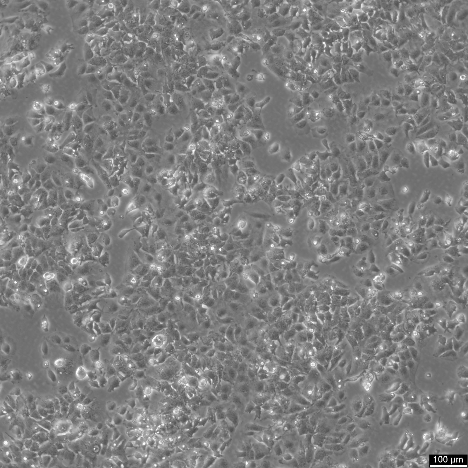 Categories: Liver cancer cell lines Description: HuH-7 cells are a type of epithelial-like, tumorigenic cell line initially taken from a liver tumor in a 57-year-old Japanese male in 1982. The human hepatoma-derived HuH-7 cell line and its derivatives have been widely used in research as a convenient experimental substitute for primary hepatocytes. In particular, they have been instrumental in hepatitis C research and used as host cells for propagating the virus in vitro. HuH-7 cells have played a crucial role in hepatitis C research, especially when it comes to drug development. Prior to 2005, researchers were unable to cultivate the hepatitis C virus in the laboratory, making it difficult to test potential drug candidates against it. The introduction of the HuH-7 cell line changed that. These cells are highly permissive to the replication of the hepatitis C virus, making them ideal for in vitro testing. By using the HuH-7 cells, researchers were able to screen drug candidates against laboratory-grown hepatitis C, which paved the way for the development of new drugs to fight the virus. Unlike other established human hepatoma cell lines, HuH-7 cells can be propagated in a chemically defined medium containing trace amounts of selenium in place of serum. This allows for systematic studies of the in vitro effects of various compounds on their growth and metabolism. Organism: Human Tissue: Liver Disease: Hepatocellular carcinoma Metastatic Site: Hepatoma Synonyms: HuH-7, HUH-7, Huh-7, Huh7, HUH7, HUH7.0, JTC-39, Japanese Tissue Culture-39 Age: 57 years Gender: Male Ethnicity: Japanese Morphology: Epithelial-like Growth Properties: Adherent Citation: HuH7 (Cytion catalog number 300156) Biosafety Level: 1 Ncbi_ Taxid: 9606.0 Cellosaurus Accession: CVCL_0336 Tumorigenic: Yes, in nude mice. Viruses: Negative for HPV, HCV and HIV. Culture Medium: RPMI 1640, w: 2.0 mM stable Glutamine, w: 2.0 g/L NaHCO3 (Cytion article number 820700a) Supplements: Supplement the medium with 10% FBS Dissociation Reagent: Accutase Doubling Time: 48 hours Subculturing: Remove the old medium from the adherent cells and wash them with PBS that lacks calcium and magnesium. For T25 flasks, use 3-5 ml of PBS, and for T75 flasks, use 5-10 ml. Then, cover the cells completely with Accutase, using 1-2 ml for T25 flasks and 2.5 ml for T75 flasks. Let the cells incubate at room temperature for 8-10 minutes to detach them. After incubation, gently mix the cells with 10 ml of medium to resuspend them, then centrifuge at 300xg for 3 minutes. Discard the supernatant, resuspend the cells in fresh medium, and transfer them into new flasks that already contain fresh medium. Seeding Density: 1 to 2 x 104 cells/cm2 during routine cell culture Fluid Renewal: Every 3 days Post Thaw Recovery: Start culture using 2 to 3 x 104 cells/cm2. The cells will recover within 24 to 48 hours. Freeze Medium: As a cryopreservation medium, use complete growth medium (including FBS) + 10% DMSO for adequate post-thaw viability, or CM-1 (Cytion catalog number 800100), which includes optimized osmoprotectants and metabolic stabilizers to enhance recovery and reduce cryo-induced stress. Thawing And Culturing Cells: Confirm that the vial remains deeply frozen upon delivery, as cells are shipped on dry ice to maintain optimal temperatures during transit. Upon receipt, either store the cryovial immediately at temperatures below -150°C to ensure the preservation of cellular integrity, or proceed to step 3 if immediate culturing is required. For immediate culturing, swiftly thaw the vial by immersing it in a 37°C water bath with clean water and an antimicrobial agent, agitating gently for 40-60 seconds until a small ice clump remains. Perform all subsequent steps under sterile conditions in a flow hood, disinfecting the cryovial with 70% ethanol before opening. Carefully open the disinfected vial and transfer the cell suspension into a 15 ml centrifuge tube containing 8 ml of room-temperature culture medium, mixing gently. Centrifuge the mixture at 300 x g for 3 minutes to separate the cells and carefully discard the supernatant containing residual freezing medium. Gently resuspend the cell pellet in 10 ml of fresh culture medium. For adherent cells, divide the suspension between two T25 culture flasks, for suspension cultures, transfer all the medium into one T25 flask to promote effective cell interaction and growth. Adhere to established subculture protocols for continued growth and maintenance of the cell line, ensuring reliable experimental outcomes. Sterility: Mycoplasma contamination is excluded using both PCR-based assays and luminescence-based mycoplasma detection methods. To ensure there is no bacterial, fungal, or yeast contamination, cell cultures are subjected to daily visual inspections. Safety Precautions: When planning to store a cryovial in liquid nitrogen for future thawing, it is mandatory to adhere to stringent safety measures. Appropriate protective gloves and clothing are essential, and the use of a face mask or safety goggles is required during the transfer of frozen samples to or from the liquid nitrogen tank. This is to mitigate the risk of injury from potential cryovial explosions upon removal, which can result in the projection of sharp fragments. Warranty: We stand by the promise of delivering products with high cell viability and robust culture performance. To achieve the best results, please make sure you follow the storage and culture instructions detailed in the product information sheet closely. Your adherence to these guidelines is key to success. Subject To Material Transfer Agreements: If you intend to use Cytion cell lines solely for internal research at a single research site, please complete and sign our Material Transfer Agreement (MTA) and submit it along with your order.For any commercial applications - including but not limited to fee-for-service work, quality control testing, product release, diagnostic use, or regula