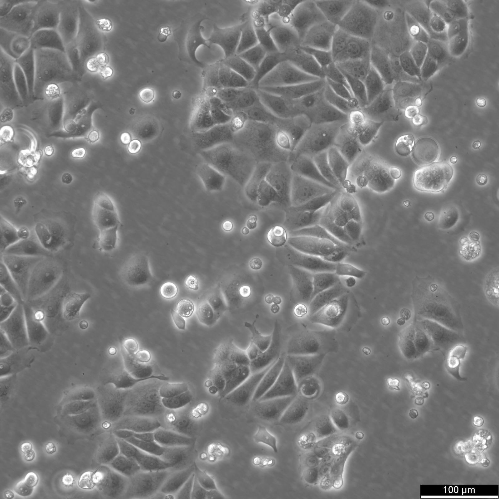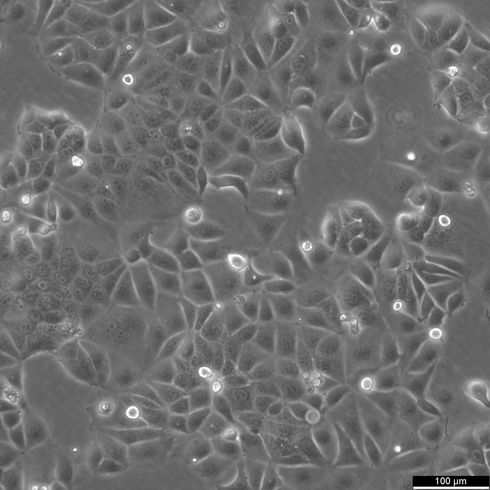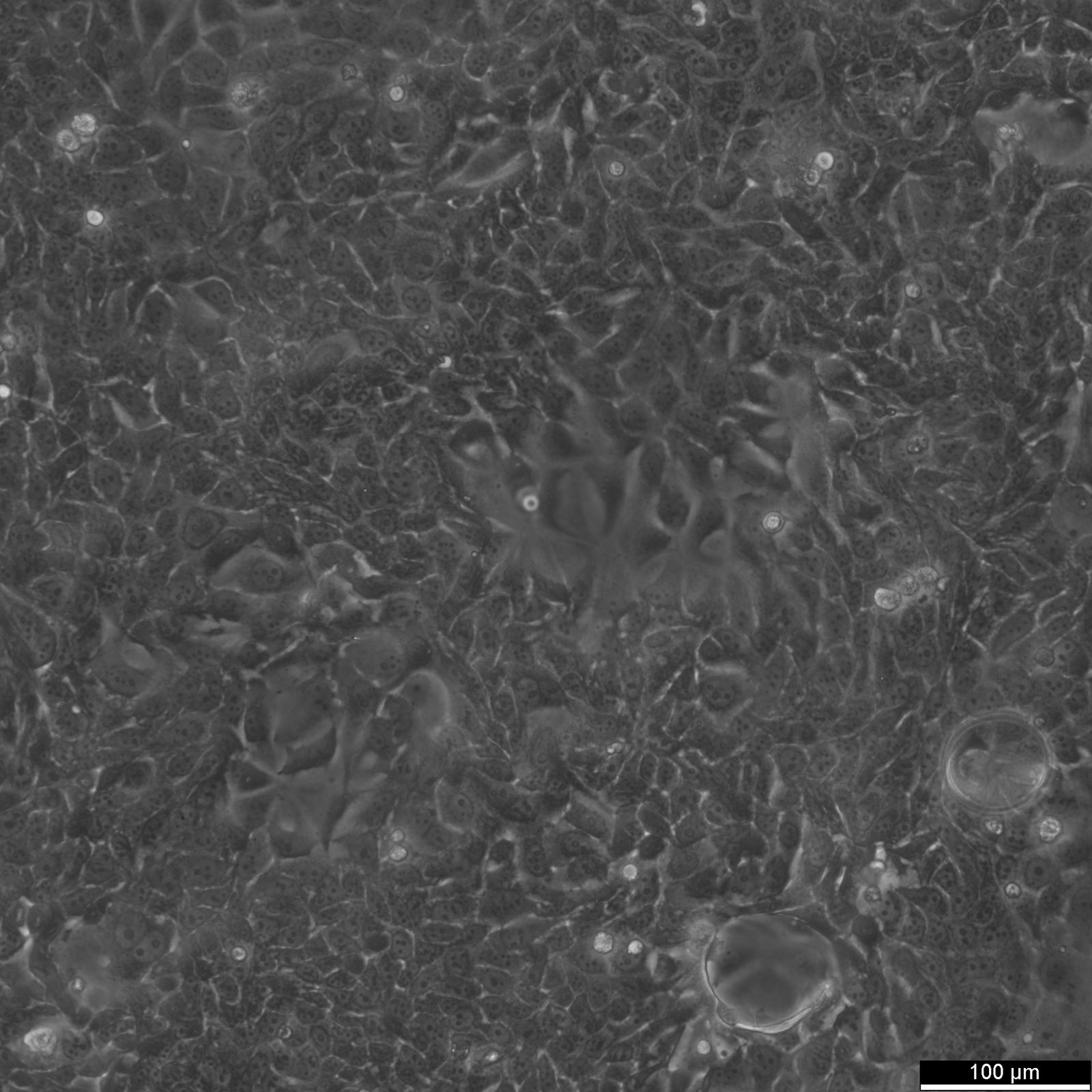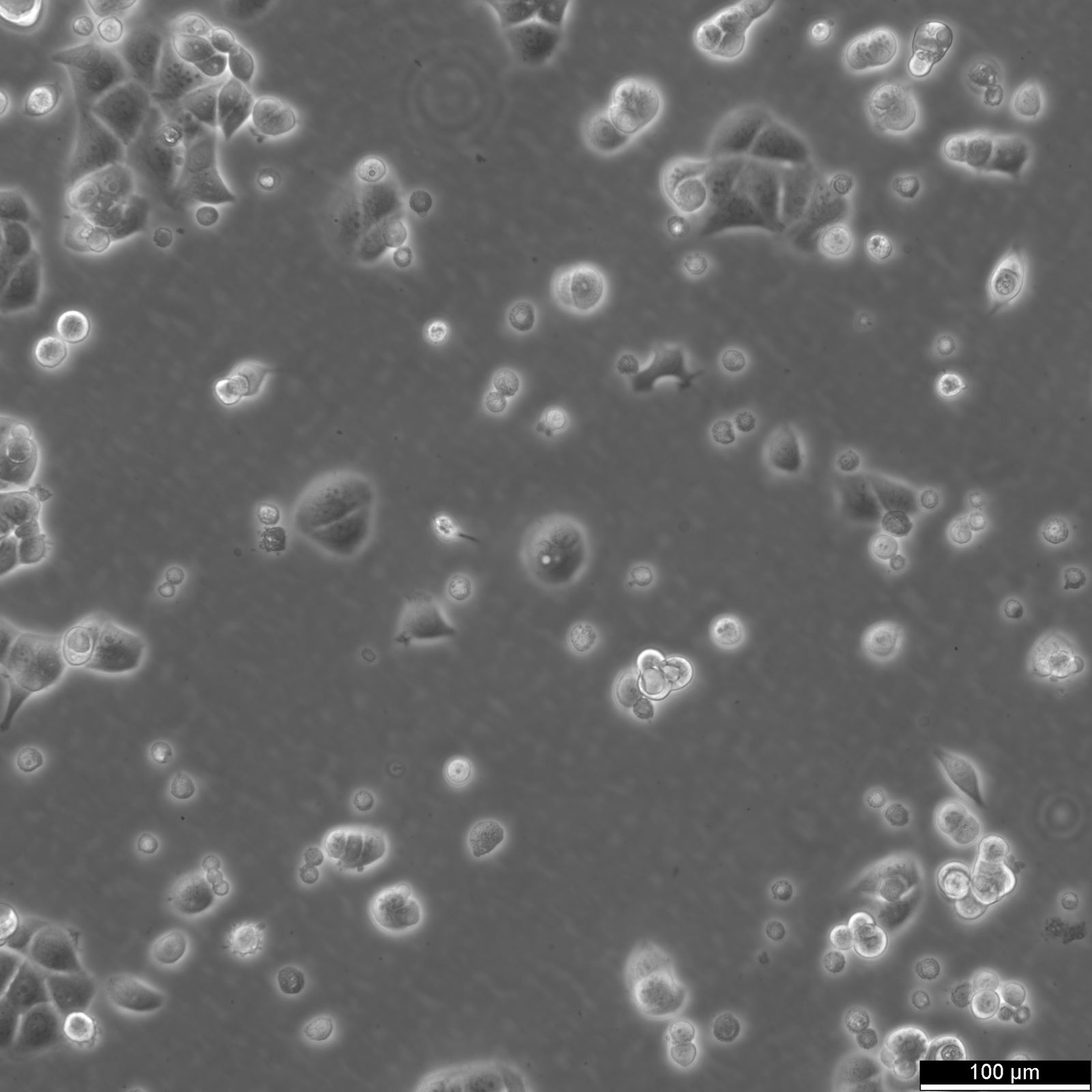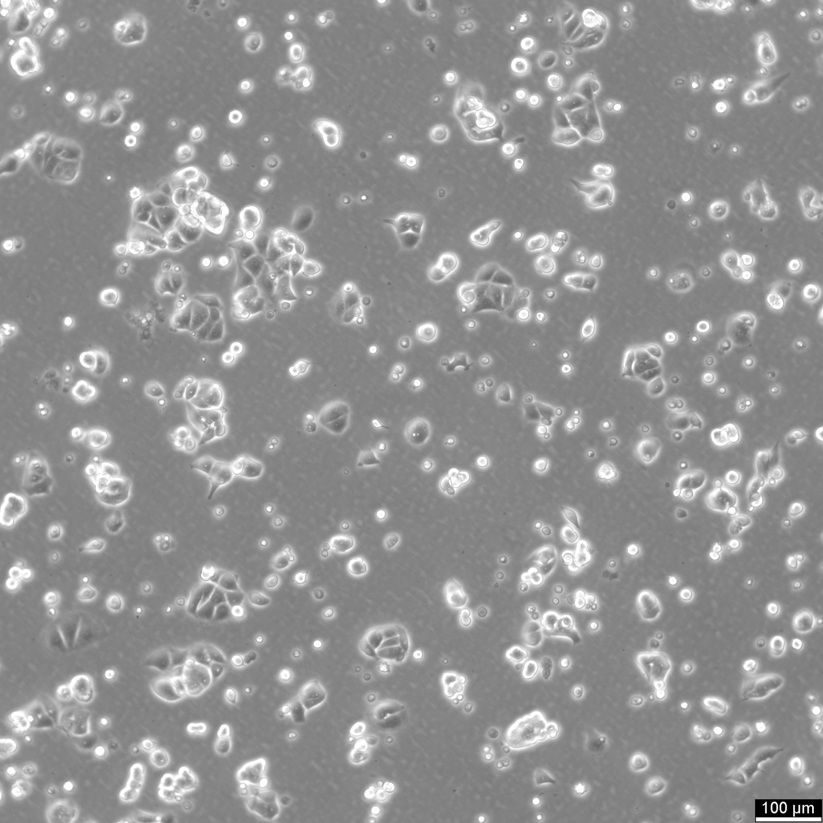 Categories: Breast cancer cell lines Description: MCF7 cells, a widely used research model in human breast cancer research, are utilized extensively as an in vitro model for hormone-dependent breast cancer. Originating from the breast tissue of a 69-year-old white female with metastatic adenocarcinoma, MCF7 cells are a widely used in vitro model for hormone-dependent breast cancer, reflecting the Luminal A subtype. This subtype is characterized by a lower grade and better prognosis compared to more aggressive forms of breast cancer. In the realm of breast cancer research, MCF 7 cells are instrumental in evaluating the efficacy of breast cancer drugs and understanding the dynamics of breast cancer stem cells. They are central to cancer research, serving as a comparative model against more aggressive cell lines like MDA-MB-231. The investigation of therapeutic agents, such as tamoxifen and doxorubicin, is critical in drug discovery efforts targeting hormone-dependent breast cancers and gaining insights into the mechanisms of action and resistance. Similarly, the role of estradiol in modulating the growth and characteristics of these cells is a subject of significant interest, given its relevance to hormone-responsive breast cancers. Research employing the MCF7 breast cancer cell line often delves into the cellular processes of cytotoxicity and apoptosis, especially in response to cancer agents like curcumin, known for its potential in cancer prevention. The study of immune responses, including the action of tumor necrosis factor alpha (TNF alpha) and the impact of bacterial antigens, further enriches our understanding of the tumor microenvironment and potential therapeutic targets. MCF7 cells are meticulously studied in both 2D cell culture and 3D cell culture systems, including spheroid culture, to mimic tumor microenvironments more closely. These methodologies enable a more profound exploration of cell spheroid growth and the behavior of cancer stem cells within microtissues in scaffold-based systems. The MCF7 cell line, with its epithelial cell characteristics and resemblance to human adenocarcinoma cells, is a cornerstone of cancer research. It facilitates not only the exploration of breast cancer drugs and their mechanisms but also the broader implications for cancer treatment, including the potential role of mesenchymal stem cells and the efficacy of targeted therapies in vivo studies. Organism: Human Tissue: Breast Disease: Adenocarcinoma Metastatic Site: Pleural effusion Synonyms: MCF 7, MCF.7, MCF7, Michigan Cancer Foundation-7, ssMCF-7, ssMCF7, MCF7/WT, MCF7-CTRL, IBMF-7 Age: 69 years Gender: Female Ethnicity: Caucasian Morphology: Epithelial-like Growth Properties: Monolayer, adherent Citation: MCF-7 (Cytion catalog number 300273) Biosafety Level: 1 Ncbi_ Taxid: 9606.0 Cellosaurus Accession: CVCL_0031 Receptors Expressed: The cells express the wildtype and variant estrogen receptors as well as progesterone receptor. Protein Expression: p53 negative, pGP9.5 negative, CEA positive Isoenzymes: PGM3, 1, PGM1, 1-2, ES-D, 1-2, AK-1, 1, GLO-1, 1-2, G6PD, B, Oncogenes: wnt7h +, Tx-4 Tumorigenic: Yes, in nude mice Products: Insulin-like growth factor binding proteins (IGFBP) BP-2, BP-4, BP-5 Mutational Profile: TP53 wt Karyotype: The stemline chromosome numbers ranged from hypertriploidy to hypotetraploidy, with the 2S component occurring at 1%. There were 29 to 34 marker chromosomes per S metaphase, 24 to 28 markers occurred in at least 30% of cells, and generally one large submetacentric (M1) and 3 large subtelocentric (M2, M3, and M4) markers were recognizable in over 80% of metaphases. No DM were detected. Chromosome 20 was nullisomic and x was disomic. Phenotype Frequency Product: 0.0154 Culture Medium: EMEM (MEM Eagle), w: 2 mM L-Glutamine, w: 2.2 g/L NaHCO3, w: EBSS (Cytion article number 820100a) Supplements: Supplement the medium with 10% FBS and 1% NEAA Dissociation Reagent: Accutase Doubling Time: 24 hours Subculturing: Remove the old medium from the adherent cells and wash them with PBS that lacks calcium and magnesium. For T25 flasks, use 3-5 ml of PBS, and for T75 flasks, use 5-10 ml. Then, cover the cells completely with Accutase, using 1-2 ml for T25 flasks and 2.5 ml for T75 flasks. Let the cells incubate at room temperature for 8-10 minutes to detach them. After incubation, gently mix the cells with 10 ml of medium to resuspend them, then centrifuge at 300xg for 3 minutes. Discard the supernatant, resuspend the cells in fresh medium, and transfer them into new flasks that already contain fresh medium. Seeding Density: 3 x 104 cells/cm2 Fluid Renewal: 2 to 3 times per week Post Thaw Recovery: Allow the cells to rest for 48 hours past thawing Freeze Medium: As a cryopreservation medium, use complete growth medium (including FBS) + 10% DMSO for adequate post-thaw viability, or CM-1 (Cytion catalog number 800100), which includes optimized osmoprotectants and metabolic stabilizers to enhance recovery and reduce cryo-induced stress. Thawing And Culturing Cells: Confirm that the vial remains deeply frozen upon delivery, as cells are shipped on dry ice to maintain optimal temperatures during transit. Upon receipt, either store the cryovial immediately at temperatures below -150°C to ensure the preservation of cellular integrity, or proceed to step 3 if immediate culturing is required. For immediate culturing, swiftly thaw the vial by immersing it in a 37°C water bath with clean water and an antimicrobial agent, agitating gently for 40-60 seconds until a small ice clump remains. Perform all subsequent steps under sterile conditions in a flow hood, disinfecting the cryovial with 70% ethanol before opening. Carefully open the disinfected vial and transfer the cell suspension into a 15 ml centrifuge tube containing 8 ml of room-temperature culture medium, mixing gently. Centrifuge the mixture at 300 x g for 3 minutes to separate the cells and carefully discard the supernatant con