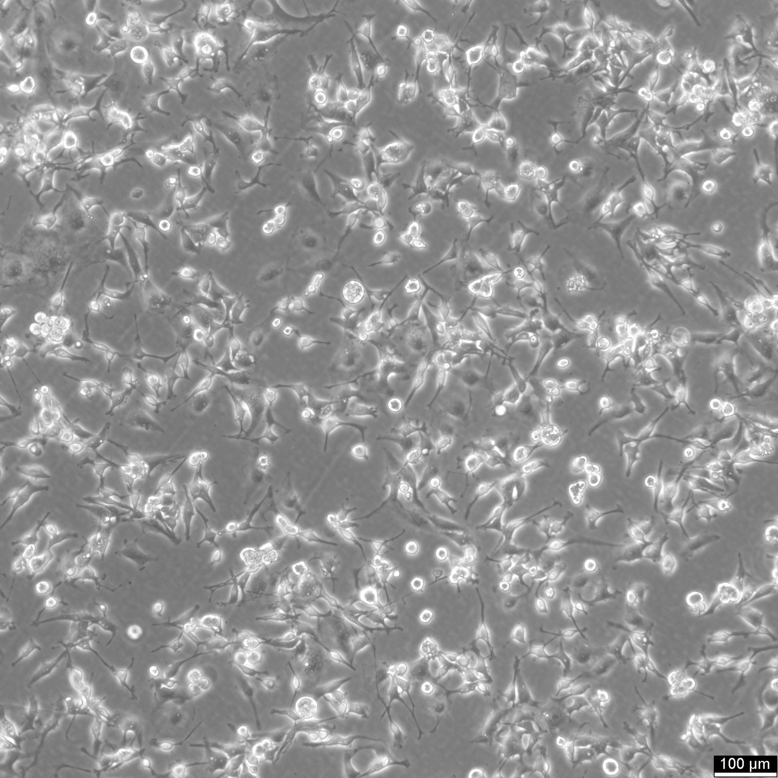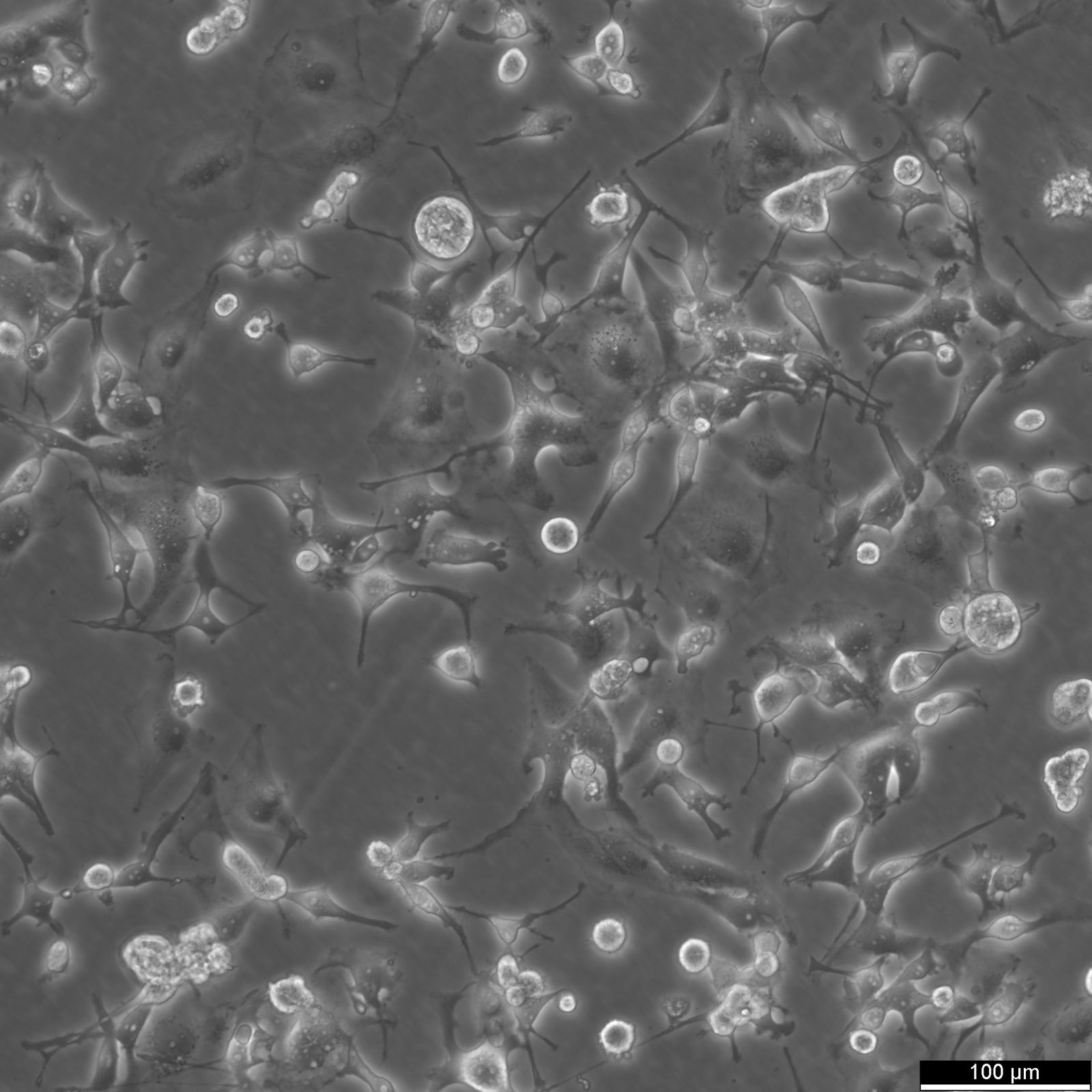 Categories: Breast cancer cell lines Description: The MDA-MB-436 cell line is derived from a human breast adenocarcinoma. This cell line is characterized by its triple-negative breast cancer (TNBC) phenotype, lacking estrogen receptor (ER), progesterone receptor (PR), and human epidermal growth factor receptor 2 (HER2) expression. Such characteristics make it an invaluable model for studying TNBC, a particularly aggressive and difficult-to-treat subtype of breast cancer. The cells exhibit an epithelial morphology and are known for their robust proliferative capacity in vitro. Genetically, MDA-MB-436 cells harbor mutations in key cancer-related genes, including BRCA1 and TP53. The BRCA1 mutation is of particular interest, as it mirrors the genetic alterations found in a subset of hereditary breast cancers. This makes MDA-MB-436 a crucial tool for investigating the mechanisms underlying BRCA1-associated tumorigenesis and for testing potential therapeutic strategies targeting these pathways. Additionally, the cell line has been employed in research focused on chemotherapy resistance, metastasis, and the tumor microenvironment. Researchers working with MDA-MB-436 cells benefit from its well-documented characteristics, allowing for reproducible and reliable experimental outcomes. Studies utilizing this cell line contribute significantly to the understanding of TNBC biology and the development of novel treatments for this challenging cancer subtype. However, care must be taken in experimental design, as the absence of hormone receptors and HER2 expression necessitates alternative approaches compared to other breast cancer models. Organism: Human Tissue: Breast Disease: Carcinoma Metastatic Site: Pleural effusion Synonyms: MDA_MB_436, MDA MB 436, MDA-Mb-436, MDA-MB436, MDAMB436, MDA-436, MDA436, MB436, MD Anderson-Metastatic Breast-436 Age: 43 years Gender: Female Ethnicity: European Morphology: Pleomorphic and multinucleated cells Growth Properties: Adherent Citation: MDA-MB-436 (Cytion catalog number 300278) Biosafety Level: 1 Ncbi_ Taxid: 9606.0 Cellosaurus Accession: CVCL_0623 Culture Medium: DMEM:Ham's F12 (1:1), w: 3.1 g/L Glucose, w: 2.5 mM L-Glutamine, w: 15 mM HEPES, w: 0.5 mM Sodium pyruvate, w: 1.2 g/L NaHCO3 (Cytion article number 820400a) Supplements: Supplement the medium with 5% FBS Dissociation Reagent: Accutase Subculturing: Remove the old medium from the adherent cells and wash them with PBS that lacks calcium and magnesium. For T25 flasks, use 3-5 ml of PBS, and for T75 flasks, use 5-10 ml. Then, cover the cells completely with Accutase, using 1-2 ml for T25 flasks and 2.5 ml for T75 flasks. Let the cells incubate at room temperature for 8-10 minutes to detach them. After incubation, gently mix the cells with 10 ml of medium to resuspend them, then centrifuge at 300xg for 3 minutes. Discard the supernatant, resuspend the cells in fresh medium, and transfer them into new flasks that already contain fresh medium. Fluid Renewal: 2 to 3 times per week Freeze Medium: As a cryopreservation medium, use complete growth medium (including FBS) + 10% DMSO for adequate post-thaw viability, or CM-1 (Cytion catalog number 800100), which includes optimized osmoprotectants and metabolic stabilizers to enhance recovery and reduce cryo-induced stress. Thawing And Culturing Cells: Confirm that the vial remains deeply frozen upon delivery, as cells are shipped on dry ice to maintain optimal temperatures during transit. Upon receipt, either store the cryovial immediately at temperatures below -150°C to ensure the preservation of cellular integrity, or proceed to step 3 if immediate culturing is required. For immediate culturing, swiftly thaw the vial by immersing it in a 37°C water bath with clean water and an antimicrobial agent, agitating gently for 40-60 seconds until a small ice clump remains. Perform all subsequent steps under sterile conditions in a flow hood, disinfecting the cryovial with 70% ethanol before opening. Carefully open the disinfected vial and transfer the cell suspension into a 15 ml centrifuge tube containing 8 ml of room-temperature culture medium, mixing gently. Centrifuge the mixture at 300 x g for 3 minutes to separate the cells and carefully discard the supernatant containing residual freezing medium. Gently resuspend the cell pellet in 10 ml of fresh culture medium. For adherent cells, divide the suspension between two T25 culture flasks, for suspension cultures, transfer all the medium into one T25 flask to promote effective cell interaction and growth. Adhere to established subculture protocols for continued growth and maintenance of the cell line, ensuring reliable experimental outcomes. Sterility: Mycoplasma contamination is excluded using both PCR-based assays and luminescence-based mycoplasma detection methods. To ensure there is no bacterial, fungal, or yeast contamination, cell cultures are subjected to daily visual inspections. Safety Precautions: When planning to store a cryovial in liquid nitrogen for future thawing, it is mandatory to adhere to stringent safety measures. Appropriate protective gloves and clothing are essential, and the use of a face mask or safety goggles is required during the transfer of frozen samples to or from the liquid nitrogen tank. This is to mitigate the risk of injury from potential cryovial explosions upon removal, which can result in the projection of sharp fragments. Warranty: We stand by the promise of delivering products with high cell viability and robust culture performance. To achieve the best results, please make sure you follow the storage and culture instructions detailed in the product information sheet closely. Your adherence to these guidelines is key to success. Subject To Material Transfer Agreements: If you intend to use Cytion cell lines solely for internal research at a single research site, please complete and sign our Material Transfer Agreement (MTA) and submit it along with your order.For any commercial a