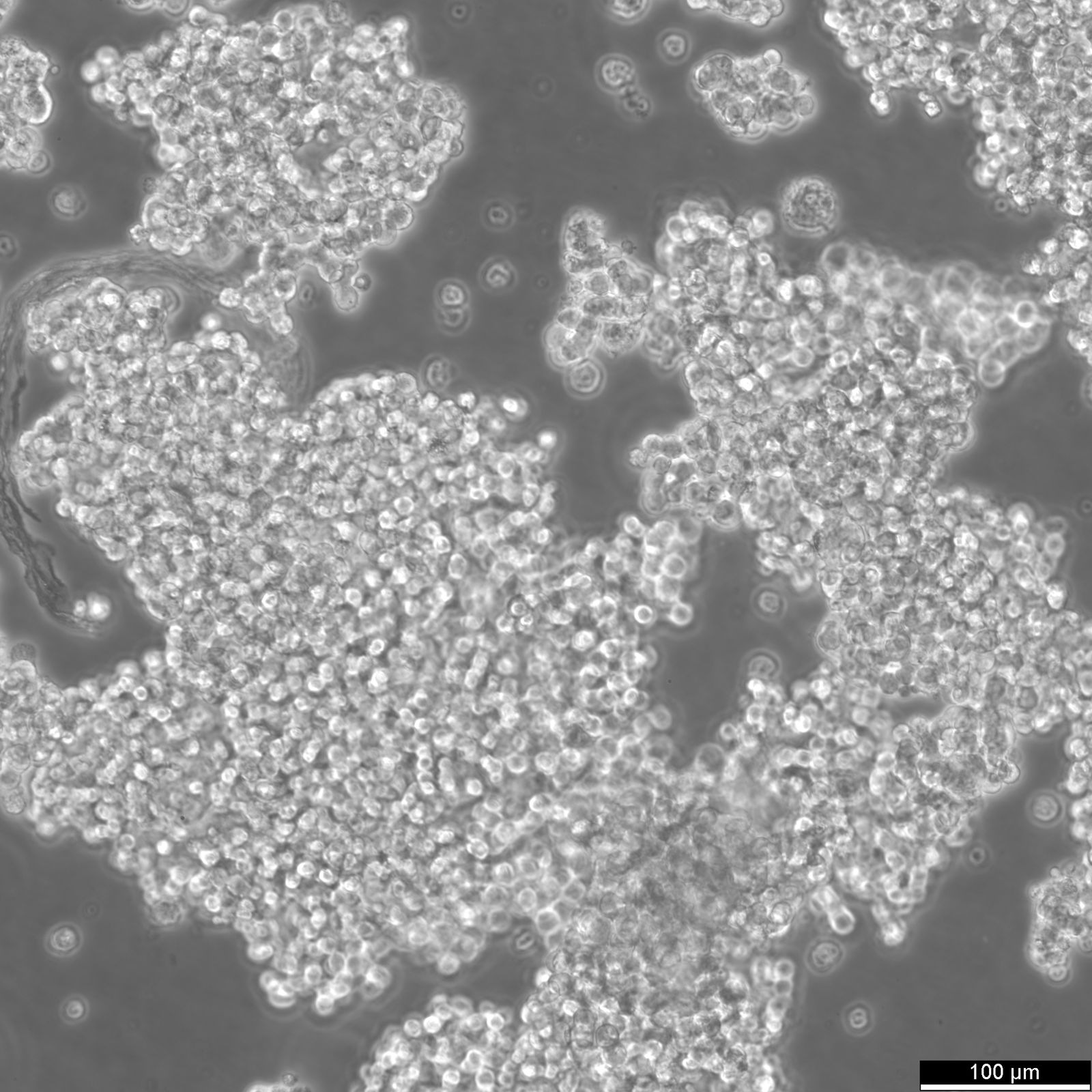 Categories: Lung cancer cell lines Description: The NCI-H82 cell line was derived by A.F. Gazdar and associates in 1978 from the pleural fluid of a patient with small cell cancer of the lung. The morphology of the original tumor was not characteristic of SCLC. The line is a biochemical and morphological variant of SCLC that expresses neuron specific enolase and the brain isoenzyme of creatine kinase. It does not have detectable levels of L-DOPA decarboxylase or bombesin. The cells produce an abnormally sized p53 mRNA (3.7 kb). C-myc DNA sequences are amplified about 25 fold, and there is a 24 fold increase in c-myc RNA relative to normal cells. The cells are reported to express functional ANP receptors, but treatment with ANP does not alter their growth pattern. The cells stain positively for neurofilaments and vimentin. There is expression of v-fes, v-fms, Ha-ras, Ki-ras, N-ras and c-raf 1 mRNAs. Organism: Human Tissue: Lung Disease: Lung small cell carcinoma Metastatic Site: Pleural effusion Synonyms: NCI-H-82, H82, H-82, NCI H82, NCIH82, H82sclc Age: 41 years Gender: Male Ethnicity: Caucasian Morphology: Epithelial-like Growth Properties: Aggregates in suspension. The cells grow in very large aggregates, which are the only viable cell population in the culture. Citation: NCI-H82 (Cytion catalog number 300442) Biosafety Level: 1 Ncbi_ Taxid: 9606.0 Cellosaurus Accession: CVCL_1591 Receptors Expressed: Insulin-like growth factor II receptor (IGF II), atrial natriuretic peptide (ANP) Protein Expression: p53 positive Isoenzymes: G6PD, B, PGM1, 1-2, PGM3, 1-2, ES-D, 1, Me-2, 1, AK-1, 1, GLO-1, 1, Phenotype Frequency Product = 0.0082 Tumorigenic: Yes, forms transplantable tumors with non-typical SCLC histology in nude mice Karyotype: This is a near triploid human cell line. The modal chromosome number is 58, occurring at 44% with polyploidy at 3%. Each cell had two copies of a normal x chromosome. The Y chromosome was not detected in Q banded preparations. Culture Medium: RPMI 1640, w: 2.0 mM stable Glutamine, w: 2.0 g/L NaHCO3 (Cytion article number 820700a) Supplements: Supplement the medium with 10% FBS Subculturing: Maintain cultures by periodically adding or replacing the medium. Initiate cultures with a density of 5 x 105 cells/ml and keep the cell concentration within the range of 3 x 105 to 1 x 106 cells/ml for optimal growth. Fluid Renewal: 2 to 3 times per week Freeze Medium: As a cryopreservation medium, use complete growth medium (including FBS) + 10% DMSO for adequate post-thaw viability, or CM-1 (Cytion catalog number 800100), which includes optimized osmoprotectants and metabolic stabilizers to enhance recovery and reduce cryo-induced stress. Thawing And Culturing Cells: Confirm that the vial remains deeply frozen upon delivery, as cells are shipped on dry ice to maintain optimal temperatures during transit. Upon receipt, either store the cryovial immediately at temperatures below -150°C to ensure the preservation of cellular integrity, or proceed to step 3 if immediate culturing is required. For immediate culturing, swiftly thaw the vial by immersing it in a 37°C water bath with clean water and an antimicrobial agent, agitating gently for 40-60 seconds until a small ice clump remains. Perform all subsequent steps under sterile conditions in a flow hood, disinfecting the cryovial with 70% ethanol before opening. Carefully open the disinfected vial and transfer the cell suspension into a 15 ml centrifuge tube containing 8 ml of room-temperature culture medium, mixing gently. Centrifuge the mixture at 300 x g for 3 minutes to separate the cells and carefully discard the supernatant containing residual freezing medium. Gently resuspend the cell pellet in 10 ml of fresh culture medium. For adherent cells, divide the suspension between two T25 culture flasks, for suspension cultures, transfer all the medium into one T25 flask to promote effective cell interaction and growth. Adhere to established subculture protocols for continued growth and maintenance of the cell line, ensuring reliable experimental outcomes. Sterility: Mycoplasma contamination is excluded using both PCR-based assays and luminescence-based mycoplasma detection methods. To ensure there is no bacterial, fungal, or yeast contamination, cell cultures are subjected to daily visual inspections. Safety Precautions: When planning to store a cryovial in liquid nitrogen for future thawing, it is mandatory to adhere to stringent safety measures. Appropriate protective gloves and clothing are essential, and the use of a face mask or safety goggles is required during the transfer of frozen samples to or from the liquid nitrogen tank. This is to mitigate the risk of injury from potential cryovial explosions upon removal, which can result in the projection of sharp fragments. Warranty: We stand by the promise of delivering products with high cell viability and robust culture performance. To achieve the best results, please make sure you follow the storage and culture instructions detailed in the product information sheet closely. Your adherence to these guidelines is key to success. Subject To Material Transfer Agreements: If you intend to use Cytion cell lines solely for internal research at a single research site, please complete and sign our Material Transfer Agreement (MTA) and submit it along with your order.For any commercial applications - including but not limited to fee-for-service work, quality control testing, product release, diagnostic use, or regulatory studies - please complete the Intended Use Form so we can prepare a suitable agreement tailored to your project.Please note: The MTA applies only to certain cell lines. If this notice and the MTA document appear on a product page, the agreement is applicable. For cell lines not covered by the MTA, no reference to the agreement will be shown. The MTA is not valid for customers in the Americas, China, or Taiwan. Please contact our U.S. entity to receive the approp