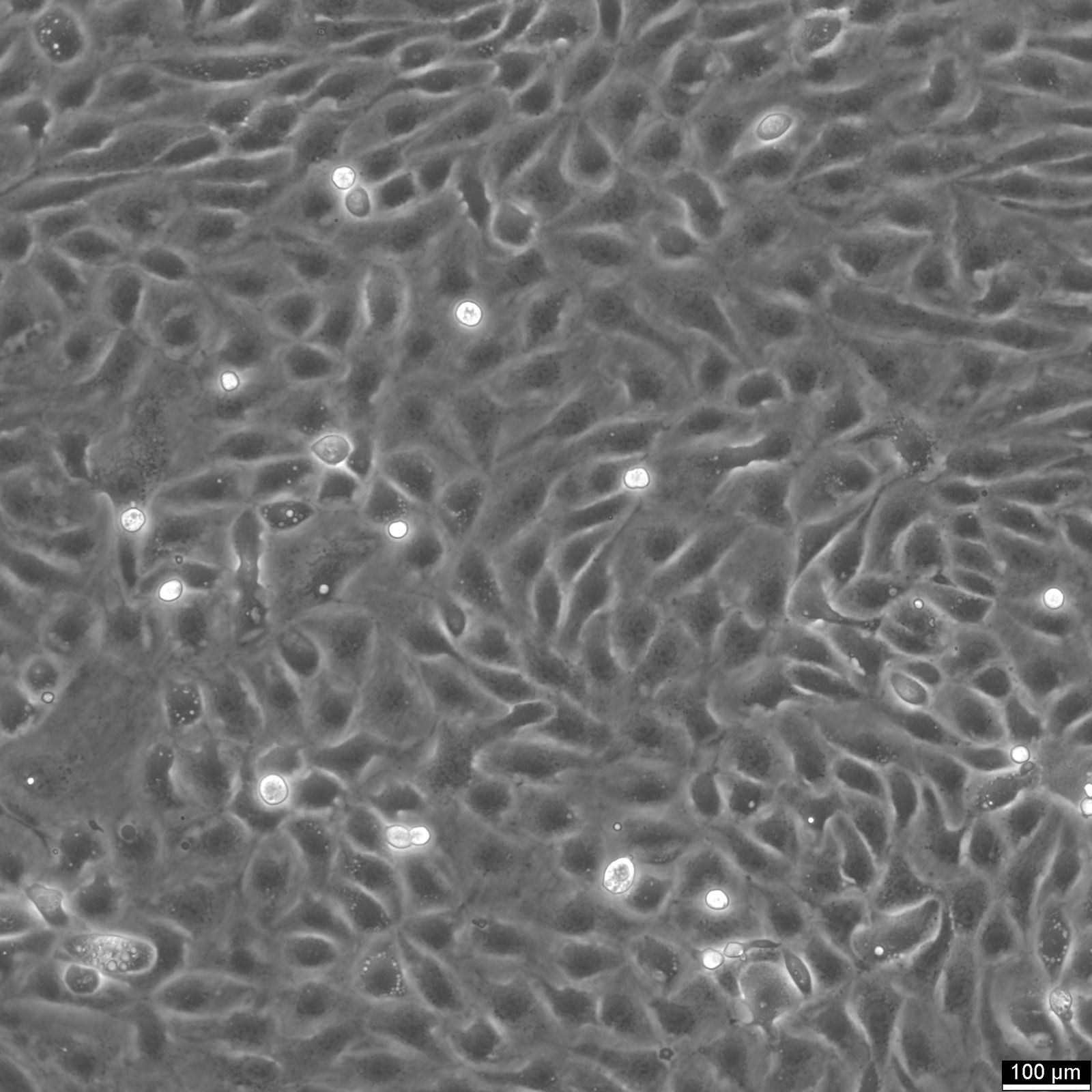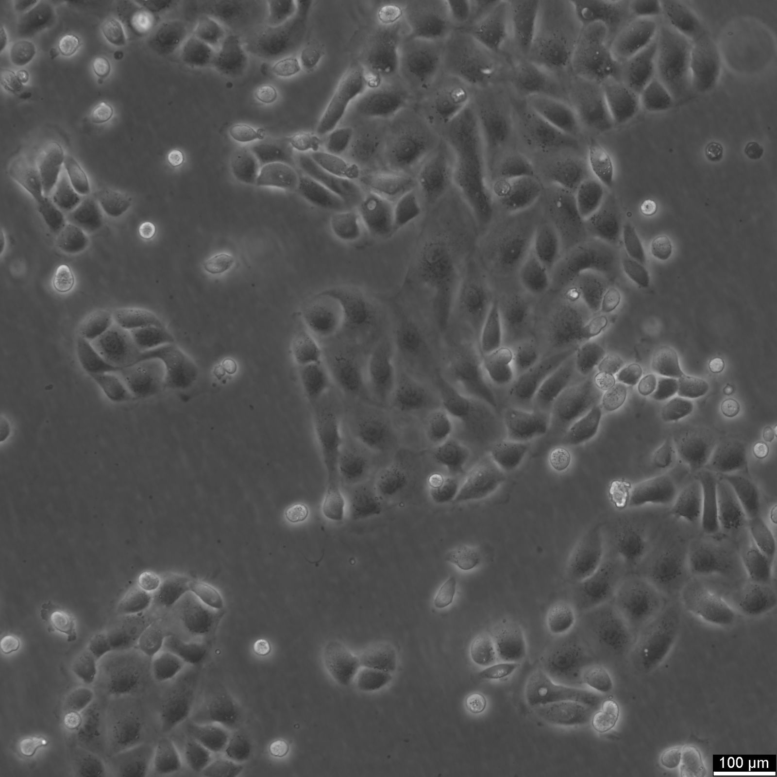 Categories: Reproductive system cancer cell lines Description: PM-LGSOC-01 is a cell line derived from peritoneal metastasis of a low-grade serous ovarian carcinoma (LGSOC). This cell line was established as part of a comprehensive research model that also included a patient-derived xenograft (PDX). The creation of PM-LGSOC-01 involved orthotopic engraftment via subperitoneal tumor slurry injection in SCID/Beige mice, leading to an early-stage transplantable peritoneal metastasis (PM)-PDX model. Histological analysis confirmed that both the PM-PDX and PM-LGSOC-01 cells retained the micropapillary and cribriform growth patterns typical of LGSOC, with tumor budding, and expression of markers such as PAX8 and WT1. Genetic analysis showed that the primary tumor, the PM, and the cell line share a KRAS c.35 G > T (p.Gly12Val) mutation, making this model relevant for studying LGSOC progression and treatment response, particularly in relation to the MAPK pathway. PM-LGSOC-01 exhibits key characteristics relevant for preclinical research. It has a doubling time of approximately 42 hours in early passages, which decreased to 23 hours in later stages of cell culture, and has been maintained for over 100 in vitro passages. The cell line demonstrates epithelial morphology with Epithelial-like organization and high cell-cell adhesion. However, it shows limited response to platinum-based chemotherapy but is highly sensitive to paclitaxel (IC50: 6.3 ± 2.2 nM). Additionally, PM-LGSOC-01 is particularly sensitive to the MEK inhibitor trametinib (IC50: 7.2 ± 0.5 nM), both in vitro and in vivo, reflecting the impact of the KRAS mutation on therapeutic responses. PM-LGSOC-01 serves as a valuable tool for investigating LGSOC, particularly in the context of drug resistance, tumorigenicity, and sensitivity to targeted therapies like MEK inhibitors. Its use in developing personalized treatment approaches for low-grade serous ovarian carcinoma is critical, given the poor responsiveness of LGSOC to conventional chemotherapy compared to high-grade serous ovarian carcinoma (HGSOC). Organism: Human Tissue: Ovary Disease: Low grade-serous ovarian carcinoma Metastatic Site: Peritoneum Synonyms: M28/2 Age: 60 years Gender: Female Morphology: Epithelial-like Growth Properties: Adherent Citation: PM-LGSOC-01 (Cytion catalog number 300305) Biosafety Level: 1 Ncbi_ Taxid: 9606.0 Cellosaurus Accession: CVCL_xx32 Mutational Profile: KRAS c.35 G > T (p.(Gly12Val)) mutation Culture Medium: EMEM (MEM Eagle), w: 2 mM L-Glutamine, w: 2.2 g/L NaHCO3, w: EBSS (Cytion article number 820100a) Supplements: Supplement the medium with 10% FBS and 1% NEAA Dissociation Reagent: Trypsin/EDTA and Ca2+/Mg2+ free phosphate buffer Doubling Time: 42 hours Subculturing: Remove the old medium from the adherent cells and wash them with PBS that lacks calcium and magnesium. For T25 flasks, use 3-5 ml of PBS, and for T75 flasks, use 5-10 ml. Then, cover the cells completely with Accutase, using 1-2 ml for T25 flasks and 2.5 ml for T75 flasks. Let the cells incubate at room temperature for 8-10 minutes to detach them. After incubation, gently mix the cells with 10 ml of medium to resuspend them, then centrifuge at 300xg for 3 minutes. Discard the supernatant, resuspend the cells in fresh medium, and transfer them into new flasks that already contain fresh medium. Seeding Density: 1 x 104 cells/cm2 Freeze Medium: As a cryopreservation medium, use complete growth medium (including FBS) + 10% DMSO for adequate post-thaw viability, or CM-1 (Cytion catalog number 800100), which includes optimized osmoprotectants and metabolic stabilizers to enhance recovery and reduce cryo-induced stress. Thawing And Culturing Cells: Confirm that the vial remains deeply frozen upon delivery, as cells are shipped on dry ice to maintain optimal temperatures during transit. Upon receipt, either store the cryovial immediately at temperatures below -150°C to ensure the preservation of cellular integrity, or proceed to step 3 if immediate culturing is required. For immediate culturing, swiftly thaw the vial by immersing it in a 37°C water bath with clean water and an antimicrobial agent, agitating gently for 40-60 seconds until a small ice clump remains. Perform all subsequent steps under sterile conditions in a flow hood, disinfecting the cryovial with 70% ethanol before opening. Carefully open the disinfected vial and transfer the cell suspension into a 15 ml centrifuge tube containing 8 ml of room-temperature culture medium, mixing gently. Centrifuge the mixture at 300 x g for 3 minutes to separate the cells and carefully discard the supernatant containing residual freezing medium. Gently resuspend the cell pellet in 10 ml of fresh culture medium. For adherent cells, divide the suspension between two T25 culture flasks, for suspension cultures, transfer all the medium into one T25 flask to promote effective cell interaction and growth. Adhere to established subculture protocols for continued growth and maintenance of the cell line, ensuring reliable experimental outcomes. Sterility: Mycoplasma contamination is excluded using both PCR-based assays and luminescence-based mycoplasma detection methods. To ensure there is no bacterial, fungal, or yeast contamination, cell cultures are subjected to daily visual inspections. Safety Precautions: When planning to store a cryovial in liquid nitrogen for future thawing, it is mandatory to adhere to stringent safety measures. Appropriate protective gloves and clothing are essential, and the use of a face mask or safety goggles is required during the transfer of frozen samples to or from the liquid nitrogen tank. This is to mitigate the risk of injury from potential cryovial explosions upon removal, which can result in the projection of sharp fragments. Warranty: We stand by the promise of delivering products with high cell viability and robust culture performance. To achieve the best results, please make sure you follow the storage a