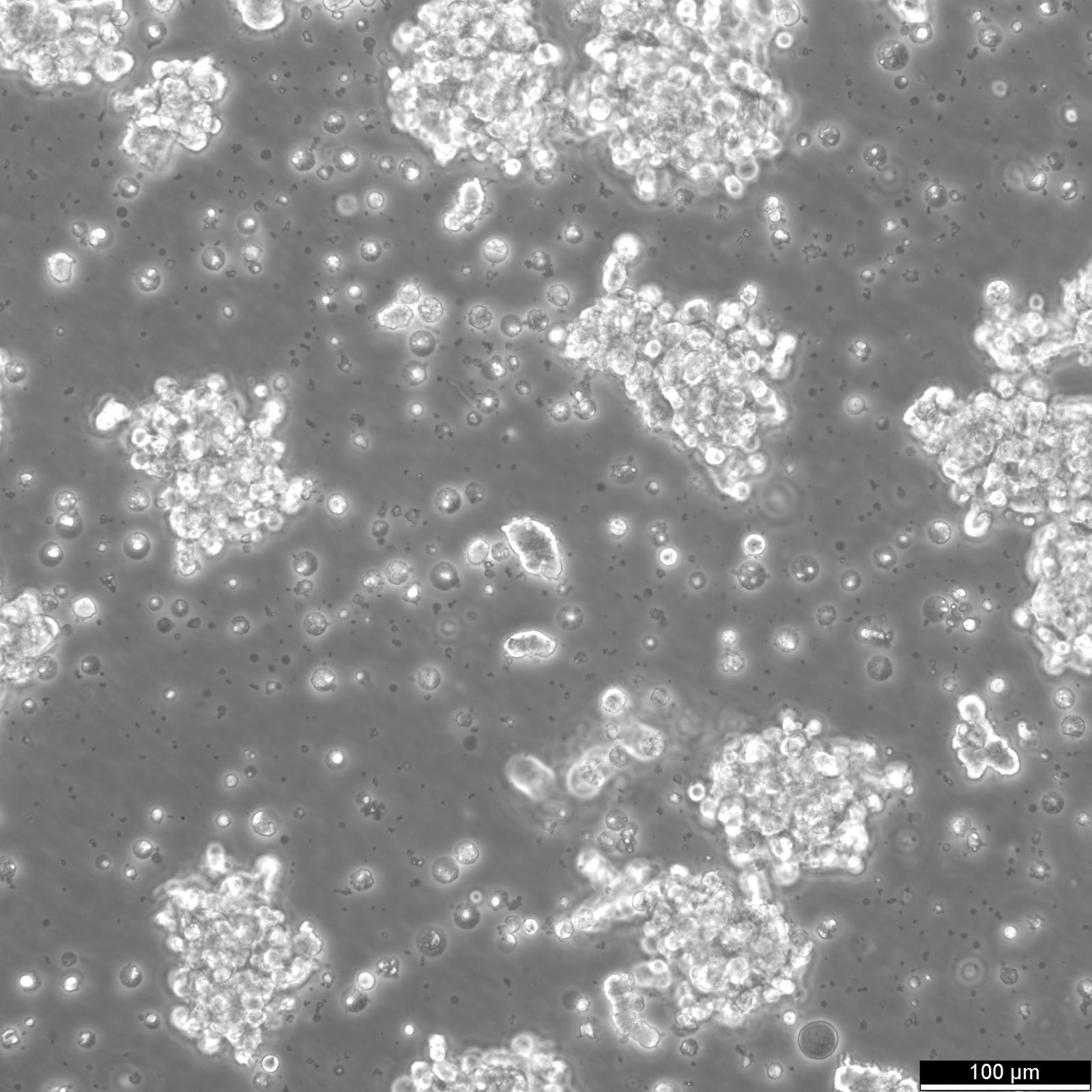 Categories: Kidney cancer cell lines Description: SK-NEP-1 is a human cell line originally derived from a nephroblastoma, also known as Wilms' tumor, a common pediatric renal malignancy. This cell line has been used extensively in preclinical research to study nephroblastoma biology and to evaluate novel therapeutic approaches for treating Wilms' tumor. However, later molecular characterizations revealed that SK-NEP-1 expresses the EWS-FLI1 fusion gene, which is characteristic of Ewing sarcoma, indicating that this cell line is more representative of the Ewing family of tumors rather than Wilms' tumor. This discovery has important implications for interpreting past research that utilized SK-NEP-1, as its biological characteristics align more closely with Ewing sarcoma rather than anaplastic Wilms' tumor. Research involving SK-NEP-1 has shown that it is responsive to chemotherapy agents such as vincristine, which inhibits microtubule polymerization, leading to G2/M phase arrest and apoptosis. Additionally, combination therapies using natural compounds like andrographolide have demonstrated synergistic effects in increasing the cytotoxicity of vincristine on SK-NEP-1 cells, primarily through the PI3K-AKT-p53 signaling pathway. This combination was shown to induce apoptosis in SK-NEP-1 cells, both in vitro and in vivo, making it a promising approach for treating tumors that share the molecular characteristics of SK-NEP-1. SK-NEP-1 is thus a critical model for studying the molecular underpinnings of pediatric renal and Ewing sarcoma tumors and for evaluating the effectiveness of drug combinations aimed at improving therapeutic outcomes in these cancer types. Its use in research has contributed to understanding drug-induced apoptosis and the potential of targeting specific signaling pathways like PI3K-AKT-p53 in cancer therapy. Organism: Human Tissue: Kidney Disease: Wilms tumor Metastatic Site: Pleural effusion Synonyms: SKNEP-1, SKNEP1, SKNEP Age: 25 years Gender: Female Ethnicity: Caucasian Morphology: Epithelial-like Growth Properties: Suspension Citation: SK-NEP-1 (Cytion catalog number 300341) Biosafety Level: 1 Ncbi_ Taxid: 9606.0 Cellosaurus Accession: CVCL_0631 Isoenzymes: PGM3, 1, PGM1, 1-2, ES-D, 1, Me-2, 2, AK-1, 1, GLO-1, 2, G6PD, B, Phenotype Frequency Product: 0.0029 Tumorigenic: Yes, in nude mice. Mutational Profile: p53 mut Karyotype: (P12) hypotriploid to hypertriploid (+A1, +A2, +C, +D, +E, +F, +G) with abnormalities including acrocentric fragments, secondary constrictions and large sub telocentric markers Culture Medium: McCoys 5a, w: 3.0 g/L Glucose, w: stable Glutamine, w: 2.0 mM Sodium pyruvate, w: 2.2 g/L NaHCO3 (Cytion article number 820200a) Supplements: Supplement the medium with 10% FBS Subculturing: Maintain cultures by periodically adding or replacing the medium. Initiate cultures with a density of 5 x 105 cells/ml and keep the cell concentration within the range of 3 x 105 to 1 x 106 cells/ml for optimal growth. Fluid Renewal: 2 to 3 times per week Freeze Medium: As a cryopreservation medium, use complete growth medium (including FBS) + 10% DMSO for adequate post-thaw viability, or CM-1 (Cytion catalog number 800100), which includes optimized osmoprotectants and metabolic stabilizers to enhance recovery and reduce cryo-induced stress. Thawing And Culturing Cells: Confirm that the vial remains deeply frozen upon delivery, as cells are shipped on dry ice to maintain optimal temperatures during transit. Upon receipt, either store the cryovial immediately at temperatures below -150°C to ensure the preservation of cellular integrity, or proceed to step 3 if immediate culturing is required. For immediate culturing, swiftly thaw the vial by immersing it in a 37°C water bath with clean water and an antimicrobial agent, agitating gently for 40-60 seconds until a small ice clump remains. Perform all subsequent steps under sterile conditions in a flow hood, disinfecting the cryovial with 70% ethanol before opening. Carefully open the disinfected vial and transfer the cell suspension into a 15 ml centrifuge tube containing 8 ml of room-temperature culture medium, mixing gently. Centrifuge the mixture at 300 x g for 3 minutes to separate the cells and carefully discard the supernatant containing residual freezing medium. Gently resuspend the cell pellet in 10 ml of fresh culture medium. For adherent cells, divide the suspension between two T25 culture flasks, for suspension cultures, transfer all the medium into one T25 flask to promote effective cell interaction and growth. Adhere to established subculture protocols for continued growth and maintenance of the cell line, ensuring reliable experimental outcomes. Sterility: Mycoplasma contamination is excluded using both PCR-based assays and luminescence-based mycoplasma detection methods. To ensure there is no bacterial, fungal, or yeast contamination, cell cultures are subjected to daily visual inspections. Safety Precautions: When planning to store a cryovial in liquid nitrogen for future thawing, it is mandatory to adhere to stringent safety measures. Appropriate protective gloves and clothing are essential, and the use of a face mask or safety goggles is required during the transfer of frozen samples to or from the liquid nitrogen tank. This is to mitigate the risk of injury from potential cryovial explosions upon removal, which can result in the projection of sharp fragments. Warranty: We stand by the promise of delivering products with high cell viability and robust culture performance. To achieve the best results, please make sure you follow the storage and culture instructions detailed in the product information sheet closely. Your adherence to these guidelines is key to success. Subject To Material Transfer Agreements: If you intend to use Cytion cell lines solely for internal research at a single research site, please complete and sign our Material Transfer Agreement (MTA) and submit it along with your order.For a