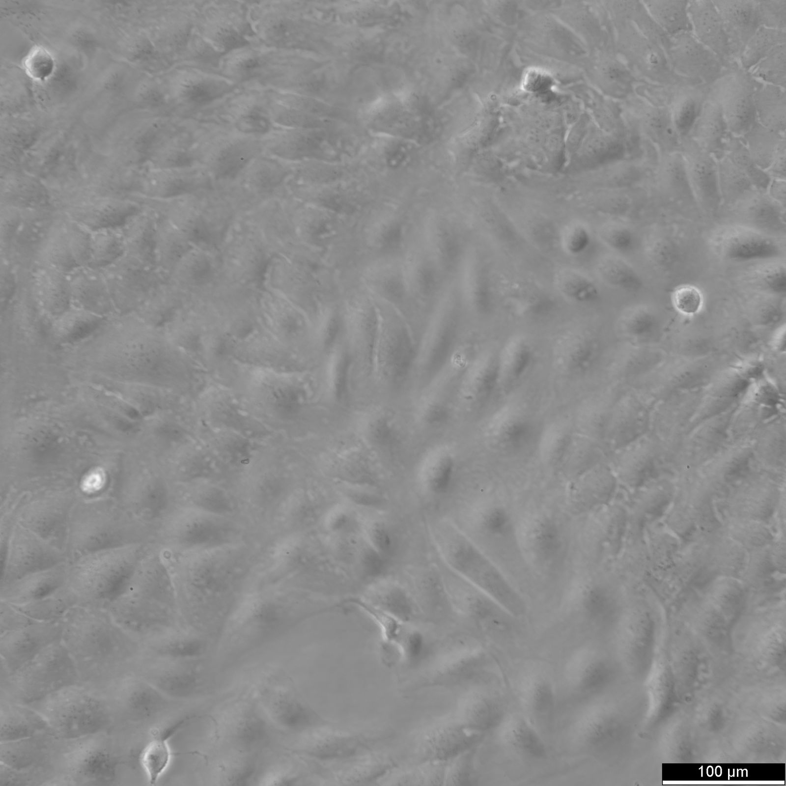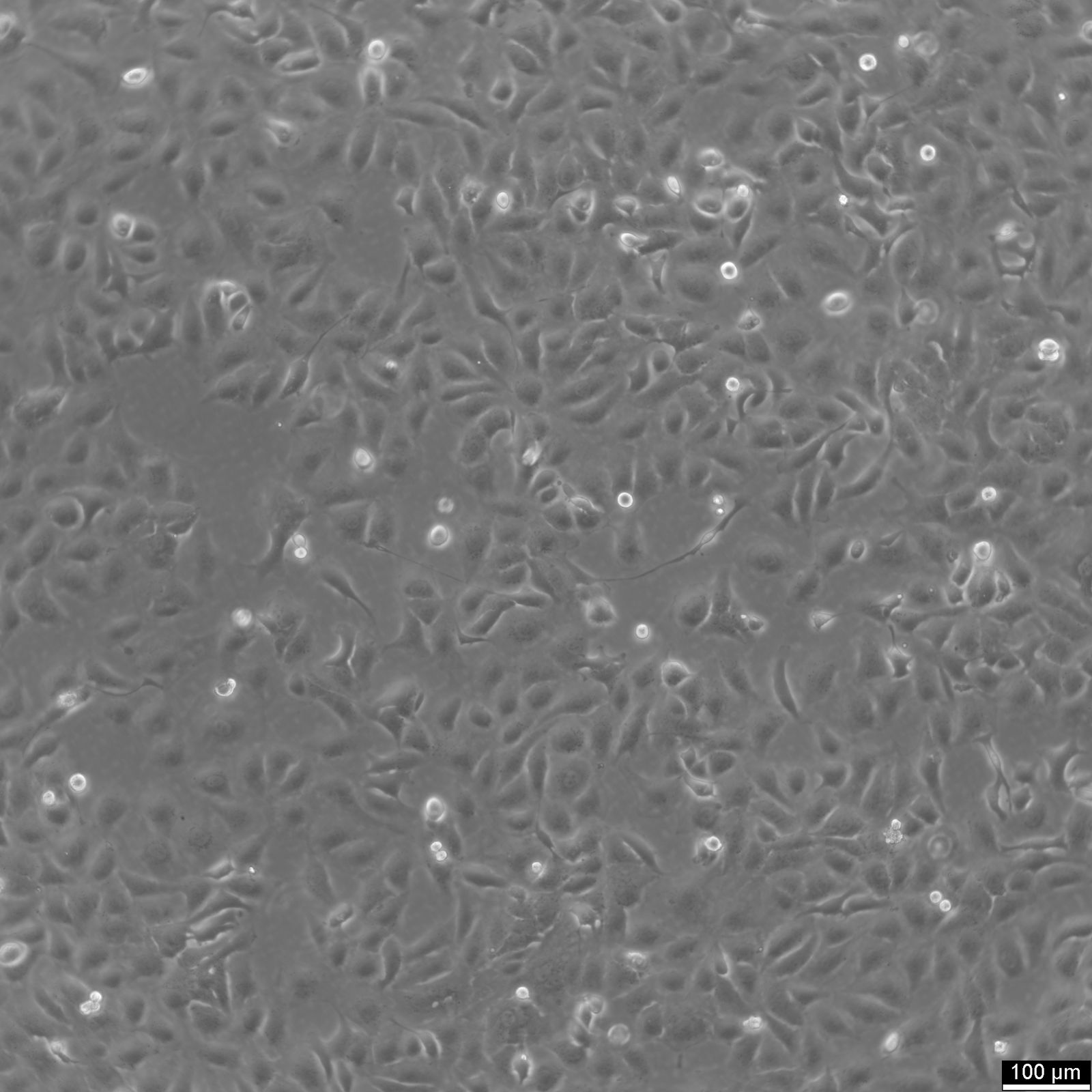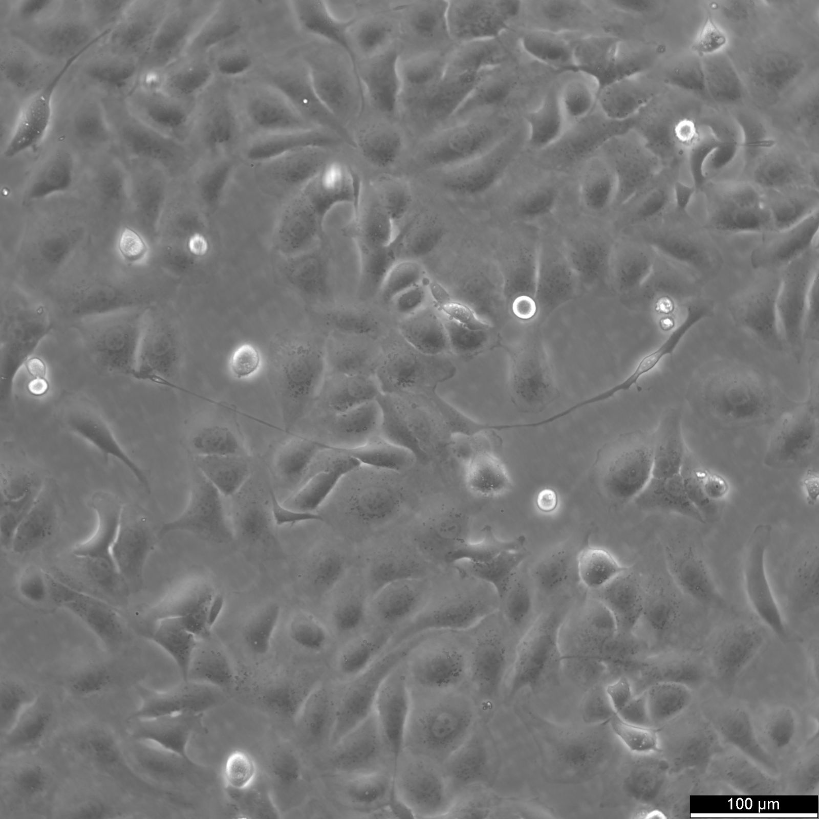 Categories: Reproductive system cancer cell lines Description: SK-OV-3 cells, also known as SKOV3 cells, were derived from the ascitic fluid of a 64-year-old Caucasian female with ovarian cancer, are used in the study of serous cystadenocarcinoma, a subtype of ovarian carcinoma. These cells are known for their resistance to tumor necrosis factor and various cytotoxic drugs, including cisplatin, highlighting the challenges in chemotherapy for ovarian cancer treatment and makes them an excellent model for studying the mechanisms underlying cisplatin resistance and exploring new therapeutic strategies. The antioxidant system, including the thioredoxin antioxidant system (Trx), plays a crucial role in the survival and resistance of SK-OV-3 cells, offering a target for interventions aimed at sensitizing cancer cells to chemotherapy. The use of compounds like quercetin to modulate the antioxidant system and induce apoptosis in SK-OV-3 cells highlights the potential for dietary antioxidants in cancer therapy. In addition to their role in studying drug resistance, SK-OV-3 cells are used to investigate the invasive behavior of ovarian carcinoma cells and the interaction between cancer cells and the tumor microenvironment, including the role of M0 and M2 macrophages in tumor progression. The application of SK-OV-3 cells in cancer research extends to the development of xenograft models and the use of reporter genes, such as firefly luciferase, to monitor tumor growth and metastasis in vivo. Overall, SK-OV-3 cells serve as a critical model for understanding the complexity of ovarian cancer, from the molecular mechanisms driving resistance and estrogen signaling to the interaction between cancer cells and the tumor microenvironment. Organism: Human Tissue: Ovary Disease: Serous cystadenocarcinoma Metastatic Site: Ascites Synonyms: SKOV-3, SK-OV3, SK.OV.3, SKOV3, Skov3, SKO3 Age: 64 years Gender: Female Ethnicity: Caucasian Growth Properties: Adherent Citation: SK-OV-3 (Cytion catalog number 300342) Biosafety Level: 1 Ncbi_ Taxid: 9606.0 Cellosaurus Accession: CVCL_0532 Isoenzymes: PGM3, 1, PGM1, 1-2, ES-D, 1, Me-2, 1, AK-1, 1, GLO-1, 1-2, G6PD, B, Phenotype Frequency Product: 0.0311 Tumorigenic: Forms moderately well differentiated adenocarcinoma consistent with ovarian primary Karyotype: (P16) hypodiploid to hypotetraploid with dicentrics and large telocentric Culture Medium: DMEM:Ham's F12 (1:1), w: 3.1 g/L Glucose, w: 2.5 mM L-Glutamine, w: 15 mM HEPES, w: 0.5 mM Sodium pyruvate, w: 1.2 g/L NaHCO3 (Cytion article number 820400a) Supplements: Supplement the medium with 10% FBS Dissociation Reagent: Accutase Subculturing: Remove the old medium from the adherent cells and wash them with PBS that lacks calcium and magnesium. For T25 flasks, use 3-5 ml of PBS, and for T75 flasks, use 5-10 ml. Then, cover the cells completely with Accutase, using 1-2 ml for T25 flasks and 2.5 ml for T75 flasks. Let the cells incubate at room temperature for 8-10 minutes to detach them. After incubation, gently mix the cells with 10 ml of medium to resuspend them, then centrifuge at 300xg for 3 minutes. Discard the supernatant, resuspend the cells in fresh medium, and transfer them into new flasks that already contain fresh medium. Seeding Density: 1 x 104 cells/cm2 Post Thaw Recovery: After thawing, plate the cells at 5 x 104 cells/cm2 and allow the cells to recover from the freezing process and to adhere for at least 24 hours. Freeze Medium: As a cryopreservation medium, use complete growth medium (including FBS) + 10% DMSO for adequate post-thaw viability, or CM-1 (Cytion catalog number 800100), which includes optimized osmoprotectants and metabolic stabilizers to enhance recovery and reduce cryo-induced stress. Thawing And Culturing Cells: Confirm that the vial remains deeply frozen upon delivery, as cells are shipped on dry ice to maintain optimal temperatures during transit. Upon receipt, either store the cryovial immediately at temperatures below -150°C to ensure the preservation of cellular integrity, or proceed to step 3 if immediate culturing is required. For immediate culturing, swiftly thaw the vial by immersing it in a 37°C water bath with clean water and an antimicrobial agent, agitating gently for 40-60 seconds until a small ice clump remains. Perform all subsequent steps under sterile conditions in a flow hood, disinfecting the cryovial with 70% ethanol before opening. Carefully open the disinfected vial and transfer the cell suspension into a 15 ml centrifuge tube containing 8 ml of room-temperature culture medium, mixing gently. Centrifuge the mixture at 300 x g for 3 minutes to separate the cells and carefully discard the supernatant containing residual freezing medium. Gently resuspend the cell pellet in 10 ml of fresh culture medium. For adherent cells, divide the suspension between two T25 culture flasks, for suspension cultures, transfer all the medium into one T25 flask to promote effective cell interaction and growth. Adhere to established subculture protocols for continued growth and maintenance of the cell line, ensuring reliable experimental outcomes. Sterility: Mycoplasma contamination is excluded using both PCR-based assays and luminescence-based mycoplasma detection methods. To ensure there is no bacterial, fungal, or yeast contamination, cell cultures are subjected to daily visual inspections. Safety Precautions: When planning to store a cryovial in liquid nitrogen for future thawing, it is mandatory to adhere to stringent safety measures. Appropriate protective gloves and clothing are essential, and the use of a face mask or safety goggles is required during the transfer of frozen samples to or from the liquid nitrogen tank. This is to mitigate the risk of injury from potential cryovial explosions upon removal, which can result in the projection of sharp fragments. Warranty: We stand by the promise of delivering products with high cell viability and robust culture performance. To achiev