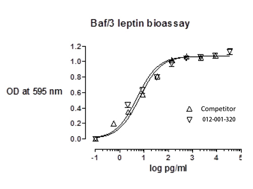 Leptin purity was determined to be greater than 95% as determined by analysis by UV-Spectroscopy at 280nm and by reducing and non-reducing SDS-pAGE. Protein function: May function as part of a signaling pathway that acts to regulate the size of the body fat depot. An increase in the level of Lep may act directly or indirectly on the CNS to inhibit food intake and/or regulate energy expenditure as part of a homeostatic mechanism to maintain constancy of the adipose mass. [The UniProt Consortium]