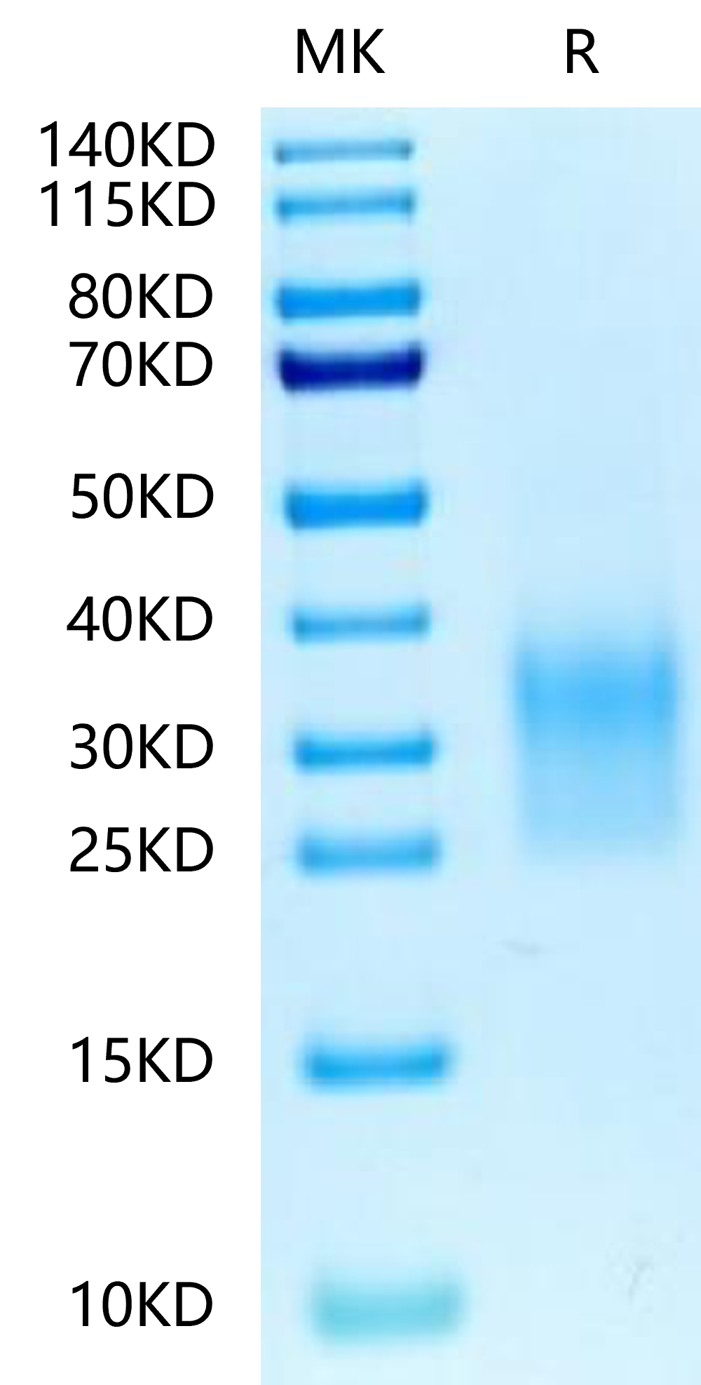 Recombinant Biotinylated Human CD24 Protein is expressed from HEK293 with His tag and Avi tag at the C-Terminus.It contains Ser27-Gly59. CD24 is a sialoglycoprotein expressed at the surface of most B lymphocytes and differentiating neuroblasts. It is also expressed on neutrophils and neutrophil precursors from the myelocyte stage onwards. The potential for targeting CD24 in cancer therapy seems promising, as CD24 is overexpressed in many human cancers.