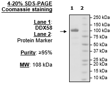 Human DDX58 protein, also known as DEAD box protein 58, retinoic acid inducible gene I, and RIG-1, GenBank Accession No. NM_014314, a.a. 2-925 (end), with N-terminal FLAG-tag, MW=108 kDa, expressed in a HEK293 expression system.
