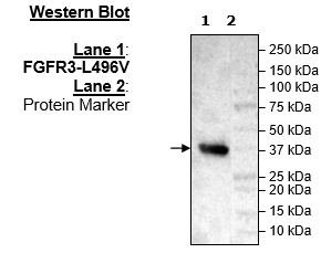 Human FGFR3, GenBank Accession # NM_000142, with L496V mutation, with N-terminal His-tag, a.a 447-761, MW= 37 kDa, expressed in Sf9 cells via a baculovirus expression system. Phosphorylation is <10%.